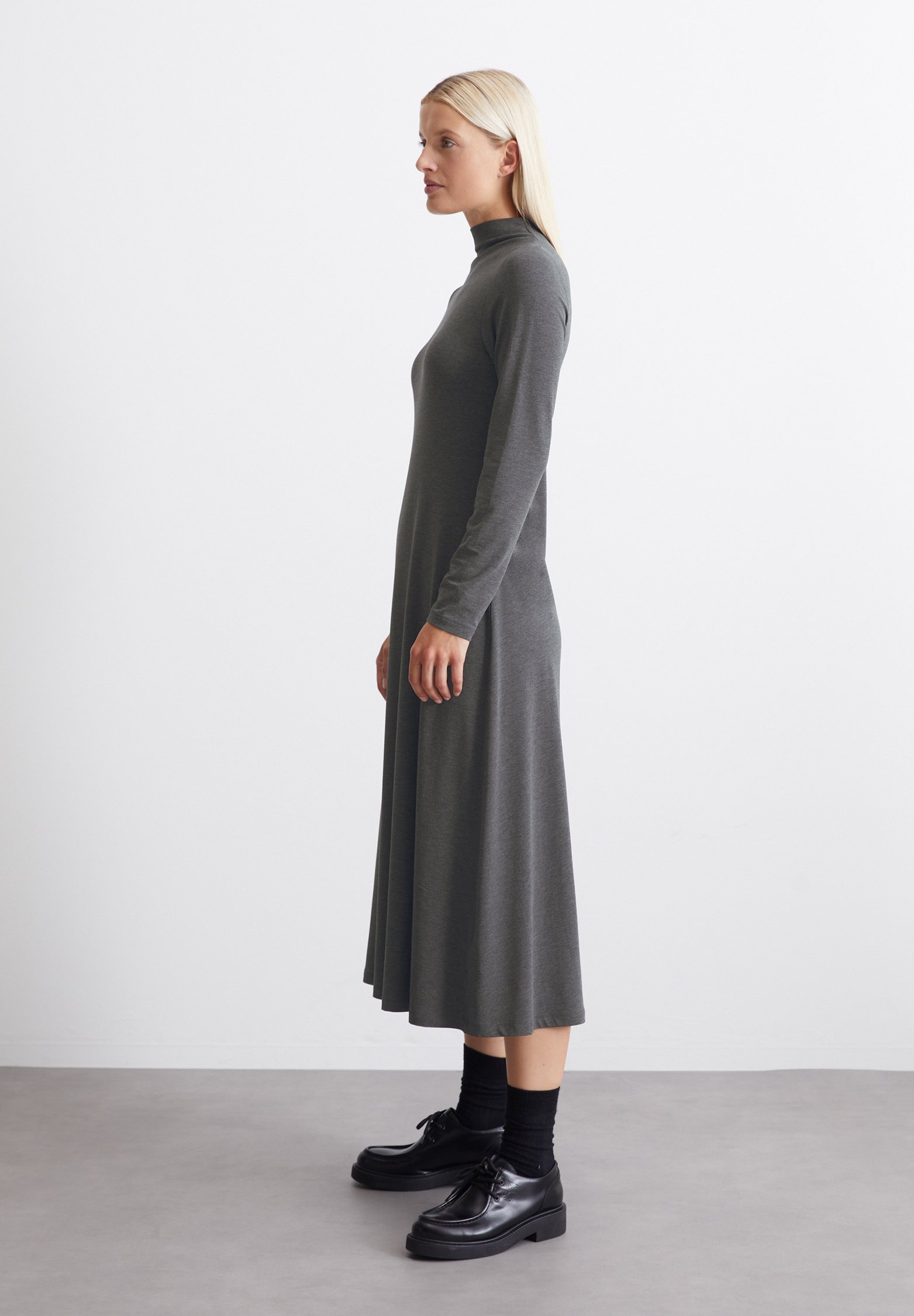 LONG SLEEVE – Jersey dress – deep grey melange