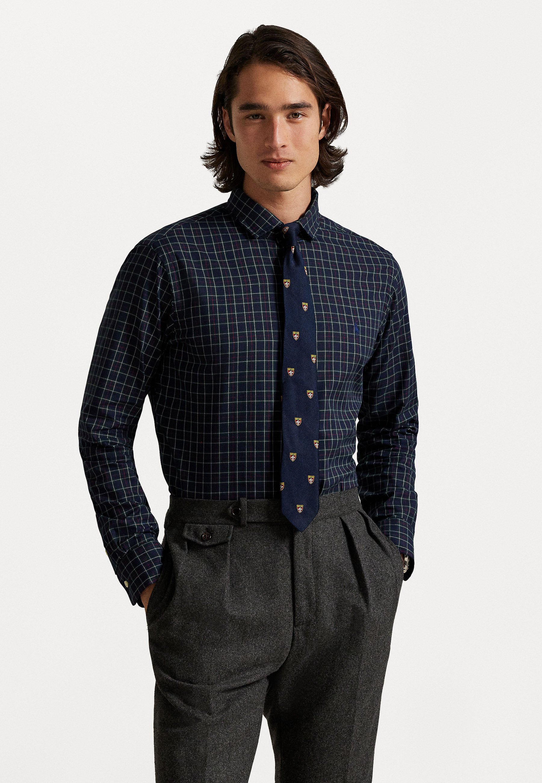 LONG SLEEVECUSTOM FIT PLAID TWILL SHIRT – Shirt – navy forest
