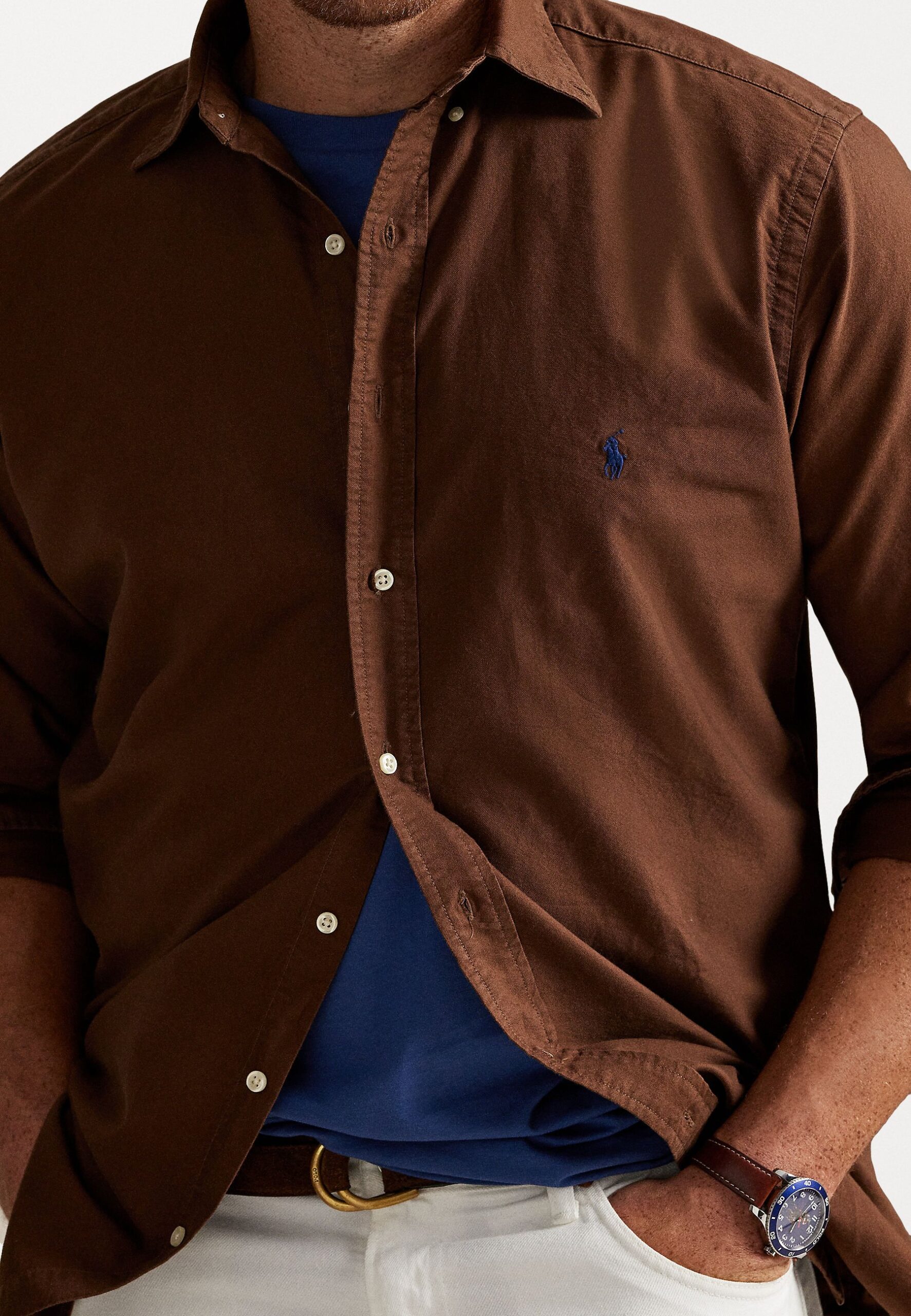 LONG SLEEVE SPORT SHIRT – Shirt – chocolate mousse/freshwater