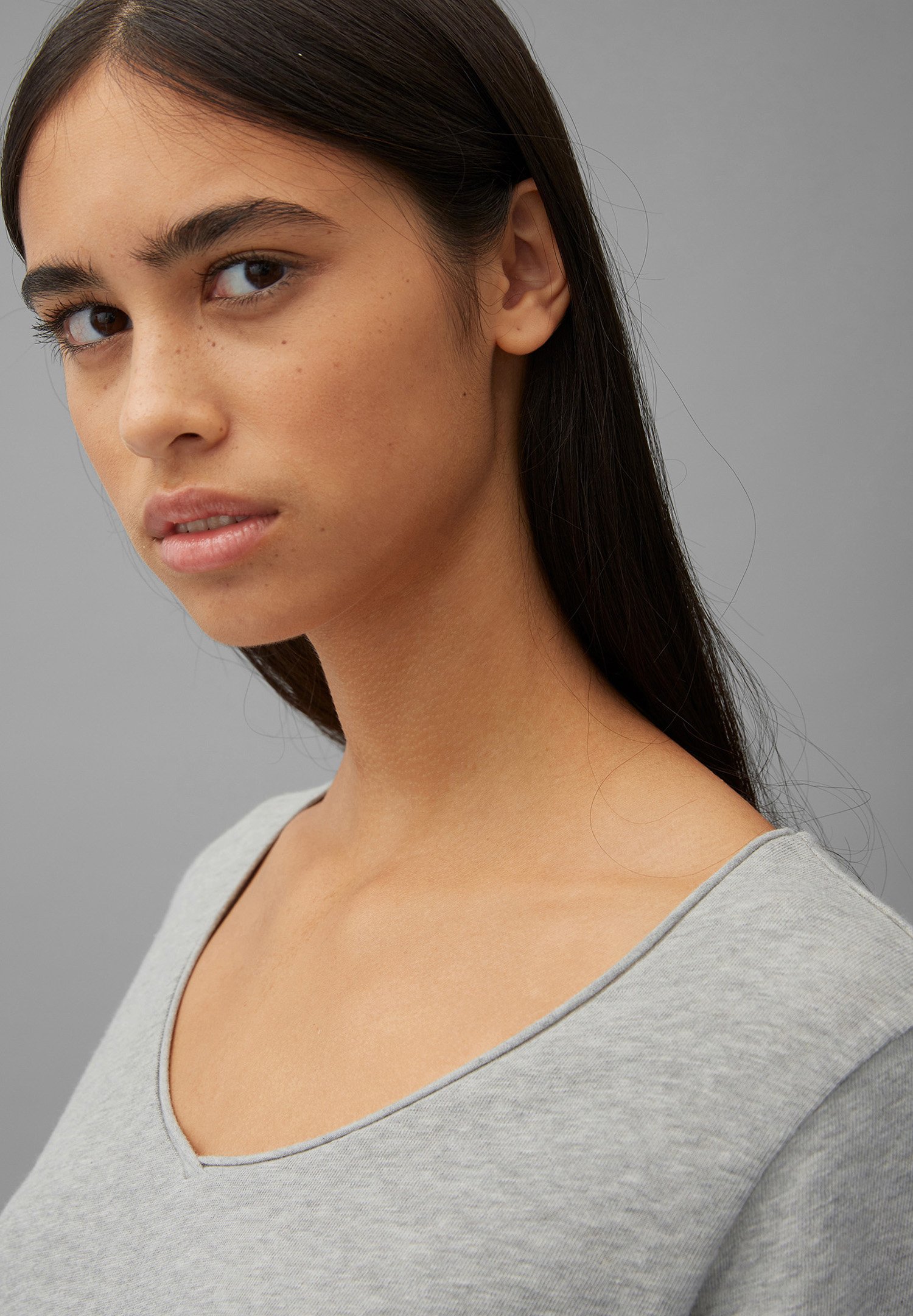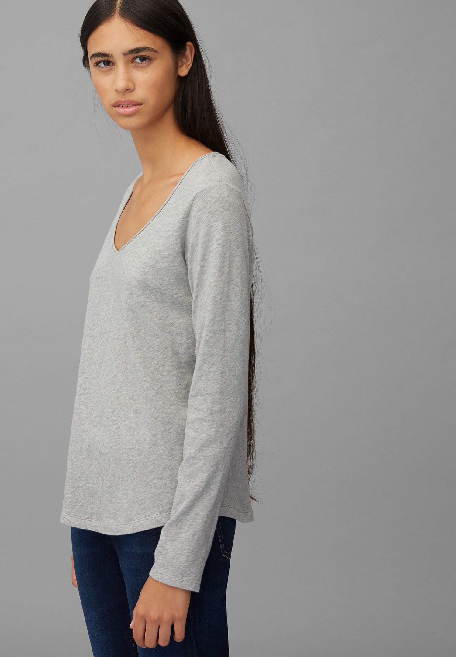 LONG SLEEVE V NECK – Long sleeved top – stone melange