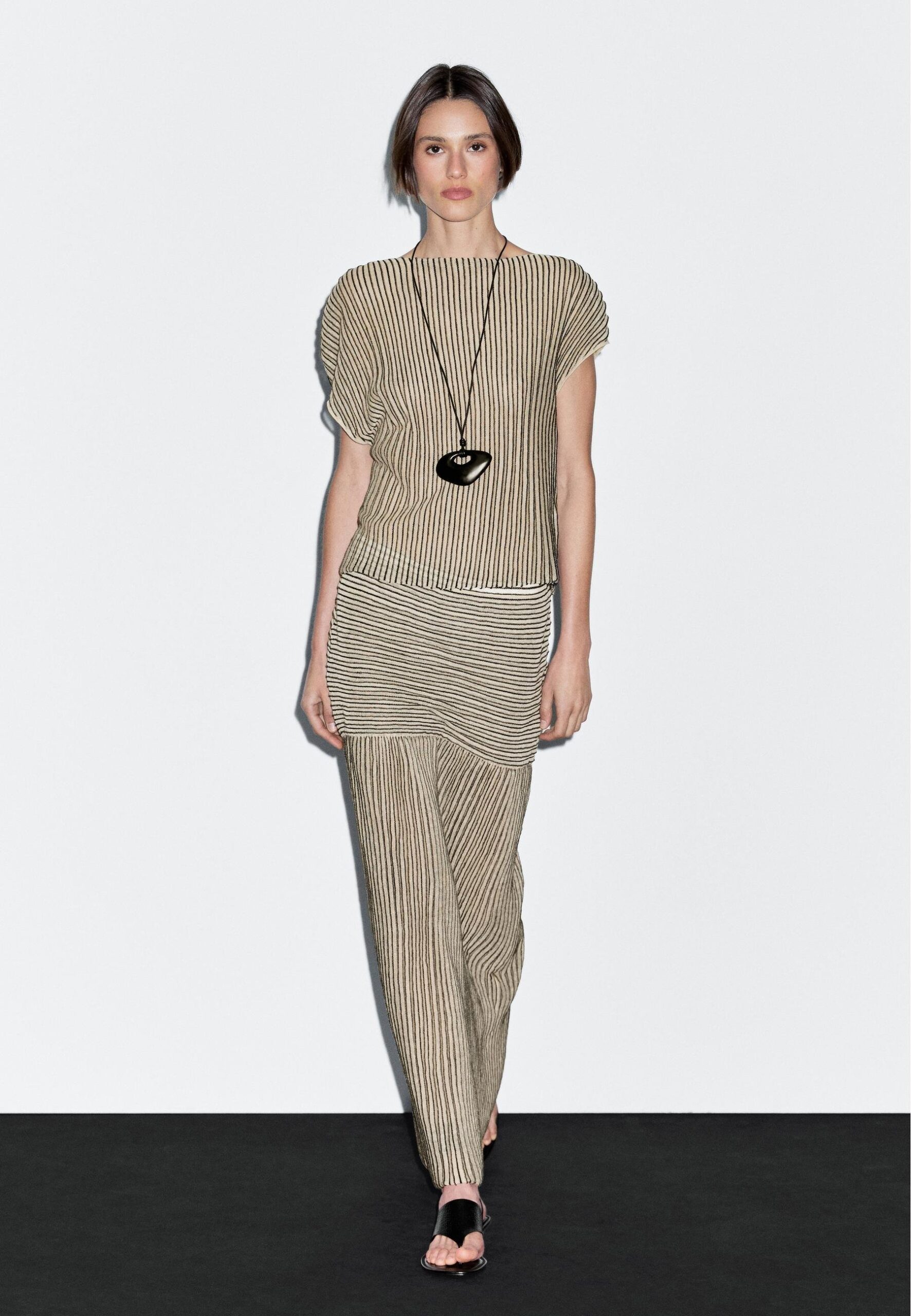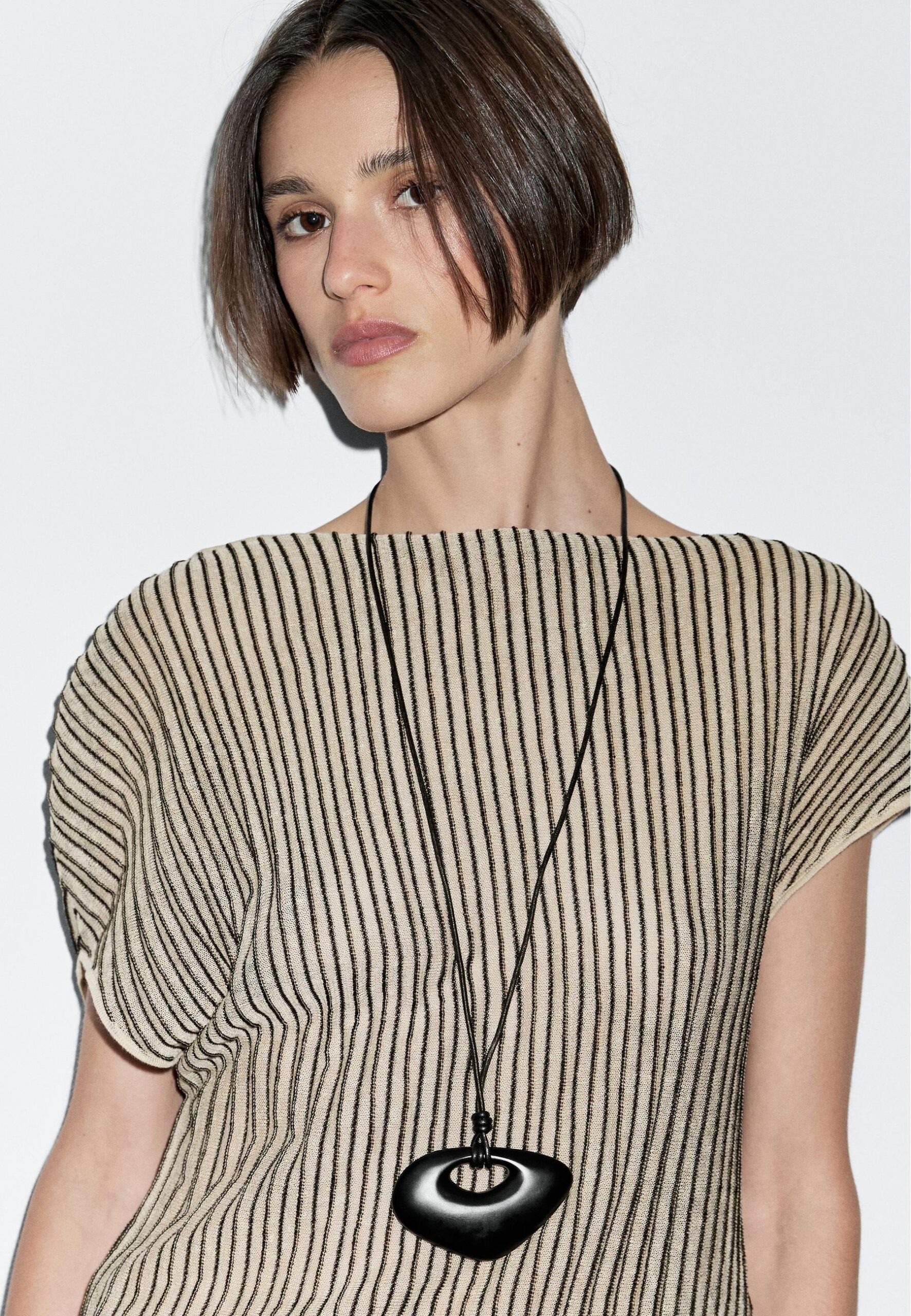 LOOSE-FITTING PLEATED WITH FLECKED DETAIL – Top – beige