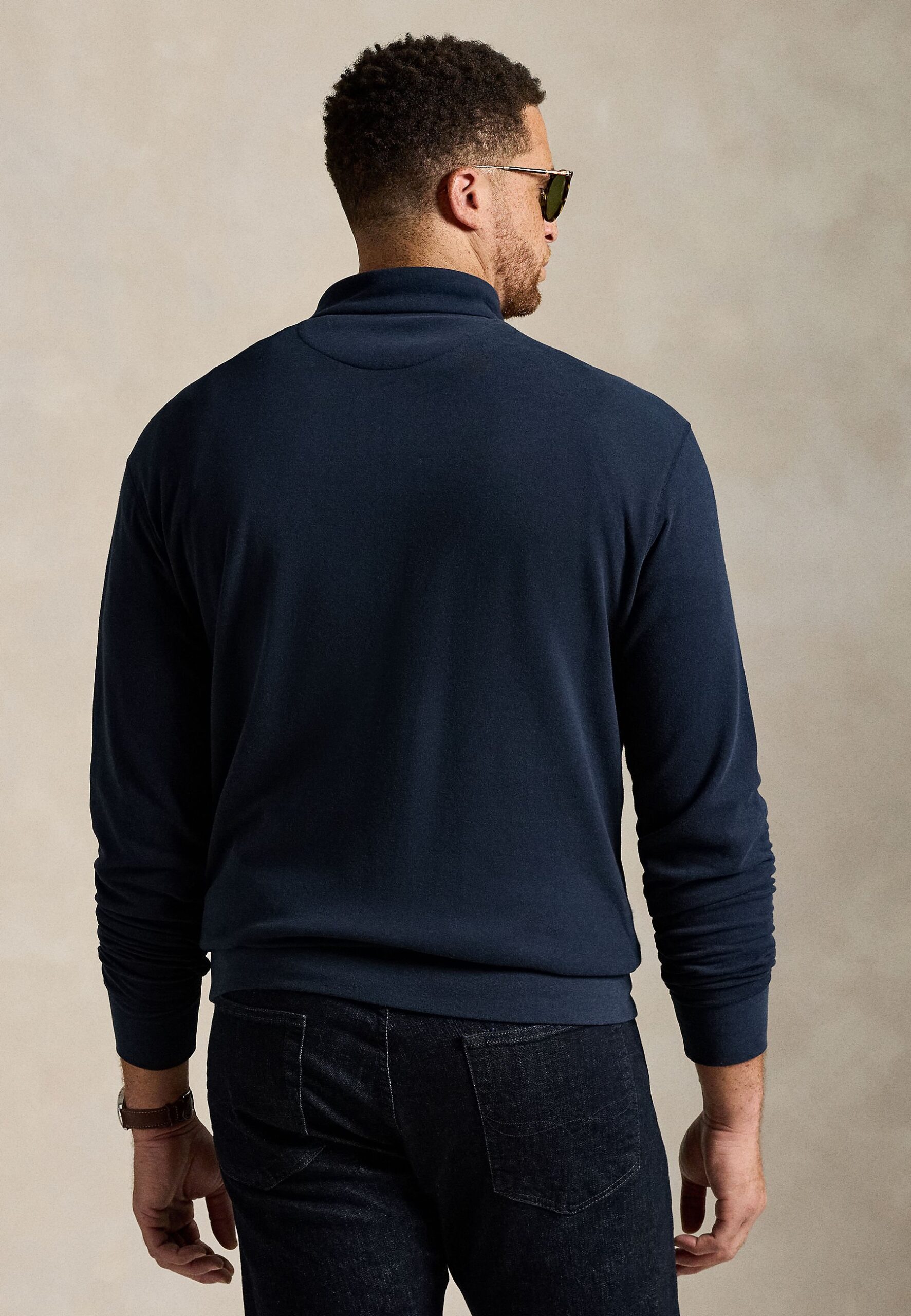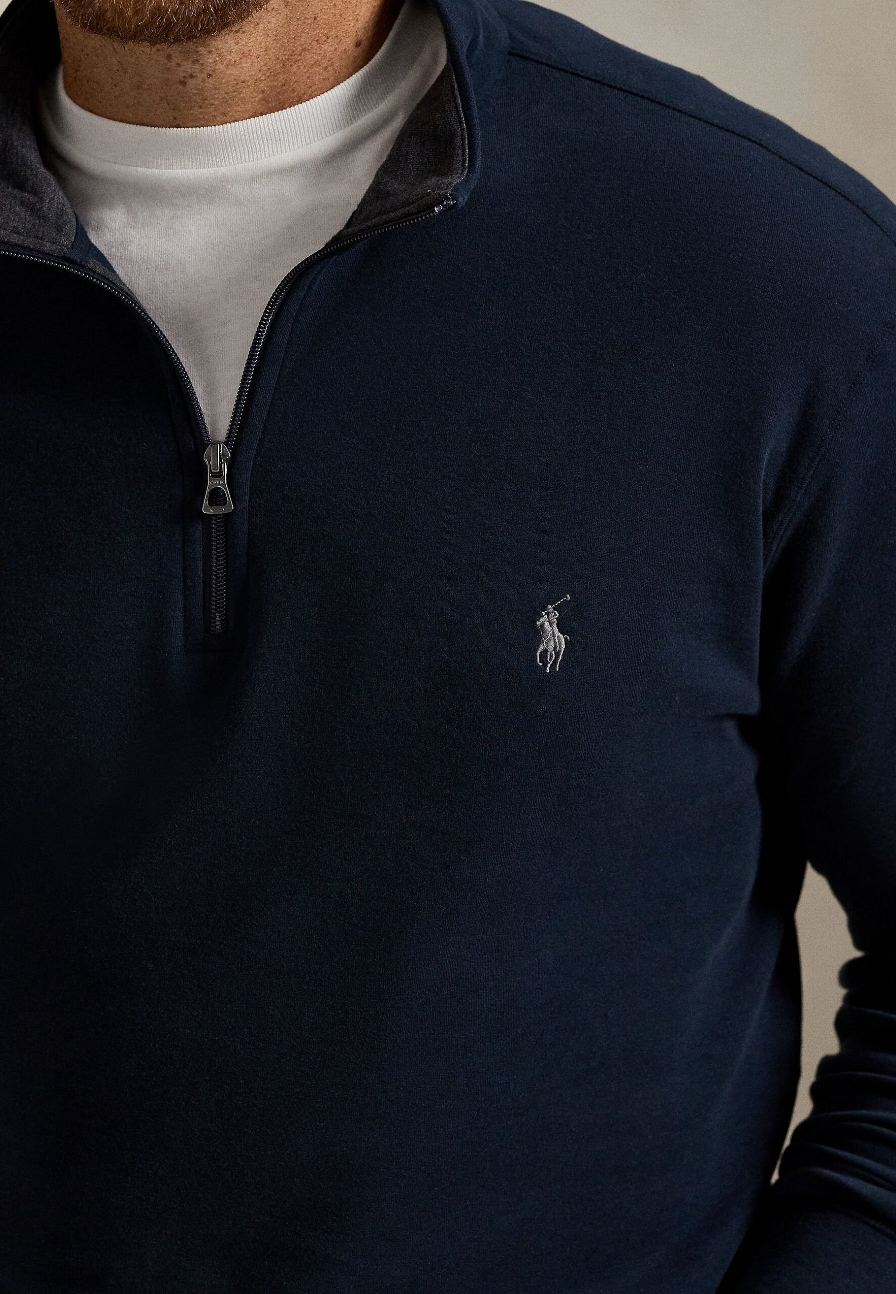 LUXURY JERSEY QUARTER ZIP PULLOVER – Long sleeved top – aviator navy