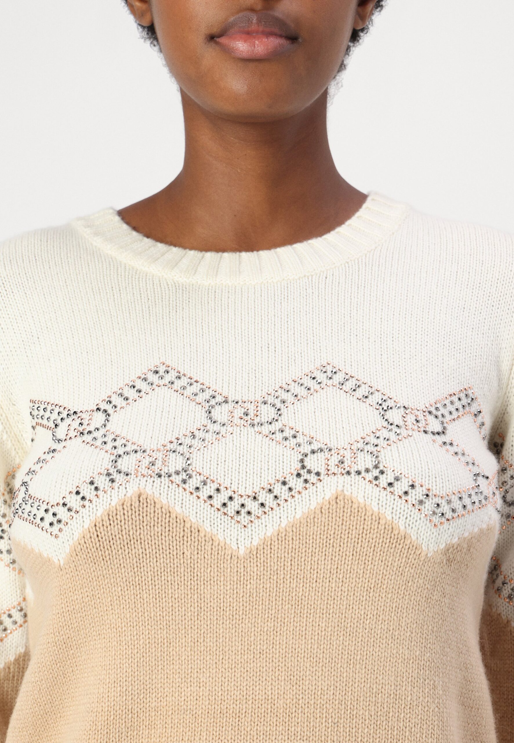 MAGLIA CHIUSA – Jumper – cammel/white sugar