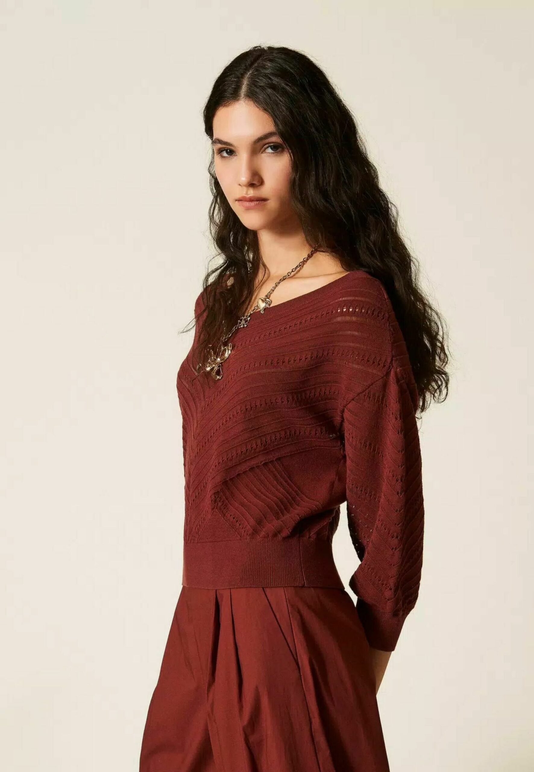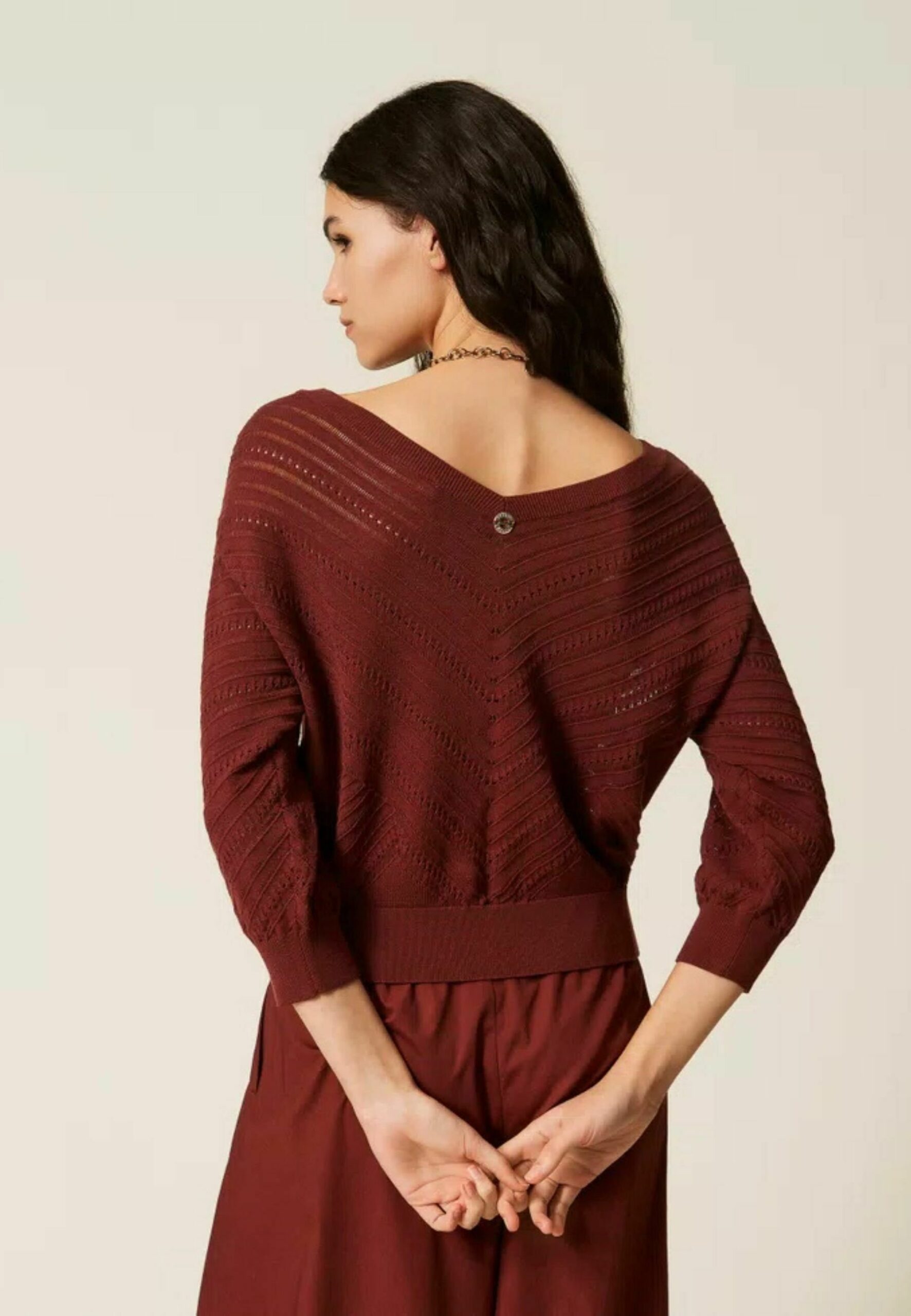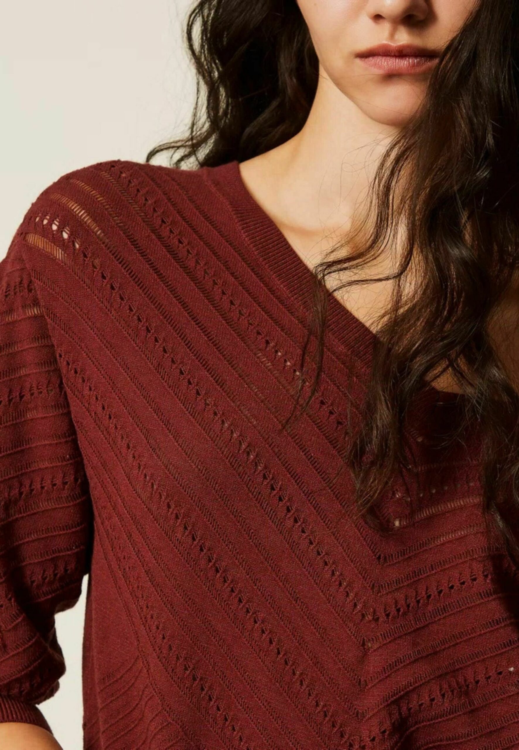 MAGLIA CON SCOLLO A V – Jumper – bordeau