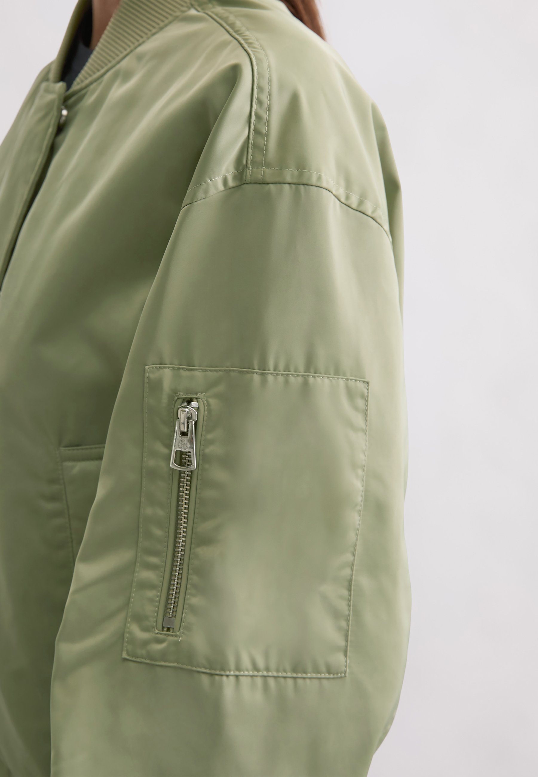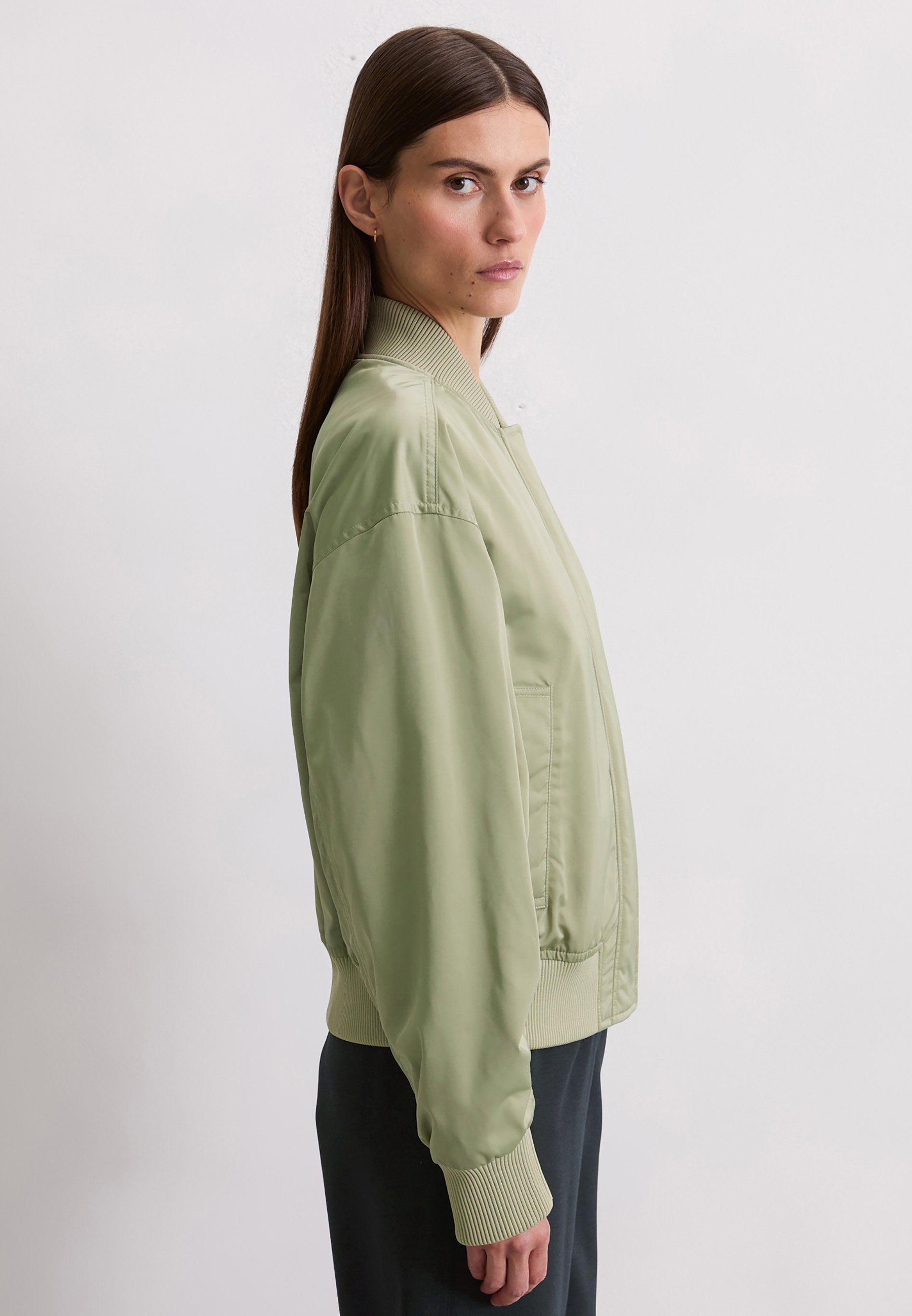 MARC O’POLO X DFB TRAVEL COLLECTION BLOUSON, KNITTED DETAILS, CONTRAST LINING, WELT POCKETS – Bomber Jacket – smooth sage