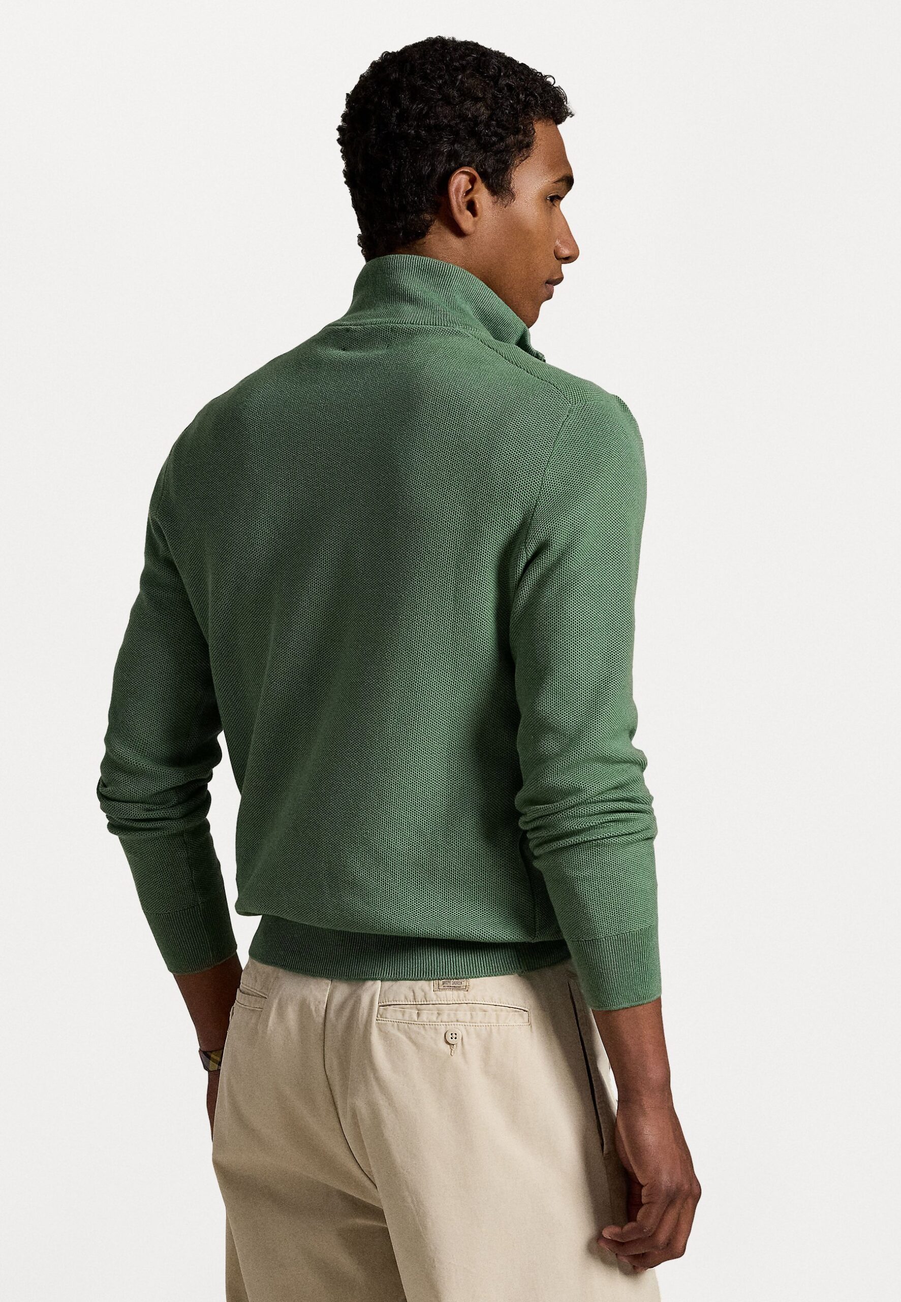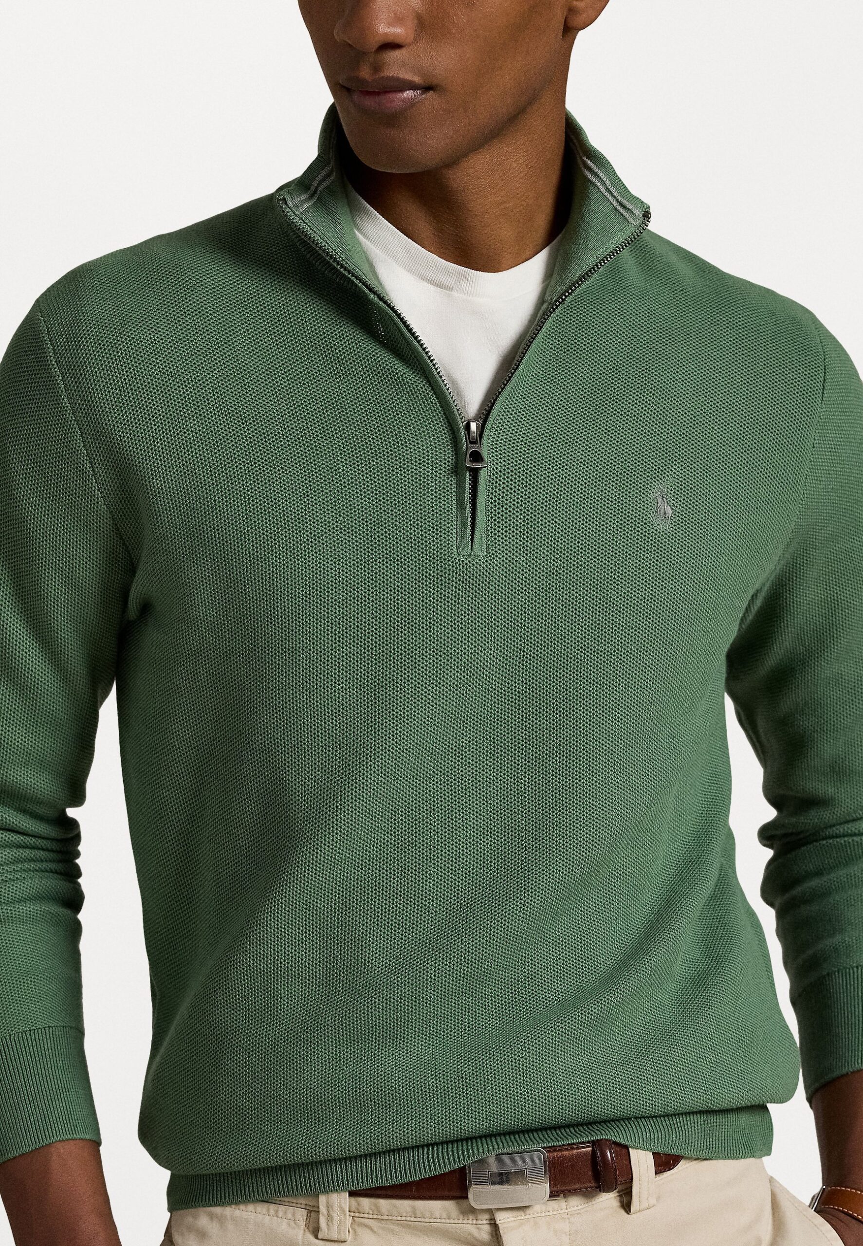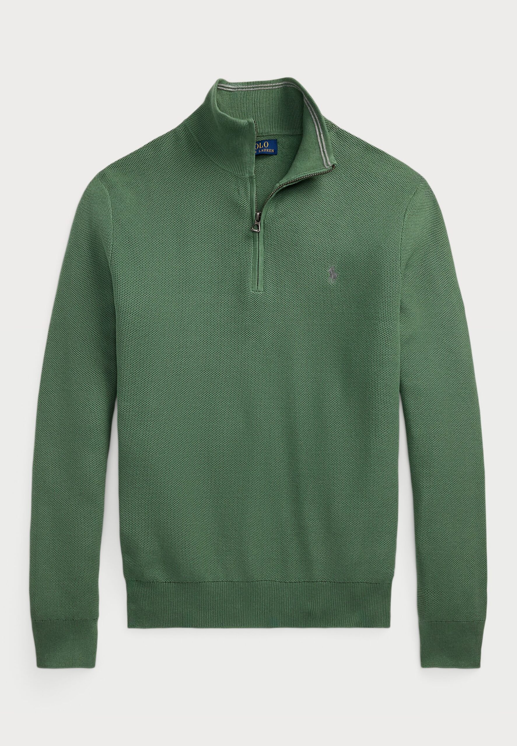 MESH KNIT COTTON QUARTER-ZIP SWEATER – Jumper – fatigue