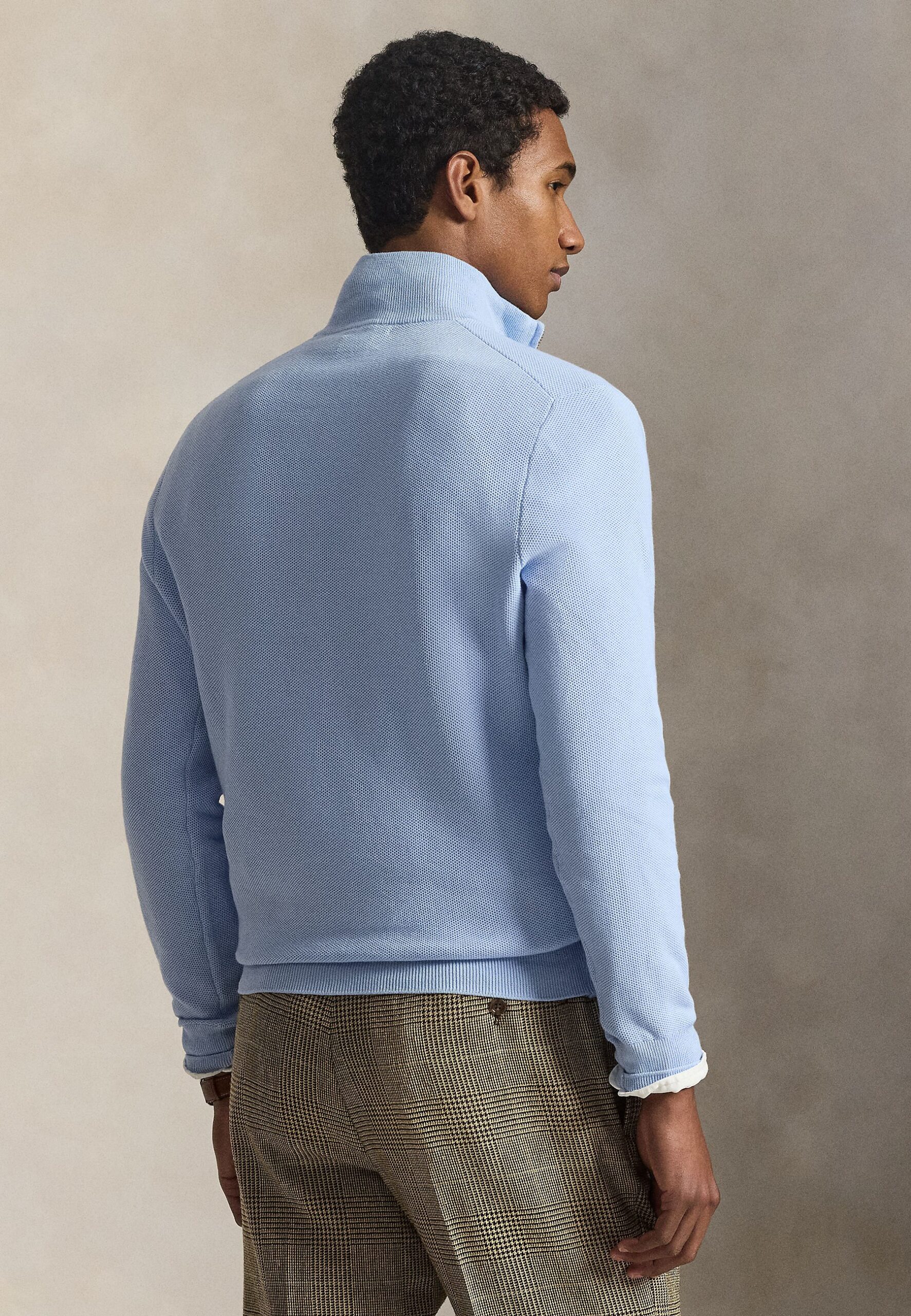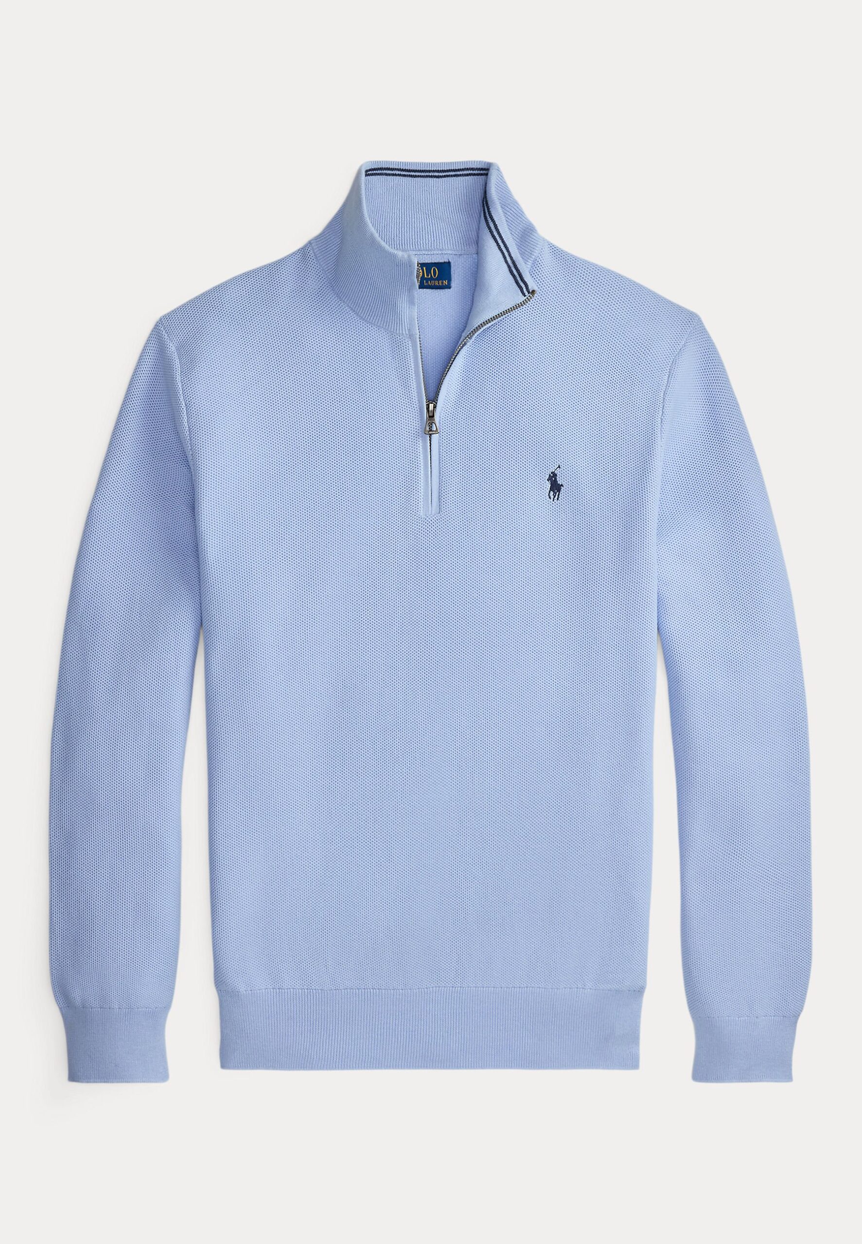 MESH KNIT COTTON QUARTER ZIP SWEATER – Jumper – office blue