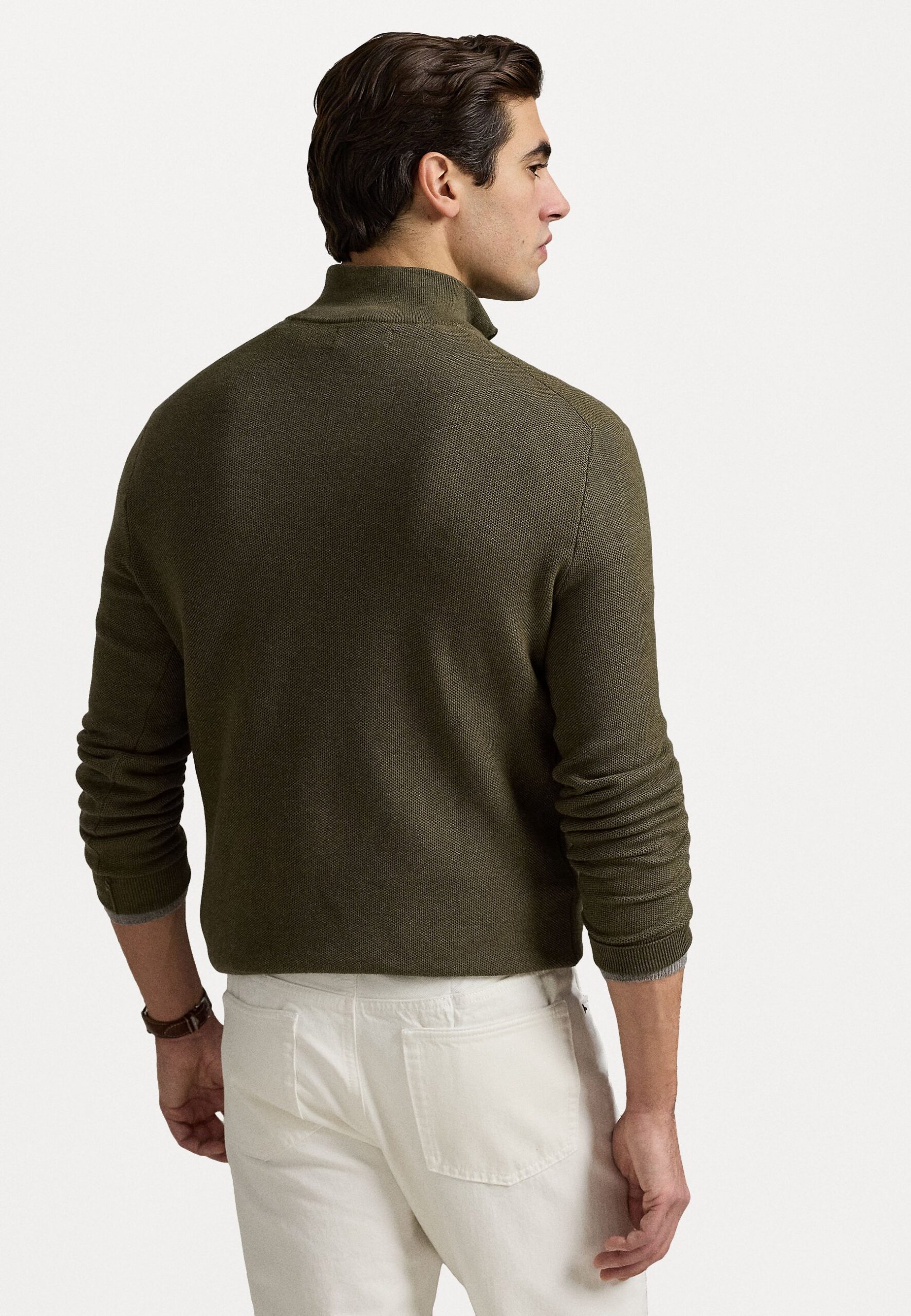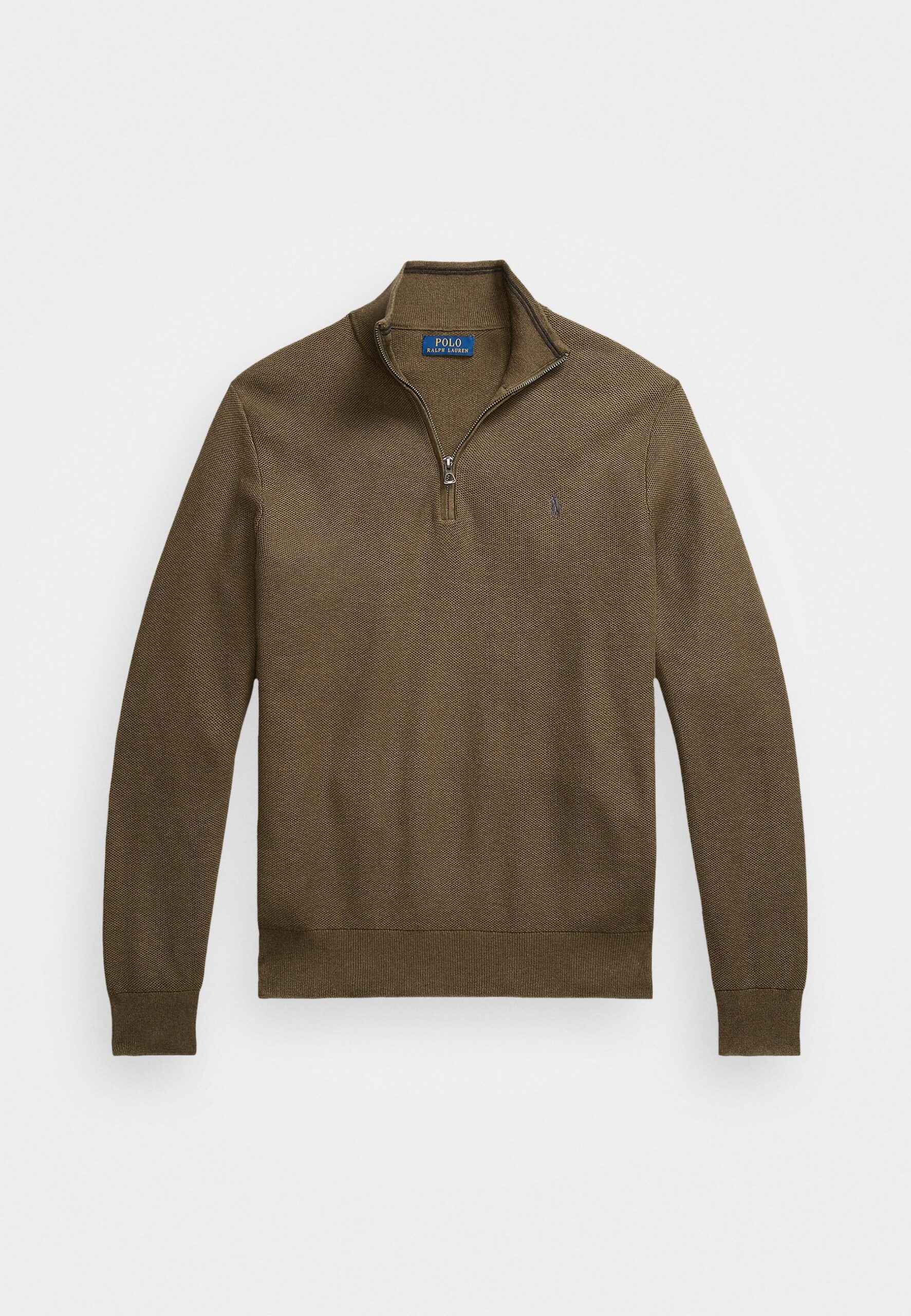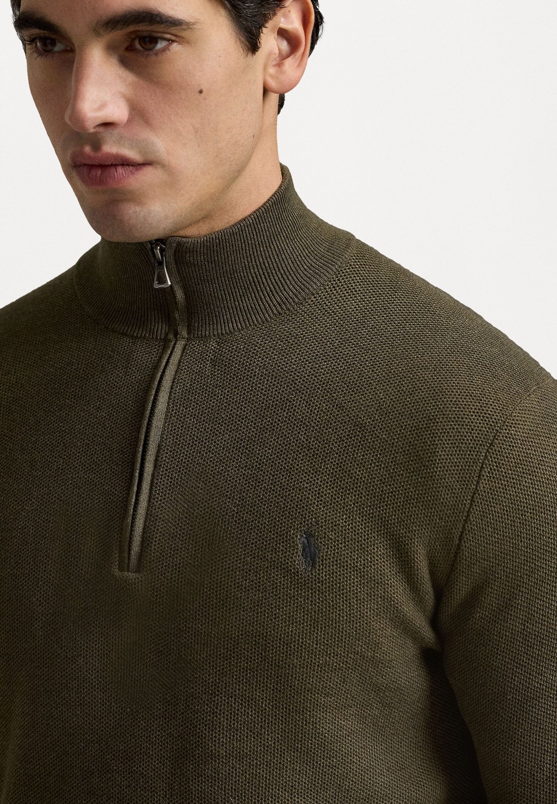 MESH KNIT COTTON QUARTER-ZIP SWEATER – Jumper – olive