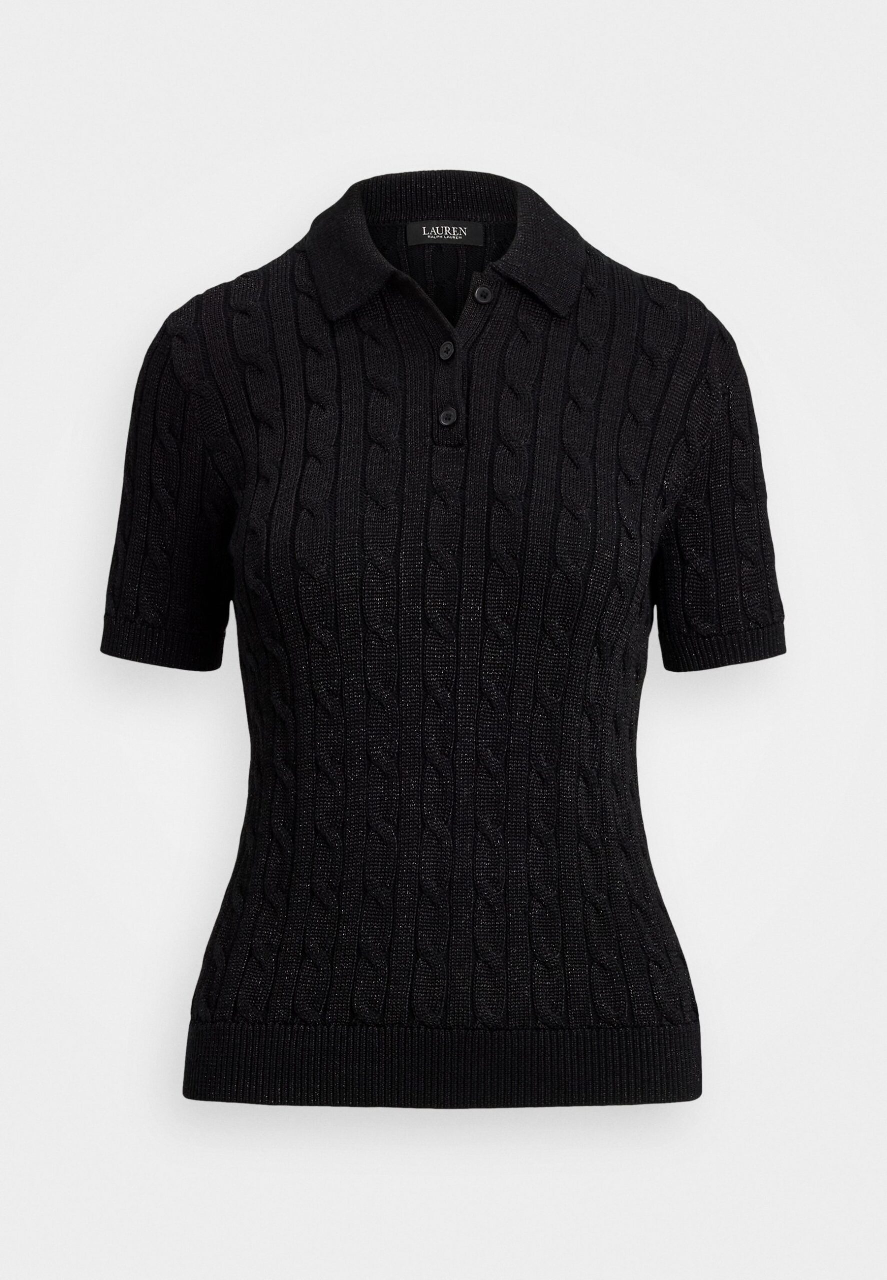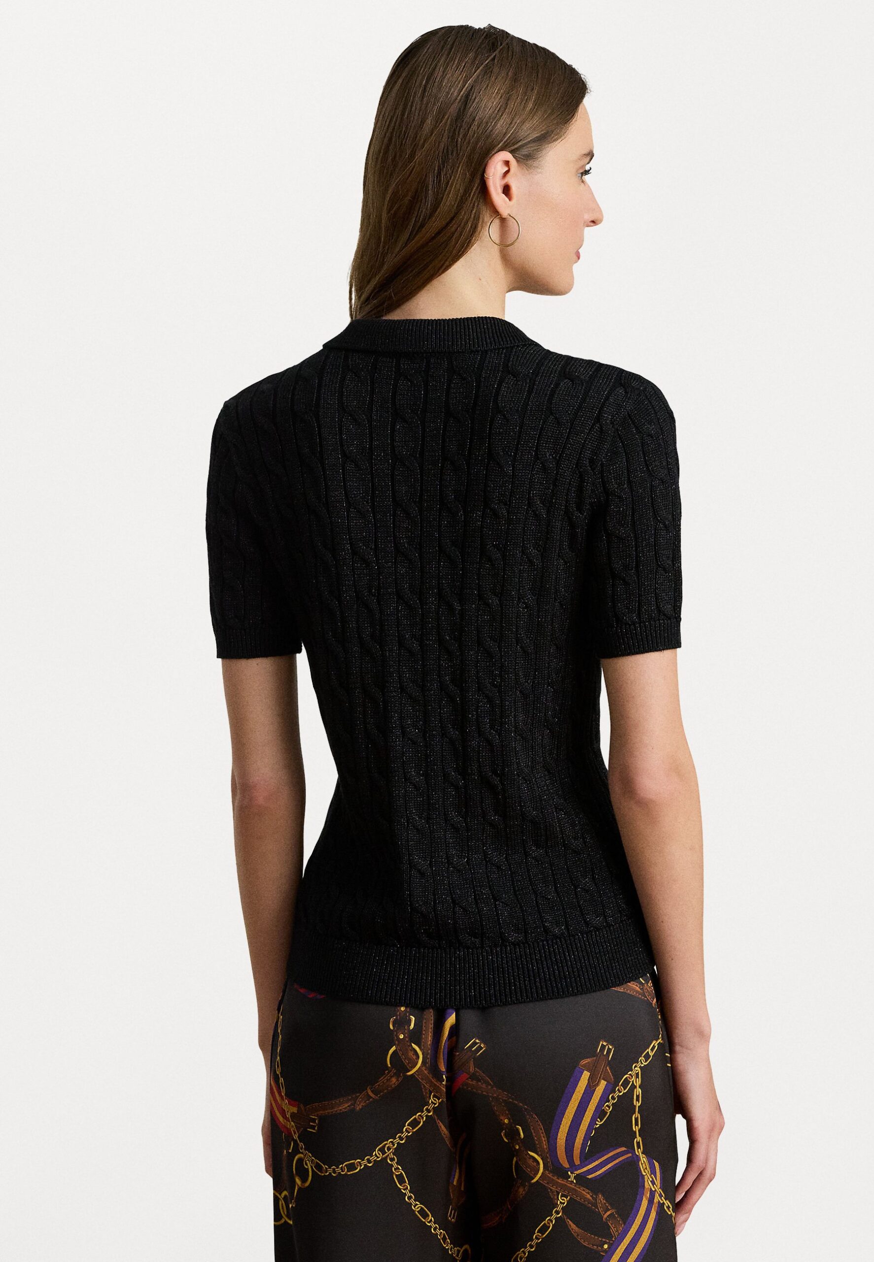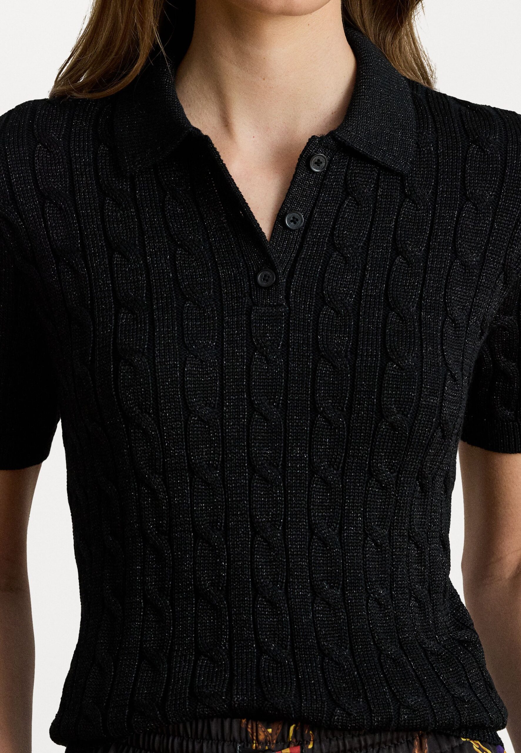 METALLIC CABLE-KNIT POLO SWEATER – Jumper – black metallic