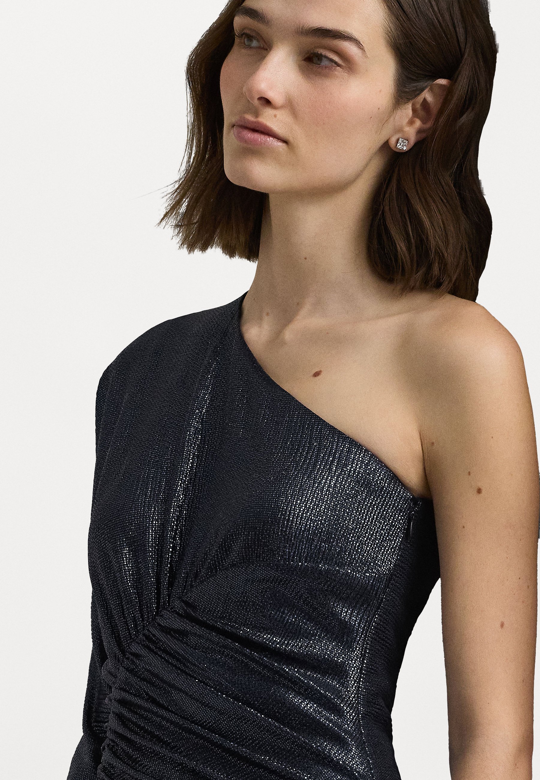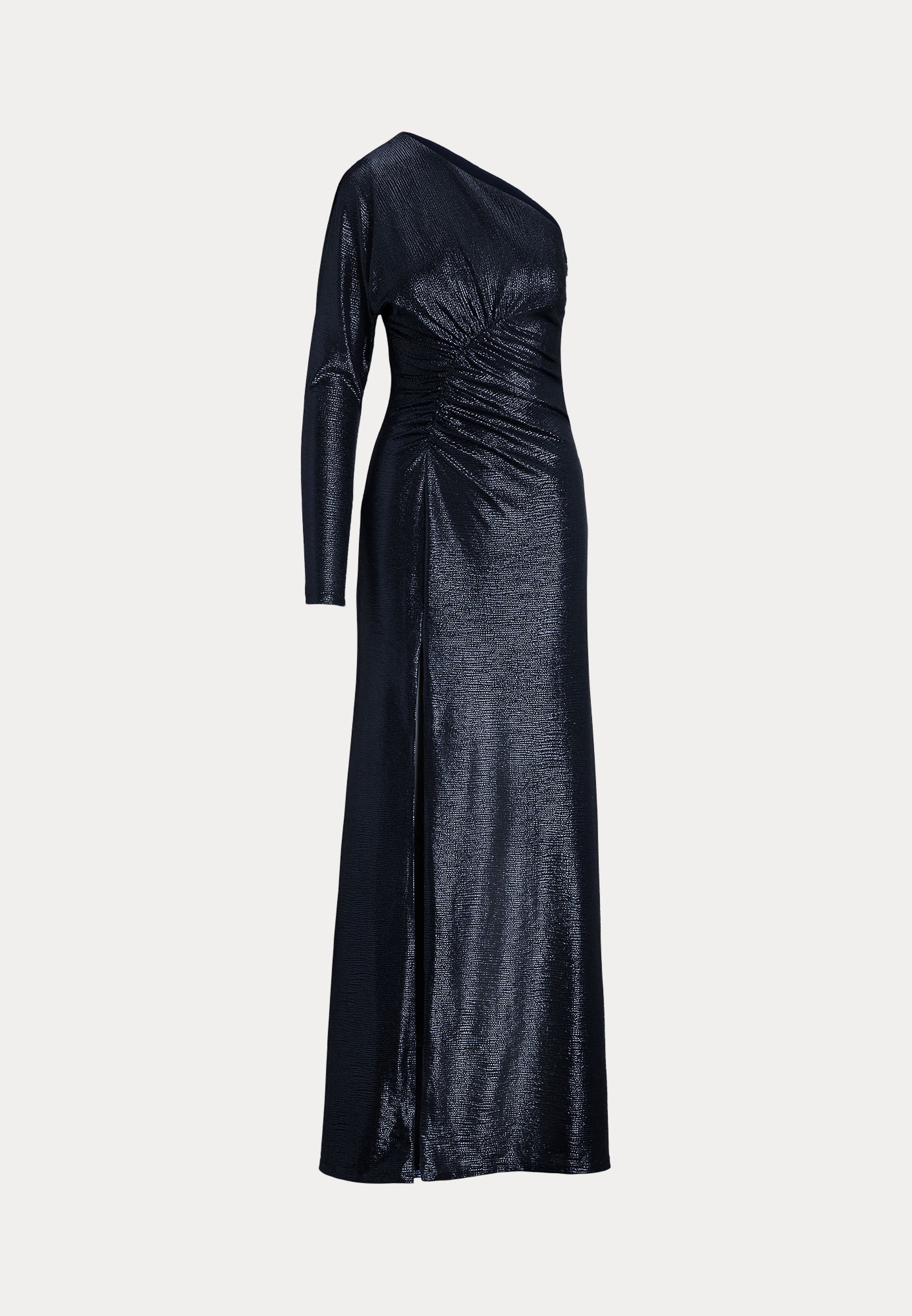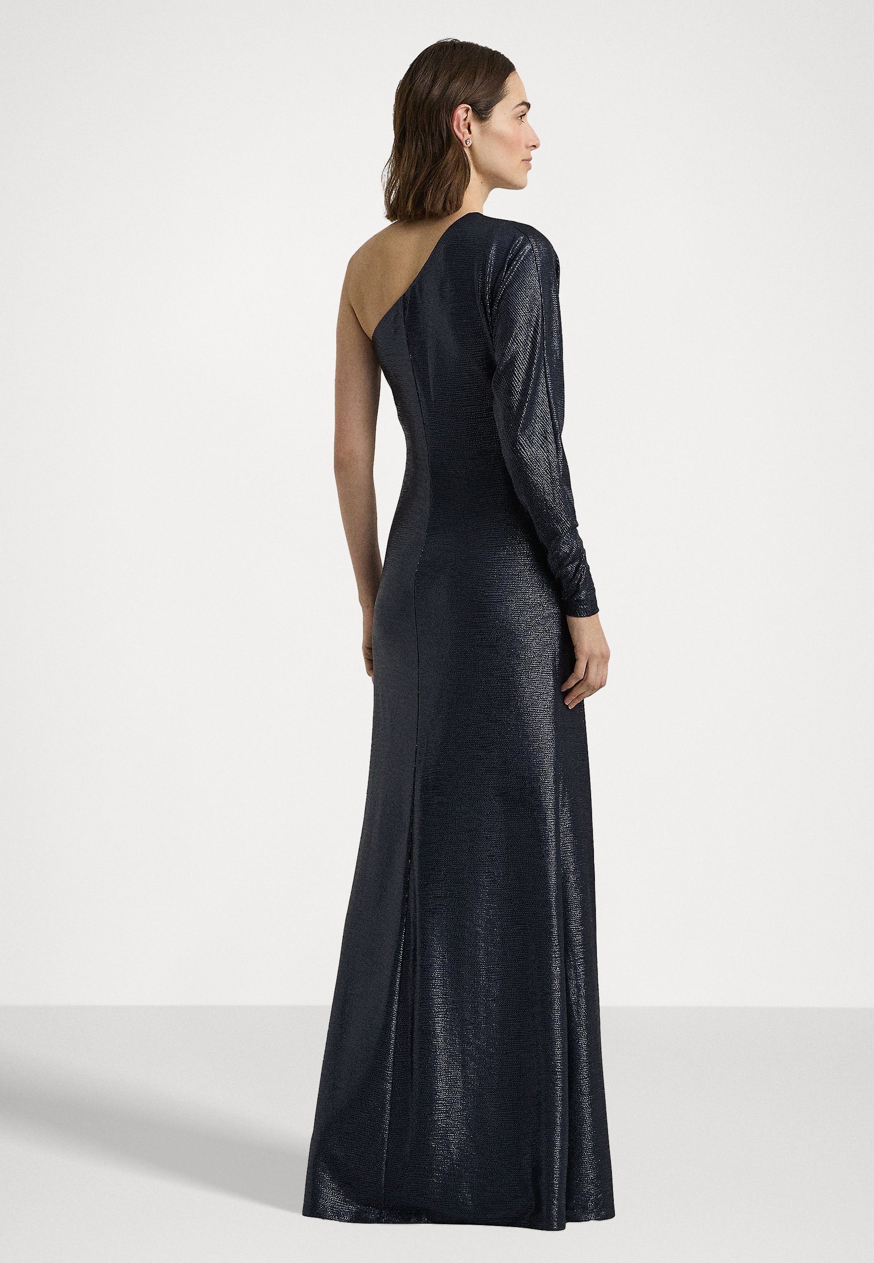 METALLIC KNIT ONE SHOULDER GOWN – Occasion wear – navy