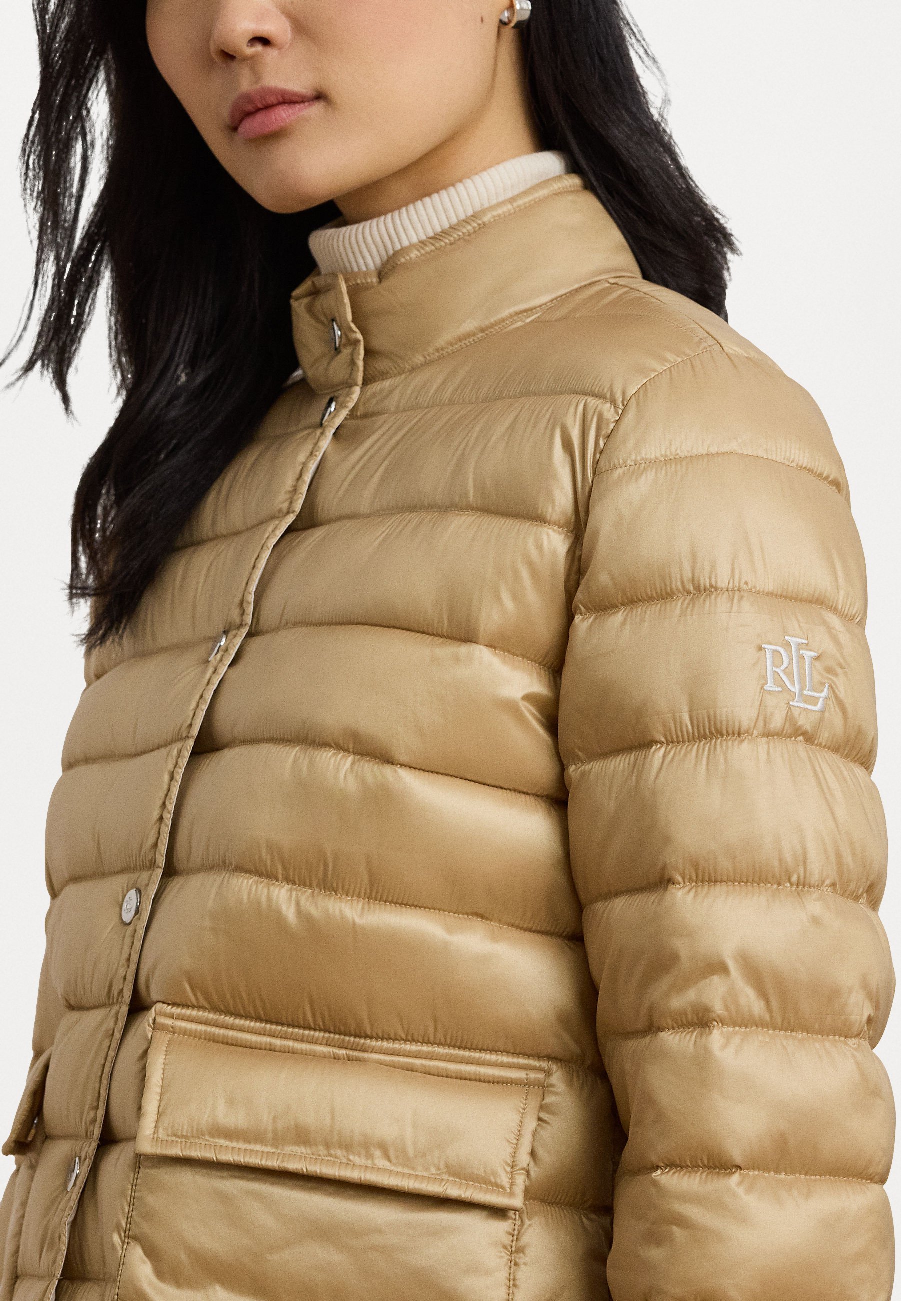 METALLIC QUILTED DOWN COAT – Down jacket – sand dune