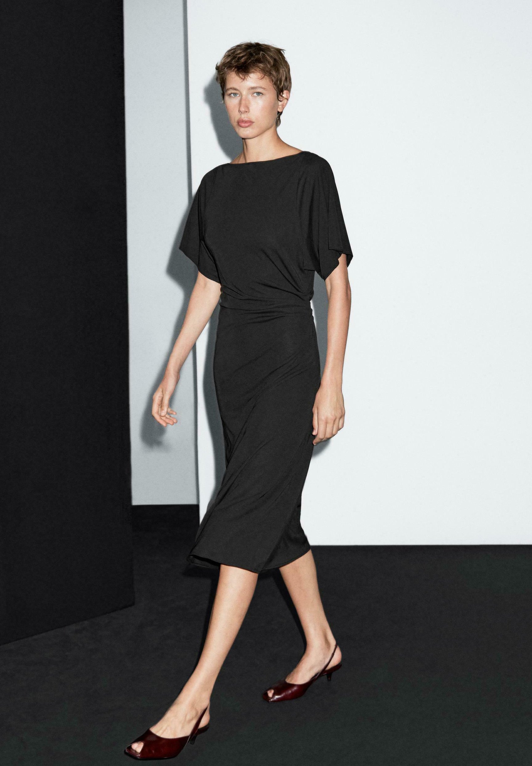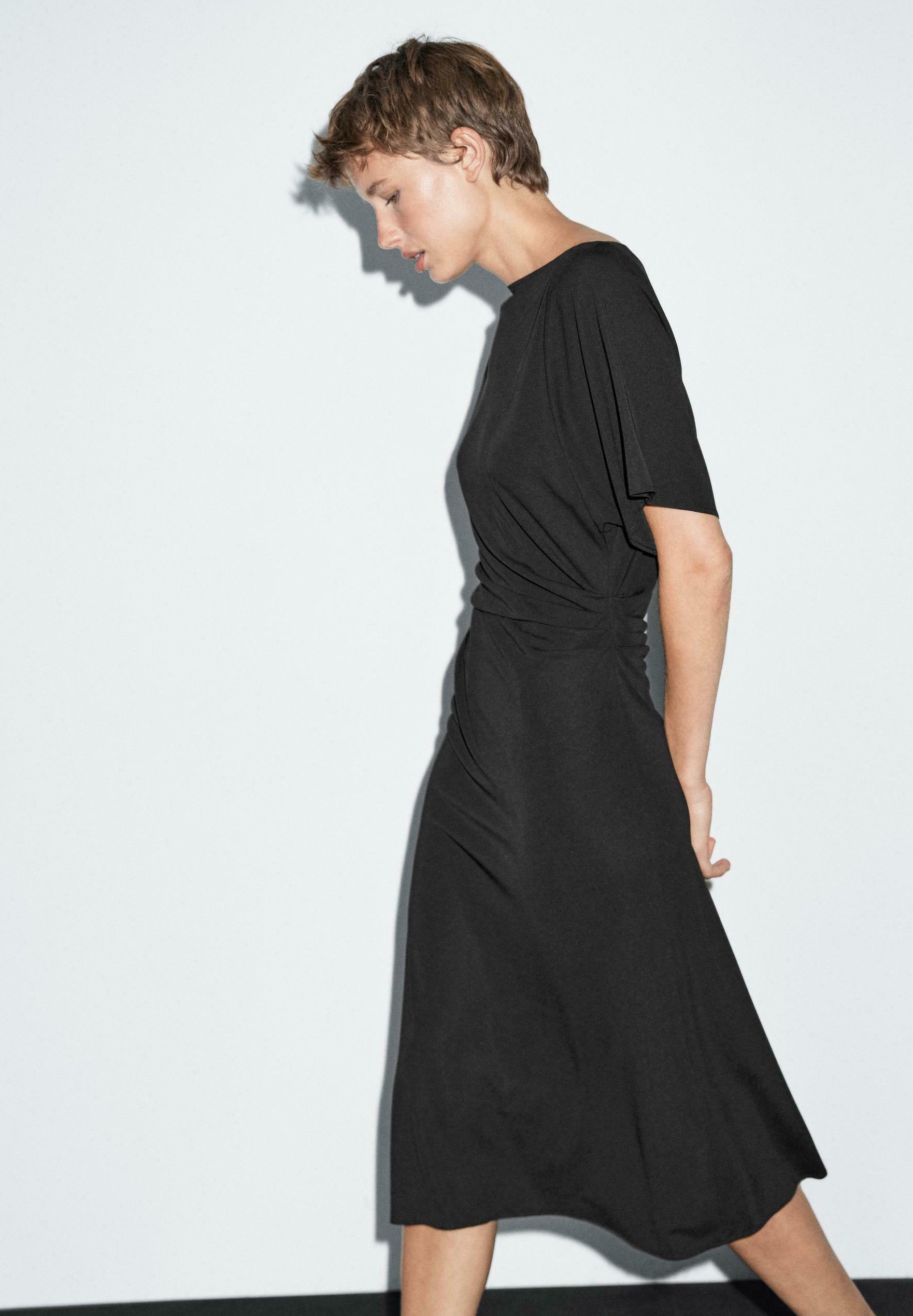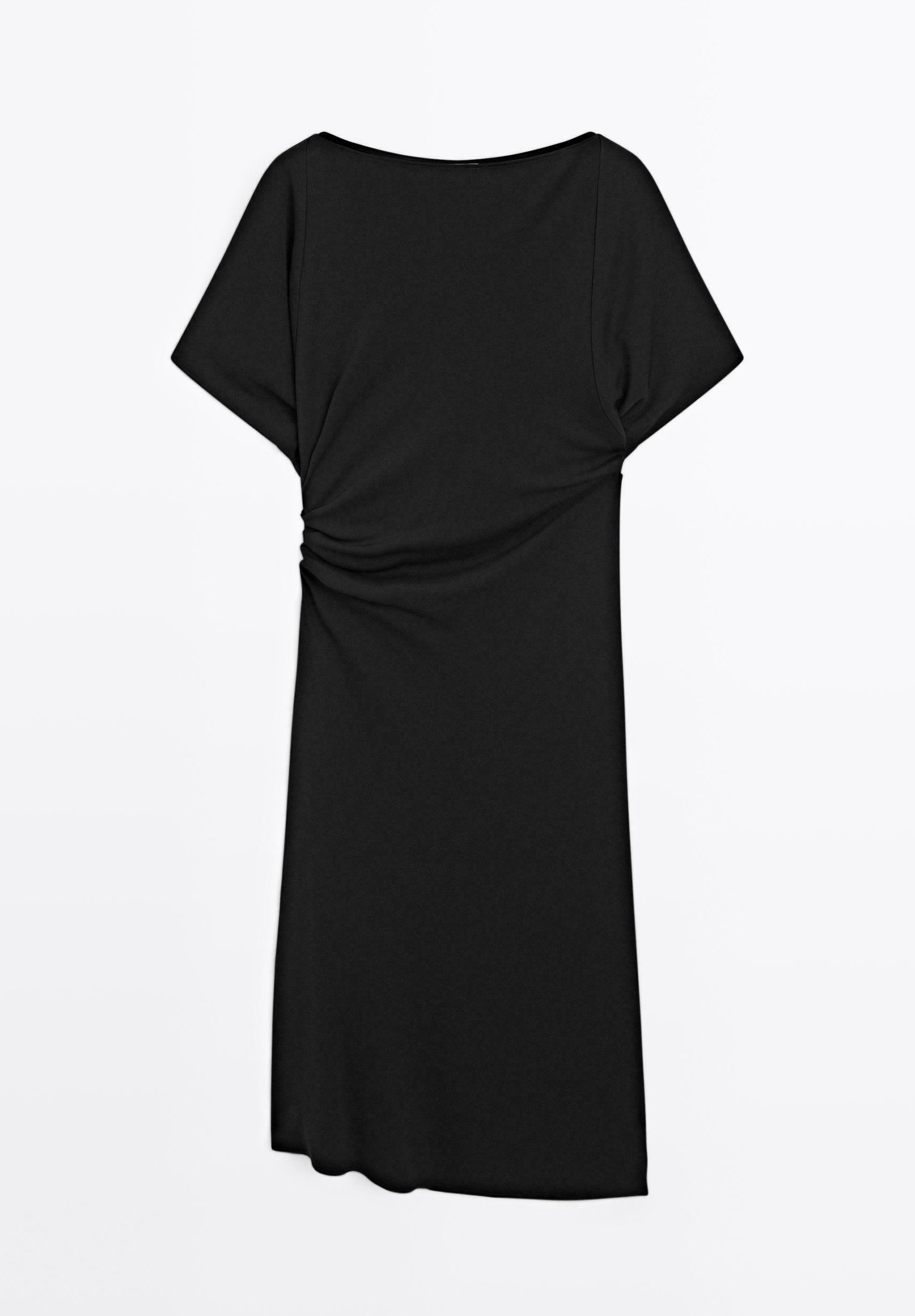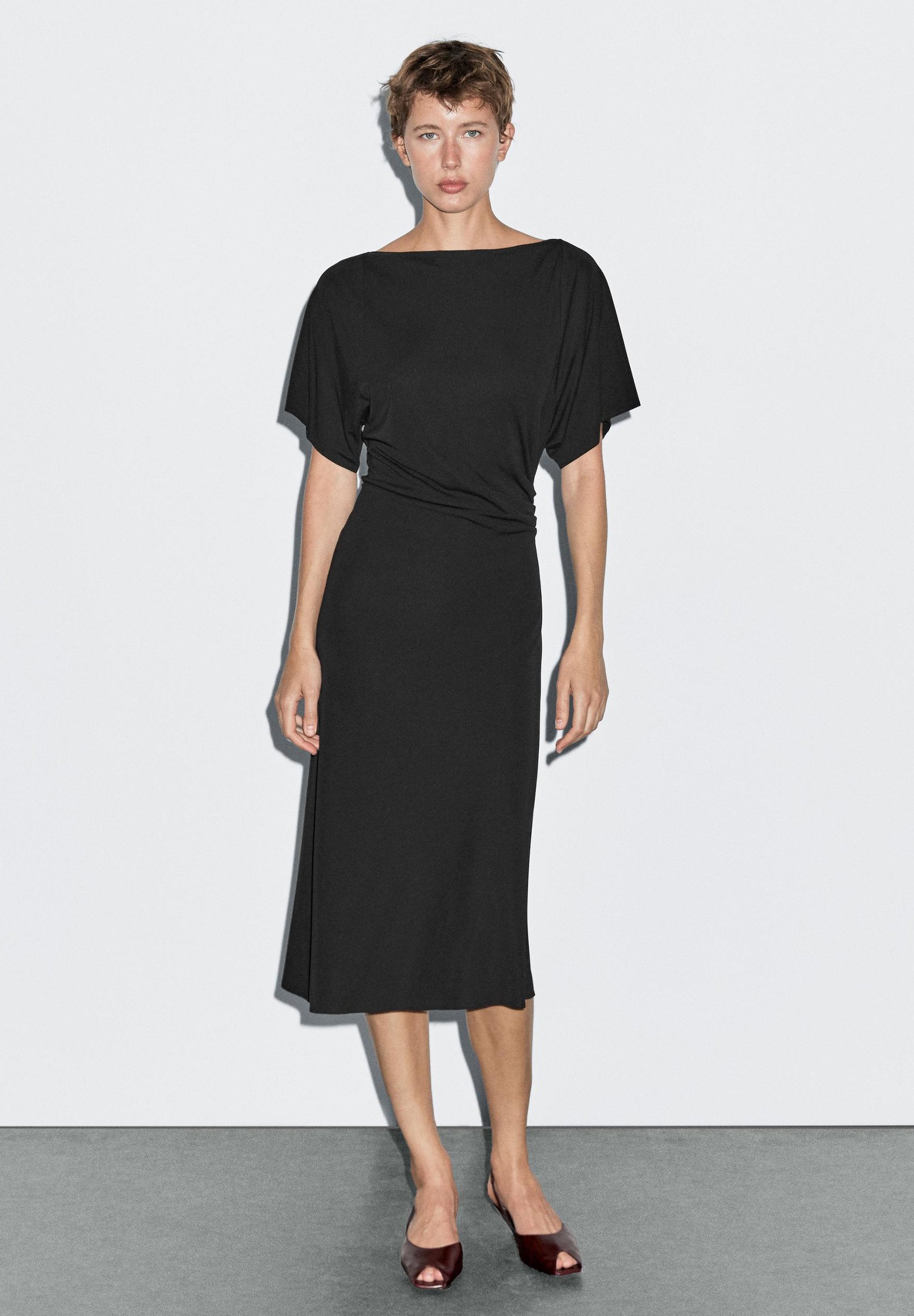 MIDI BOAT NECK WITH GATHERED DETAIL – Day dress – black