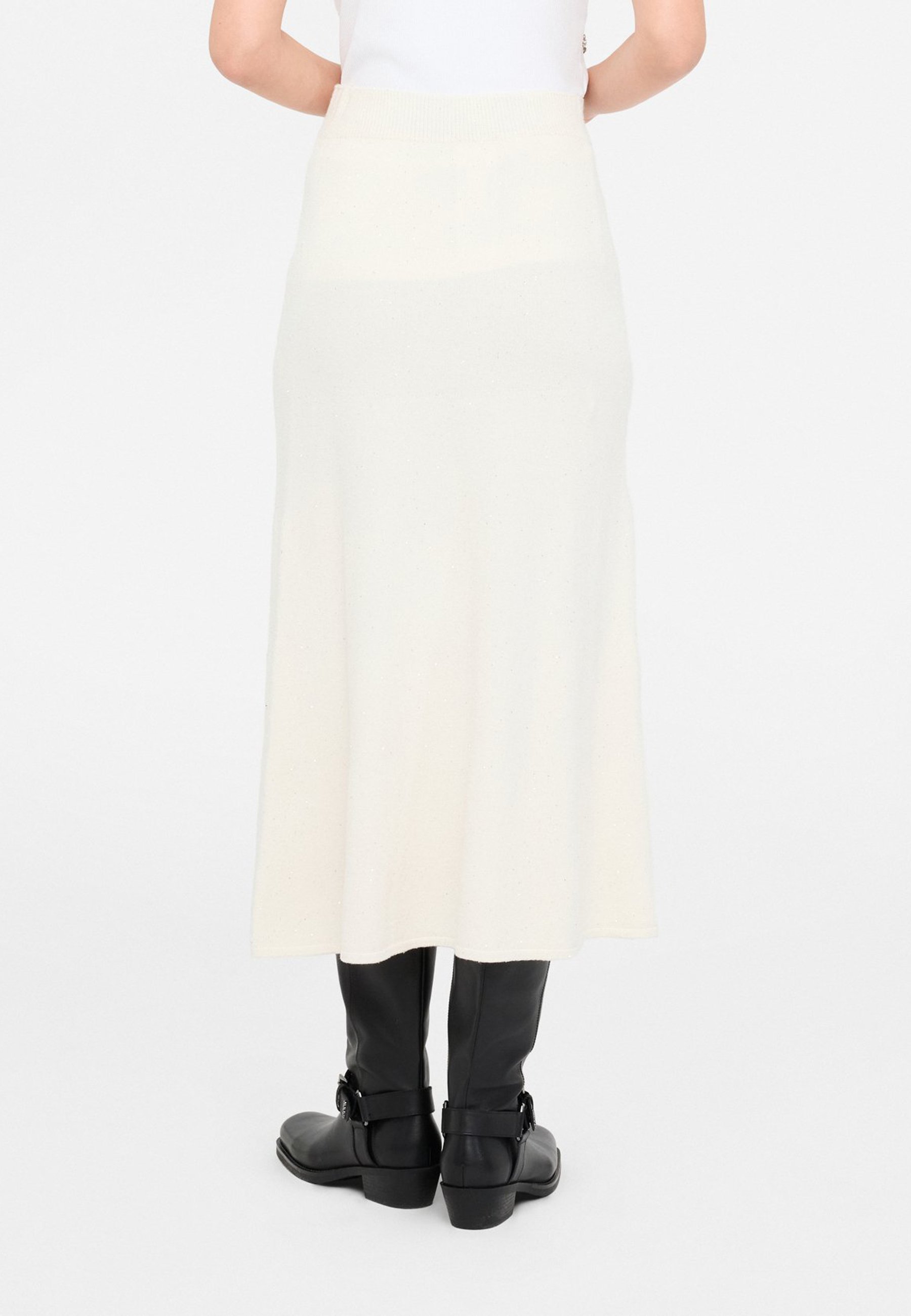 MIDI CON PAILLETTES – A-line skirt – beige