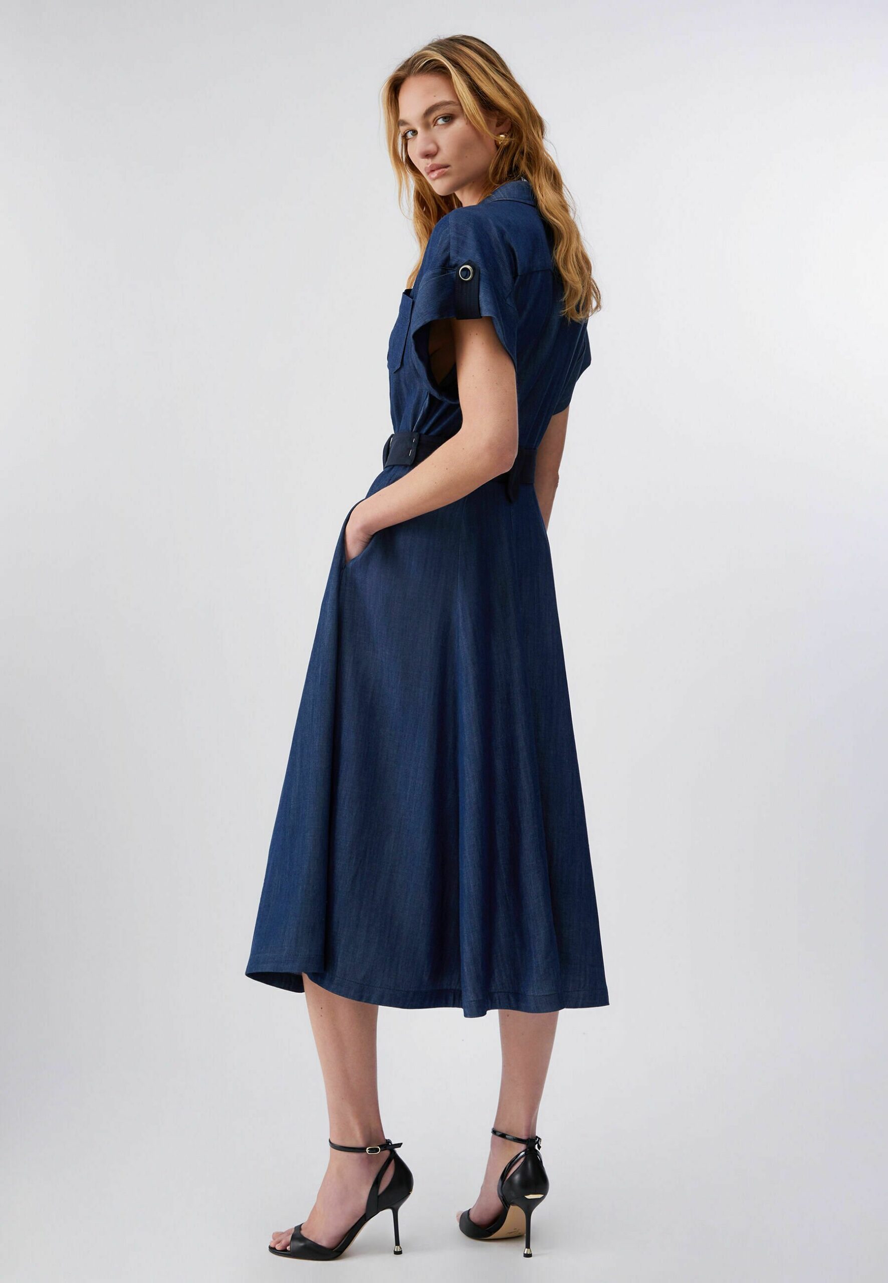 MIDI WITH BELT – Shirt dress – dark blue