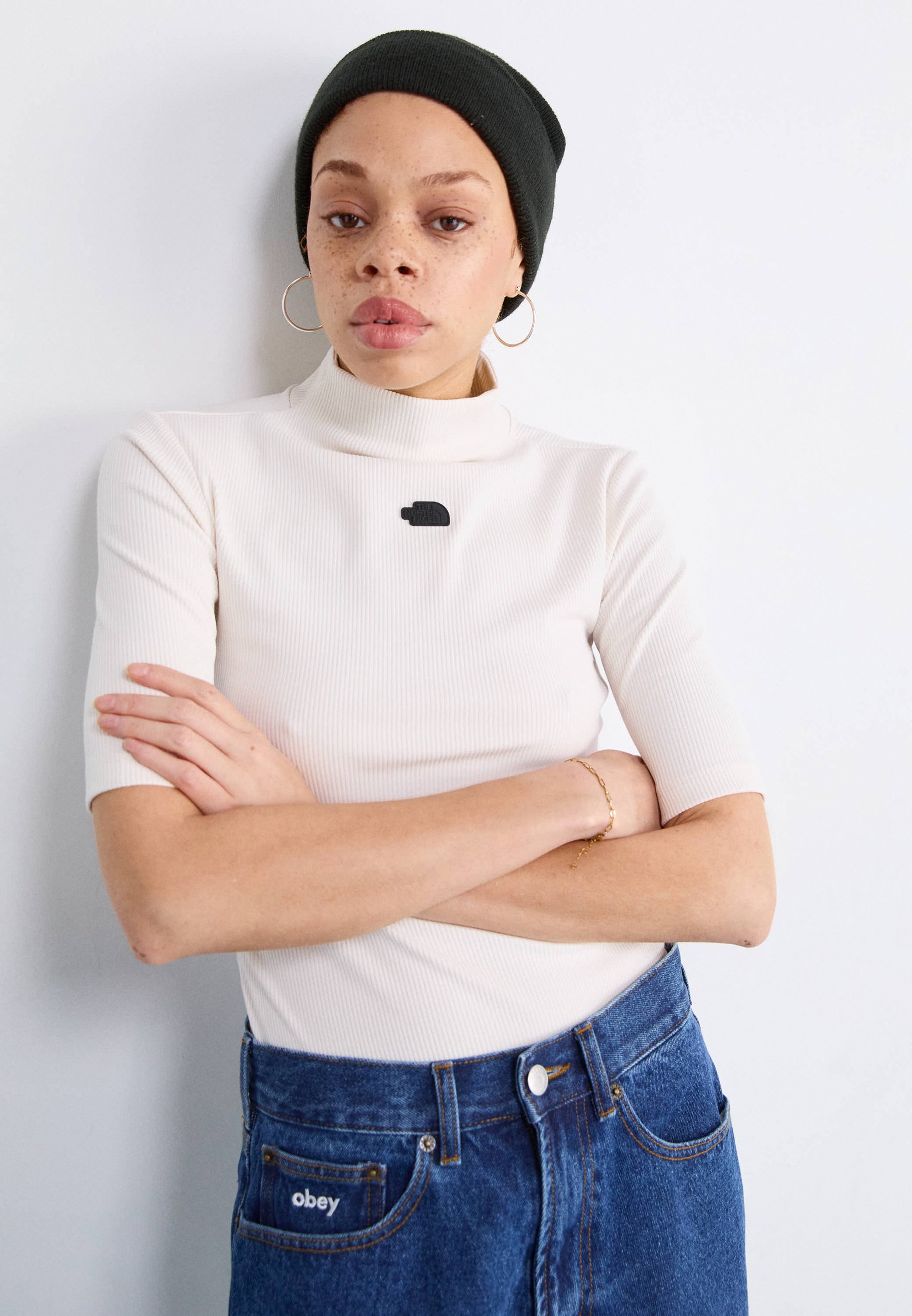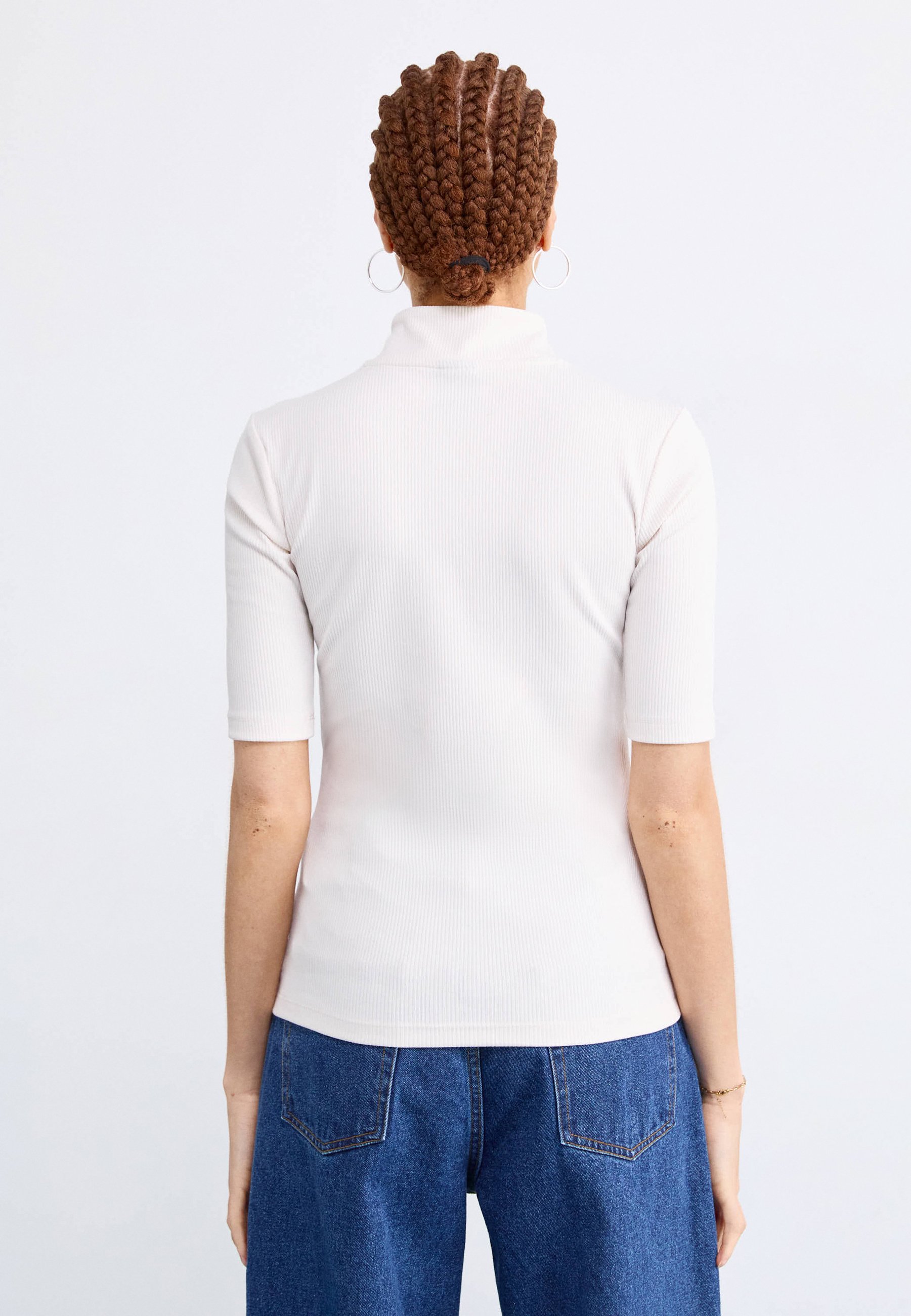 MOCK NECK SLIM TEE – Basic T-shirt – white dune