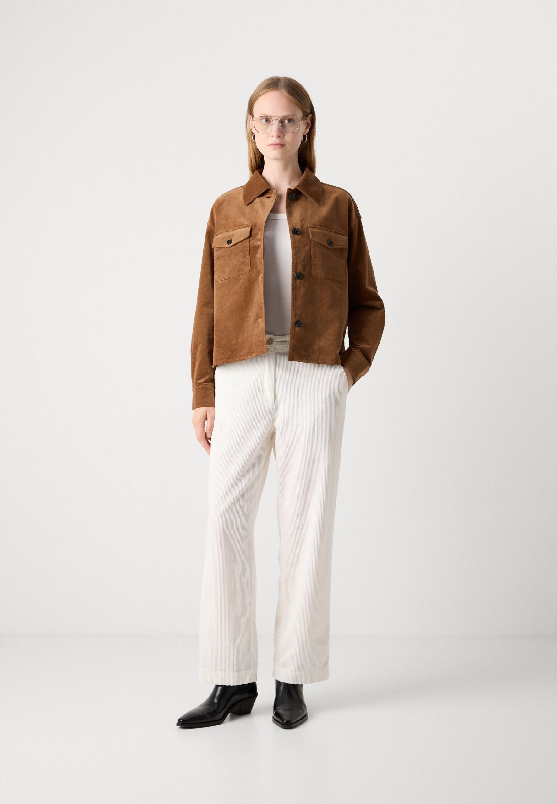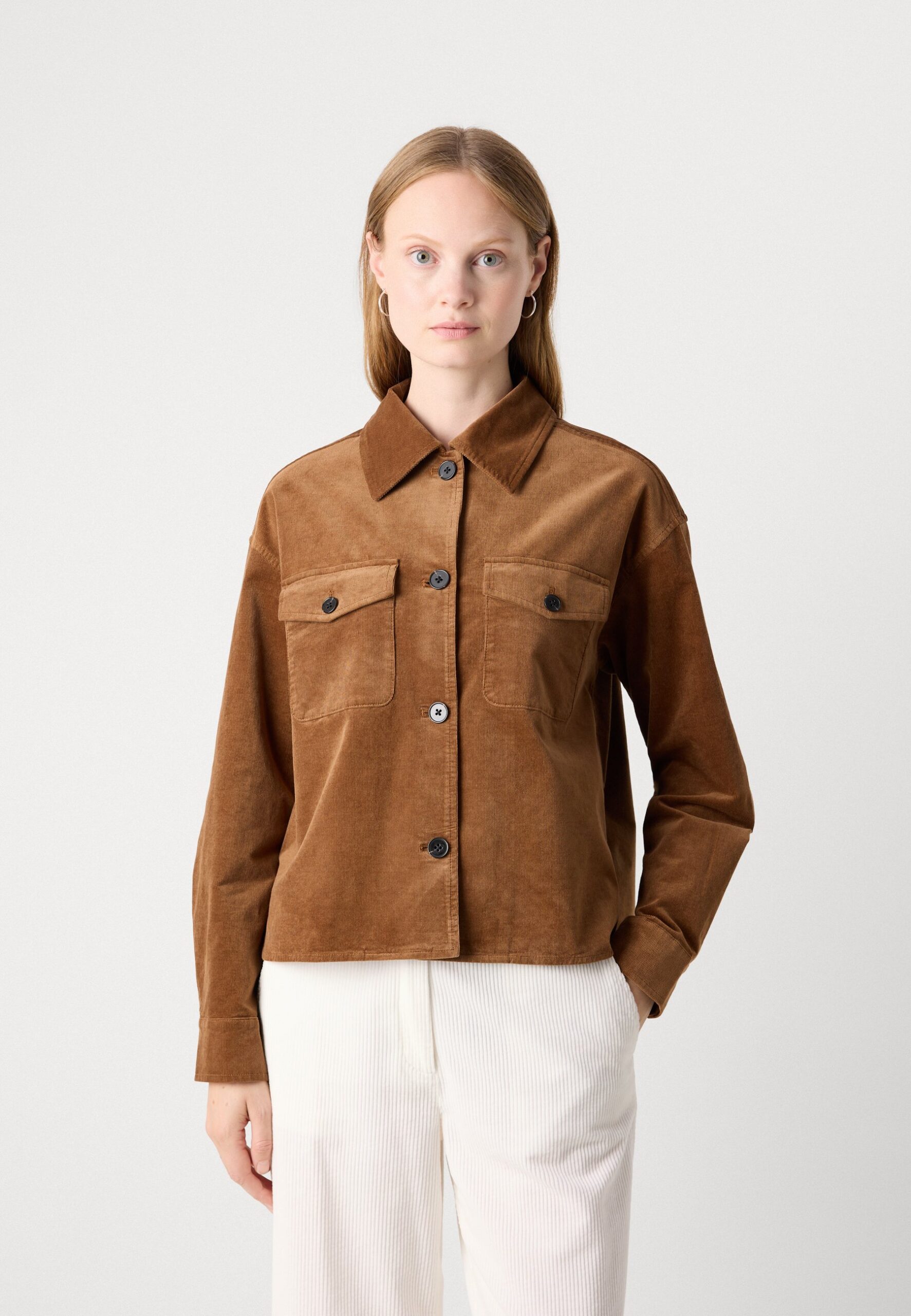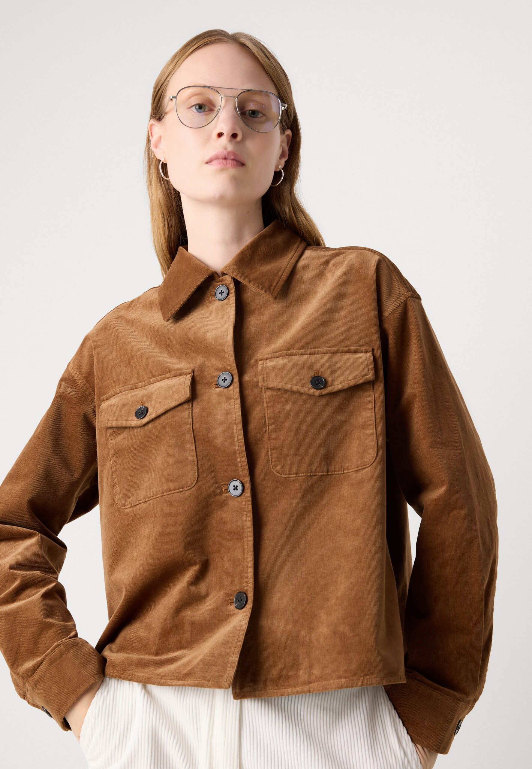 OVERSHIRT BOXY SHAPE MODERN DETAILS – Button-down blouse – warm brown