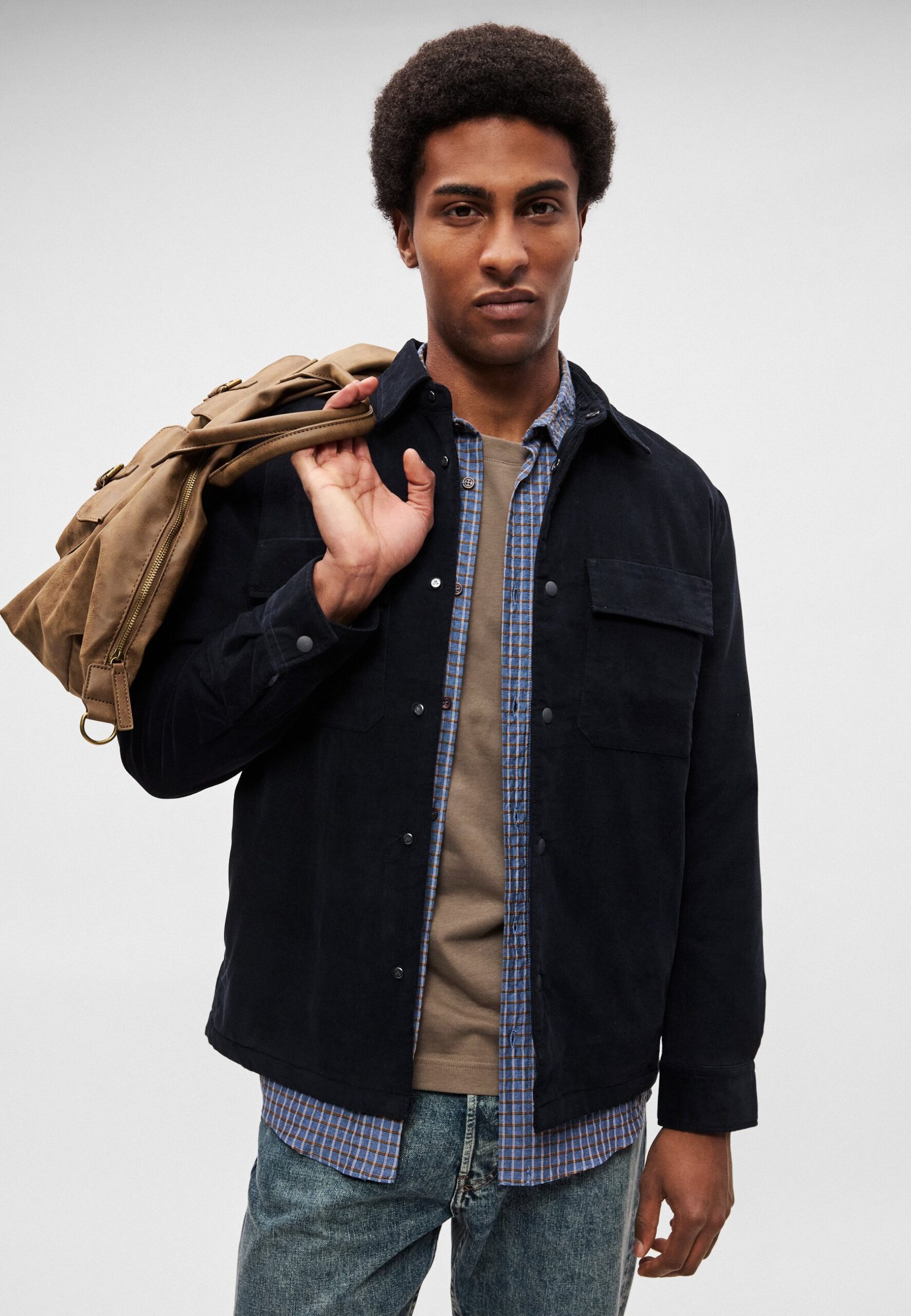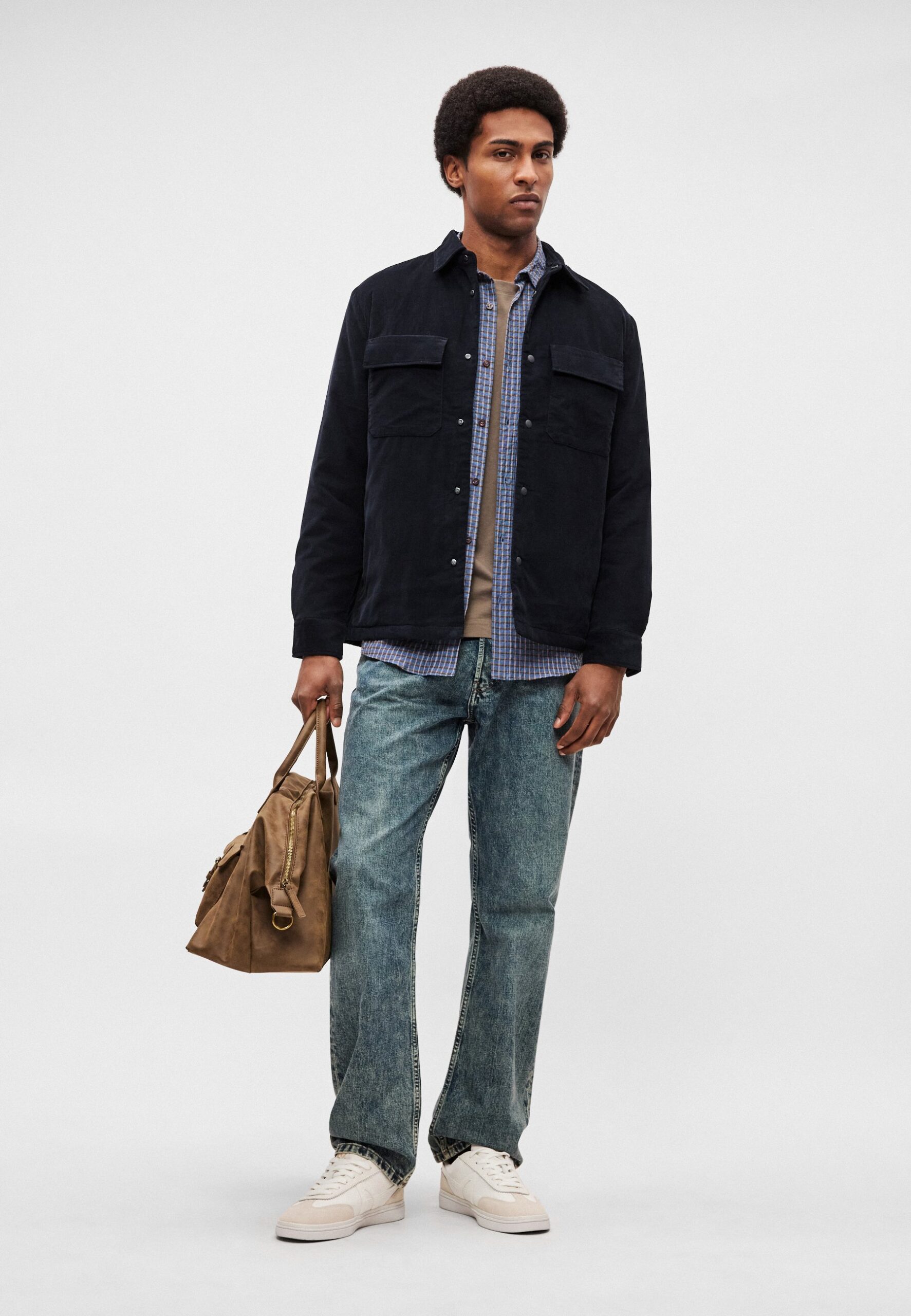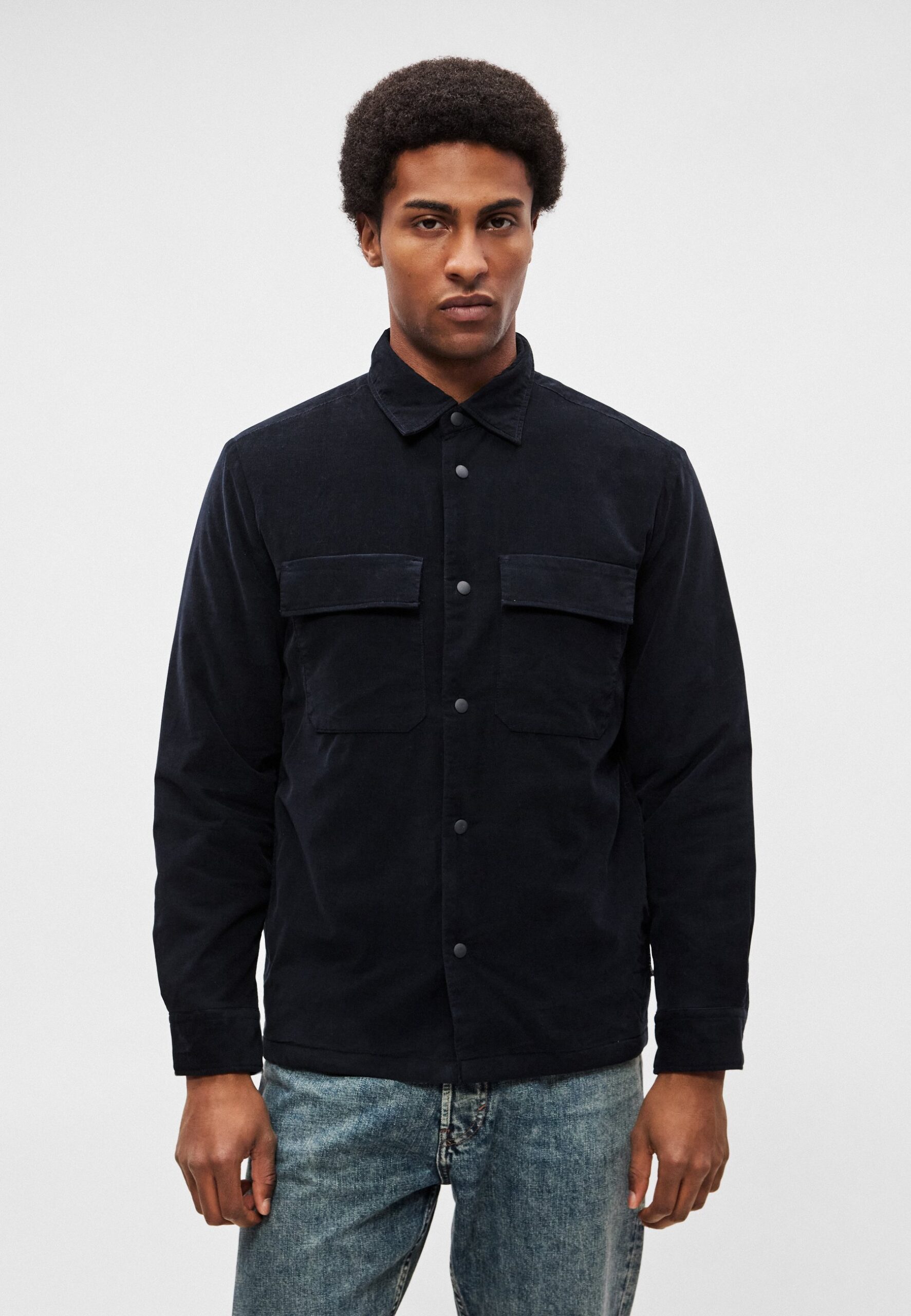 OVERSHIRT WITH PADDING FLAP AND SIDE POCKETS STRAIGHT HEM – Light jacket – dark navy