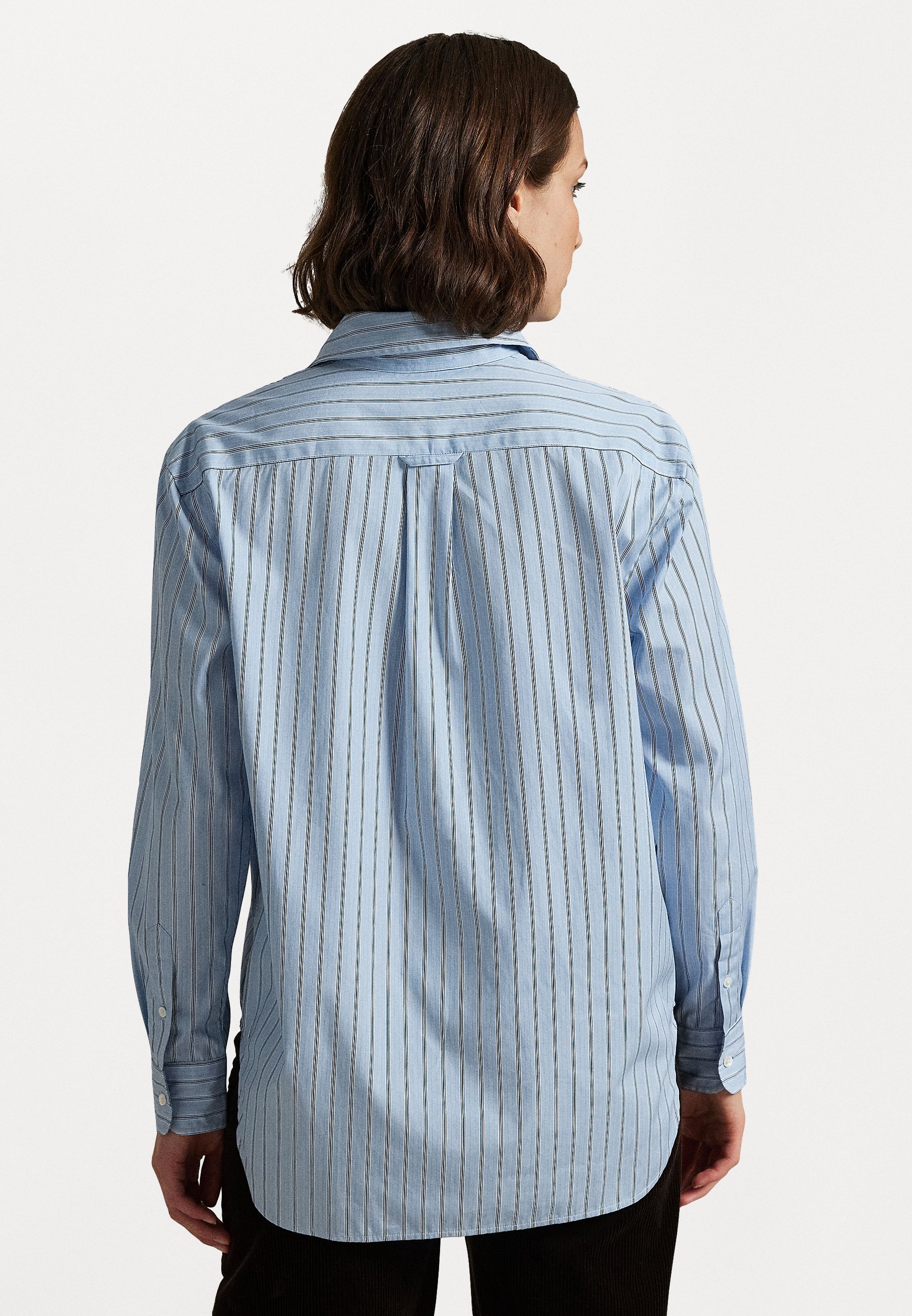 OVERSIZE FIT STRIPED COTTON SHIRT – Button-down blouse – medium blue/white