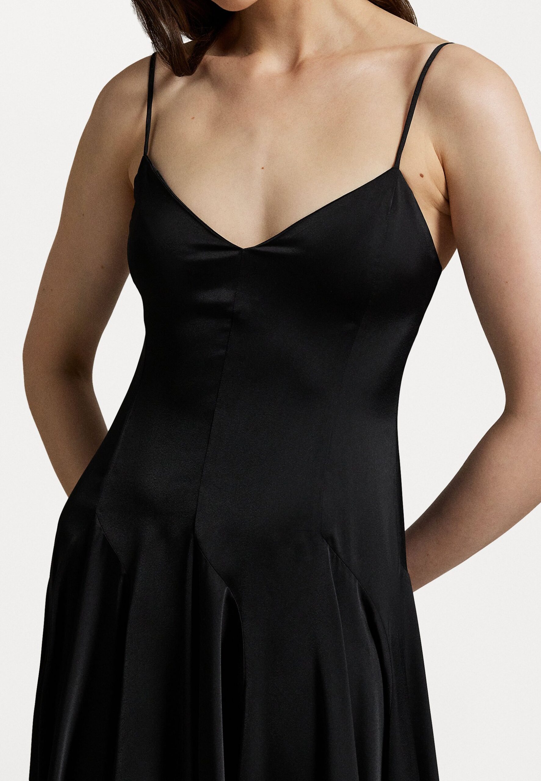 PANELED SATIN DRESS – Day dress – black