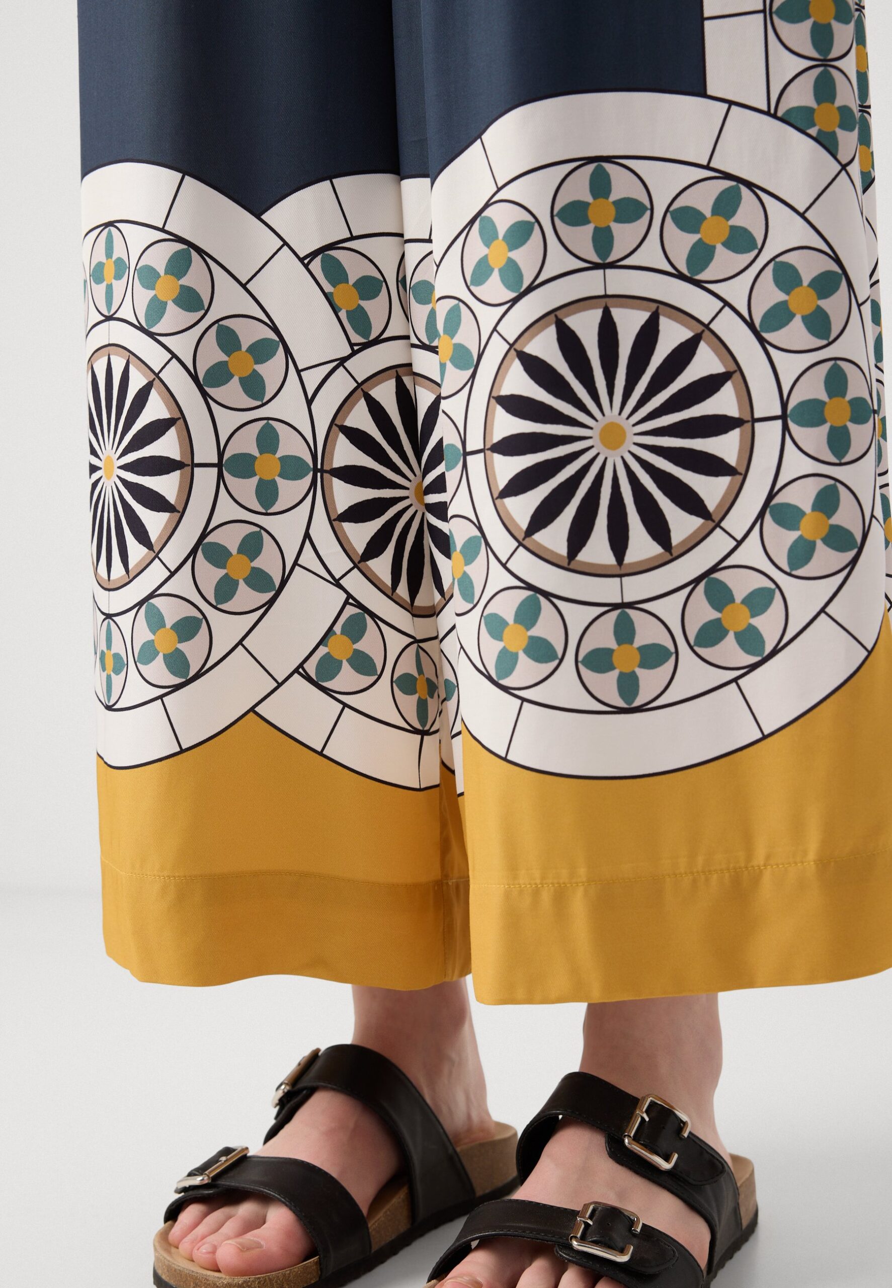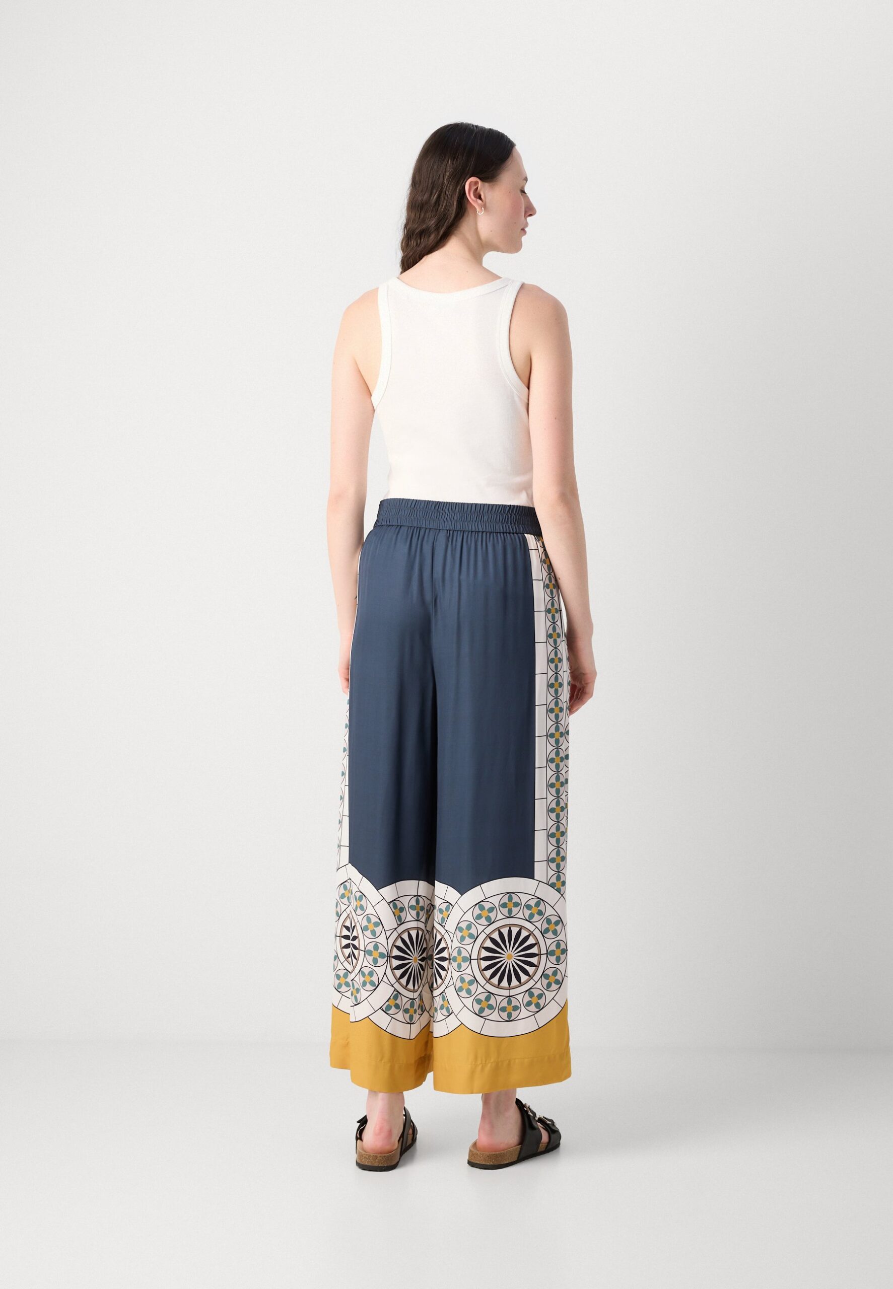 PANTS ELASTIC WAISTBAND WIDE LEG PRINTED – Trousers – multi/muted blue