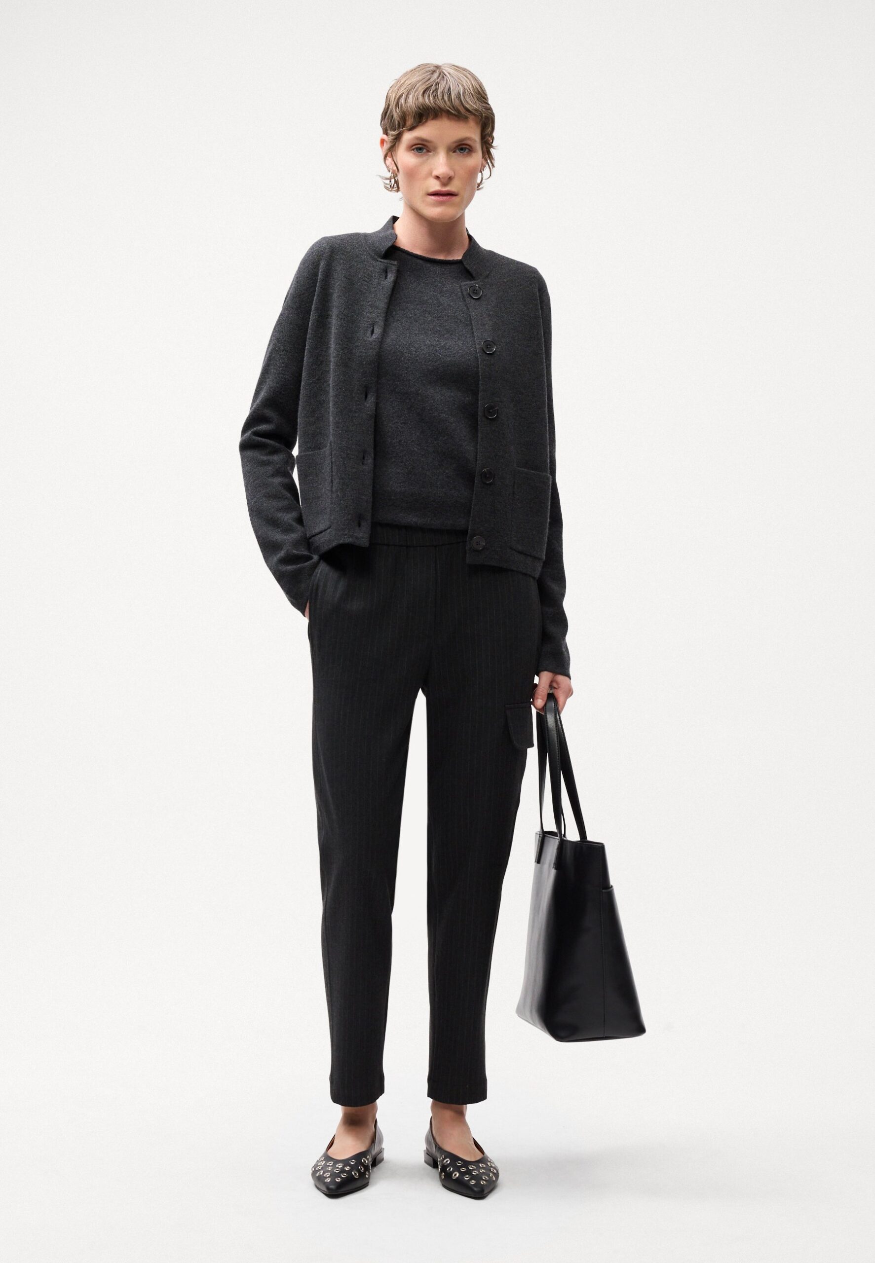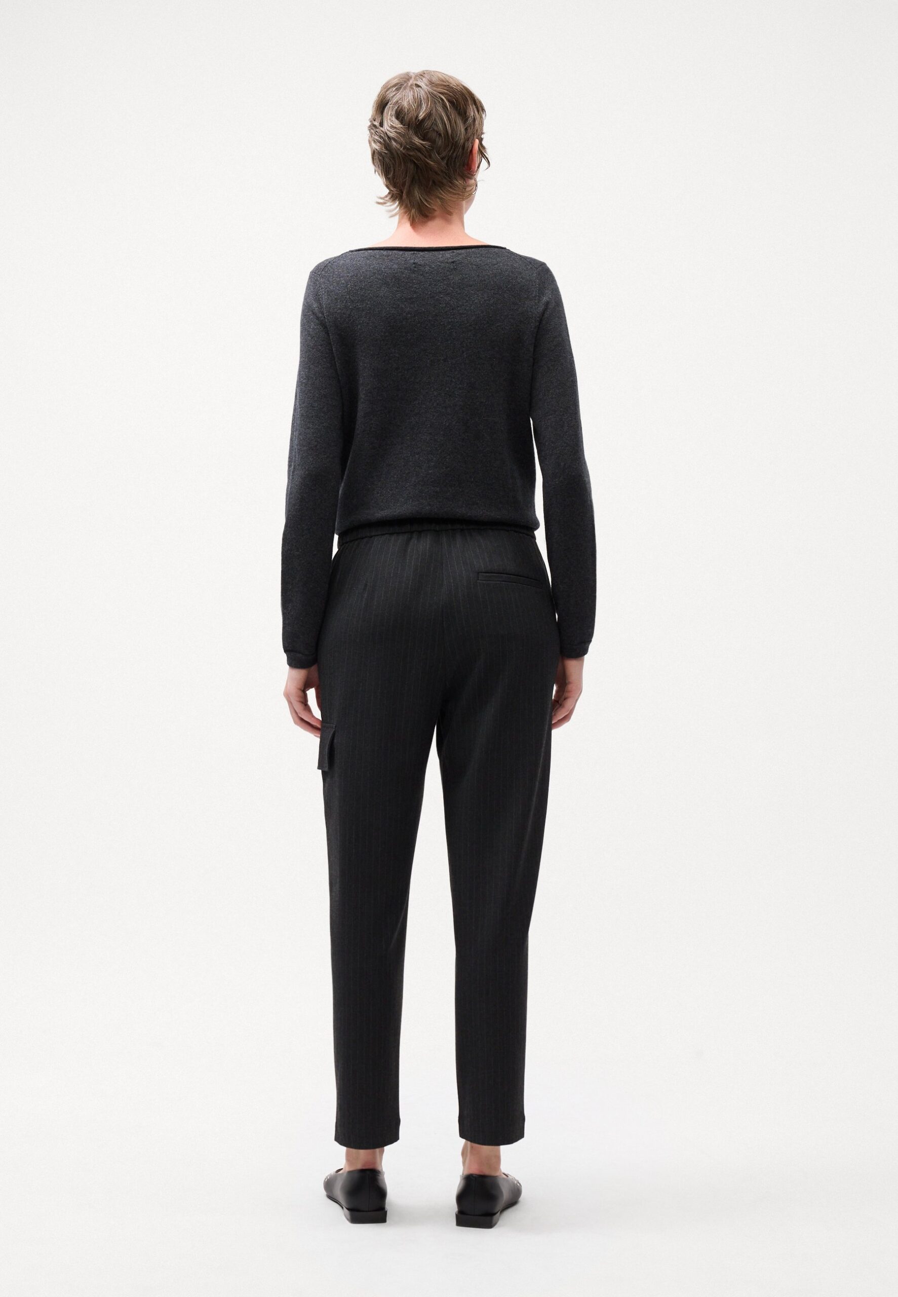 PANTS JOGGER STYLE SLIM FIT ELASTIC WAISTBAND POCKET DETAIL – Trousers – night grey melange