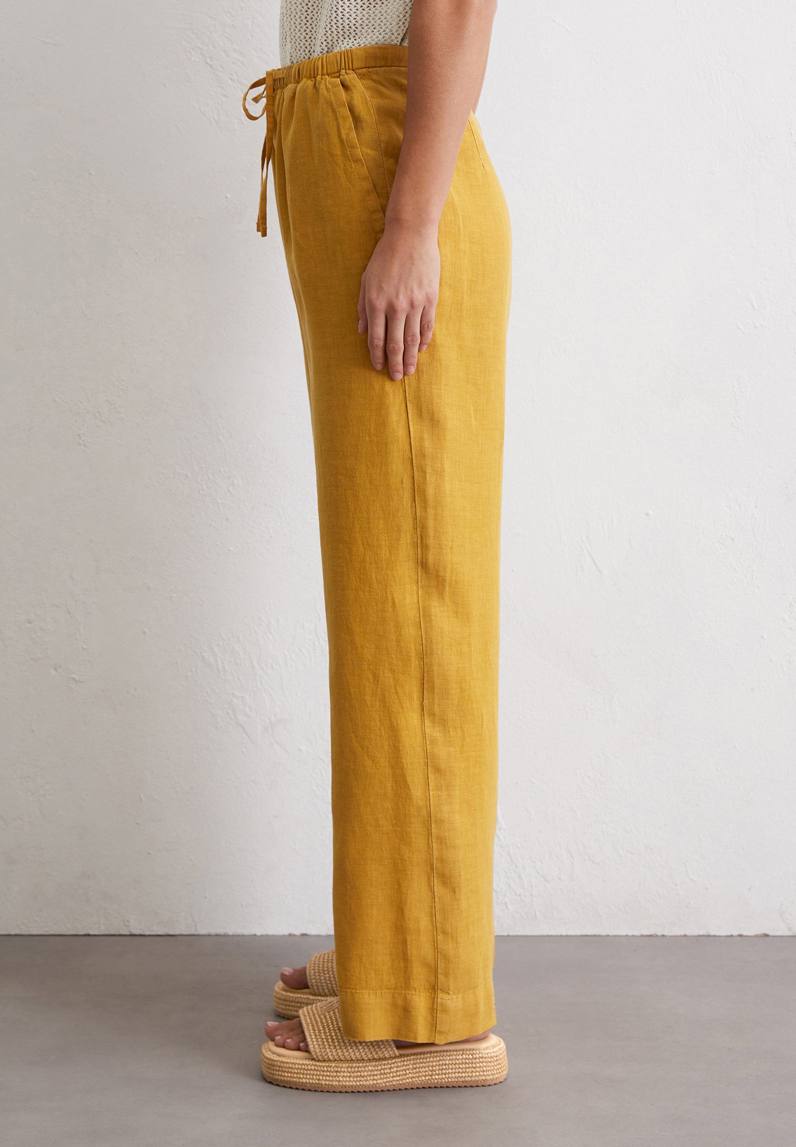 PANTS JOGGER STYLE STRAIGHT LEG MEDIUM WAIST DRAWSTRING AT WAIST – Trousers – golden yellow