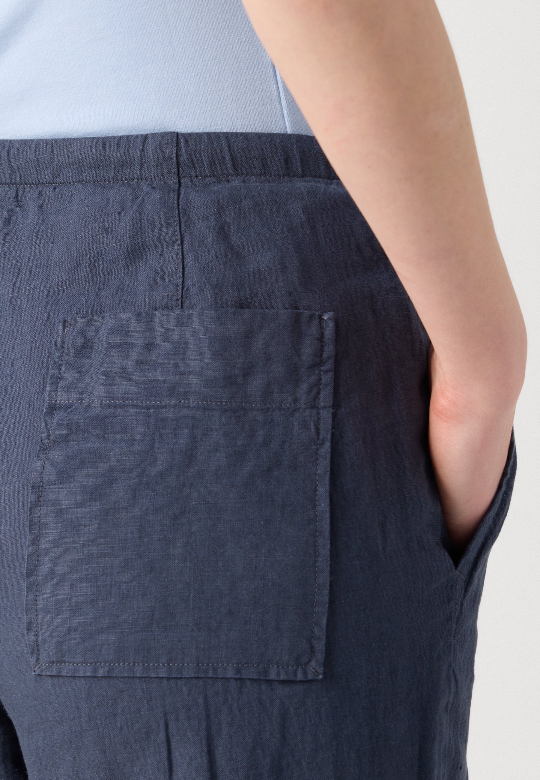 PANTS, JOGGER STYLE STRAIGHT LEG MEDIUM WAIST DRAWSTRING AT WAIST – Trousers – muted blue
