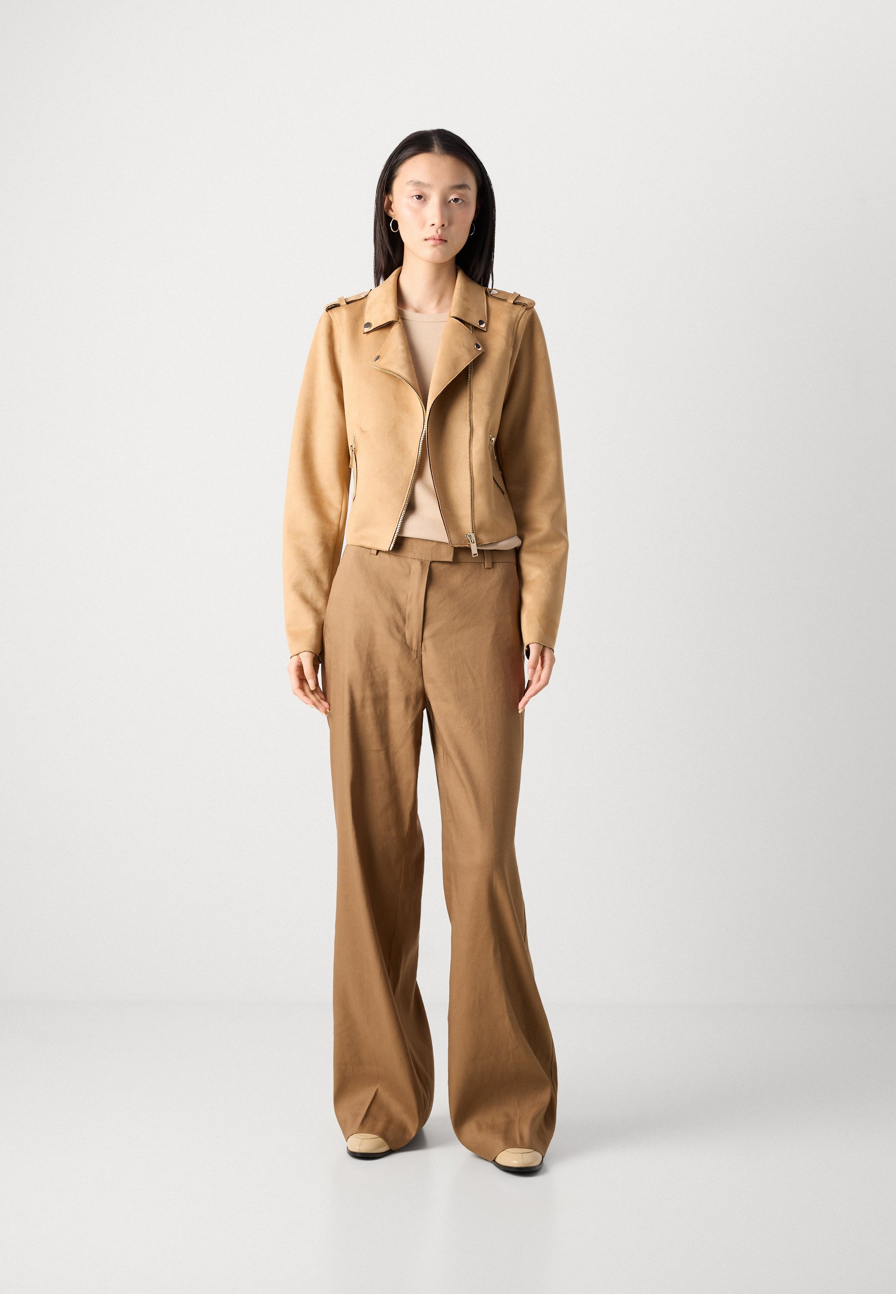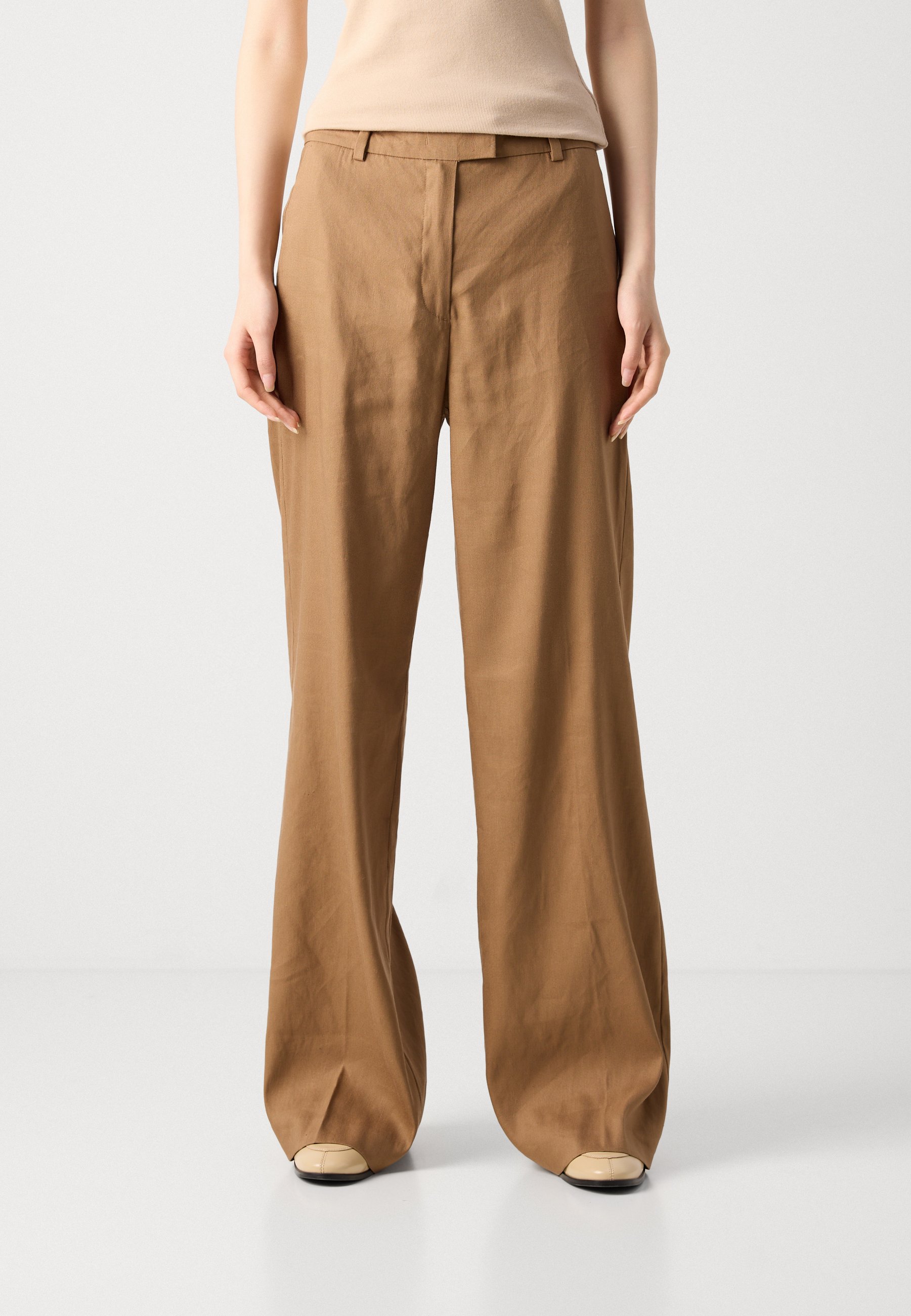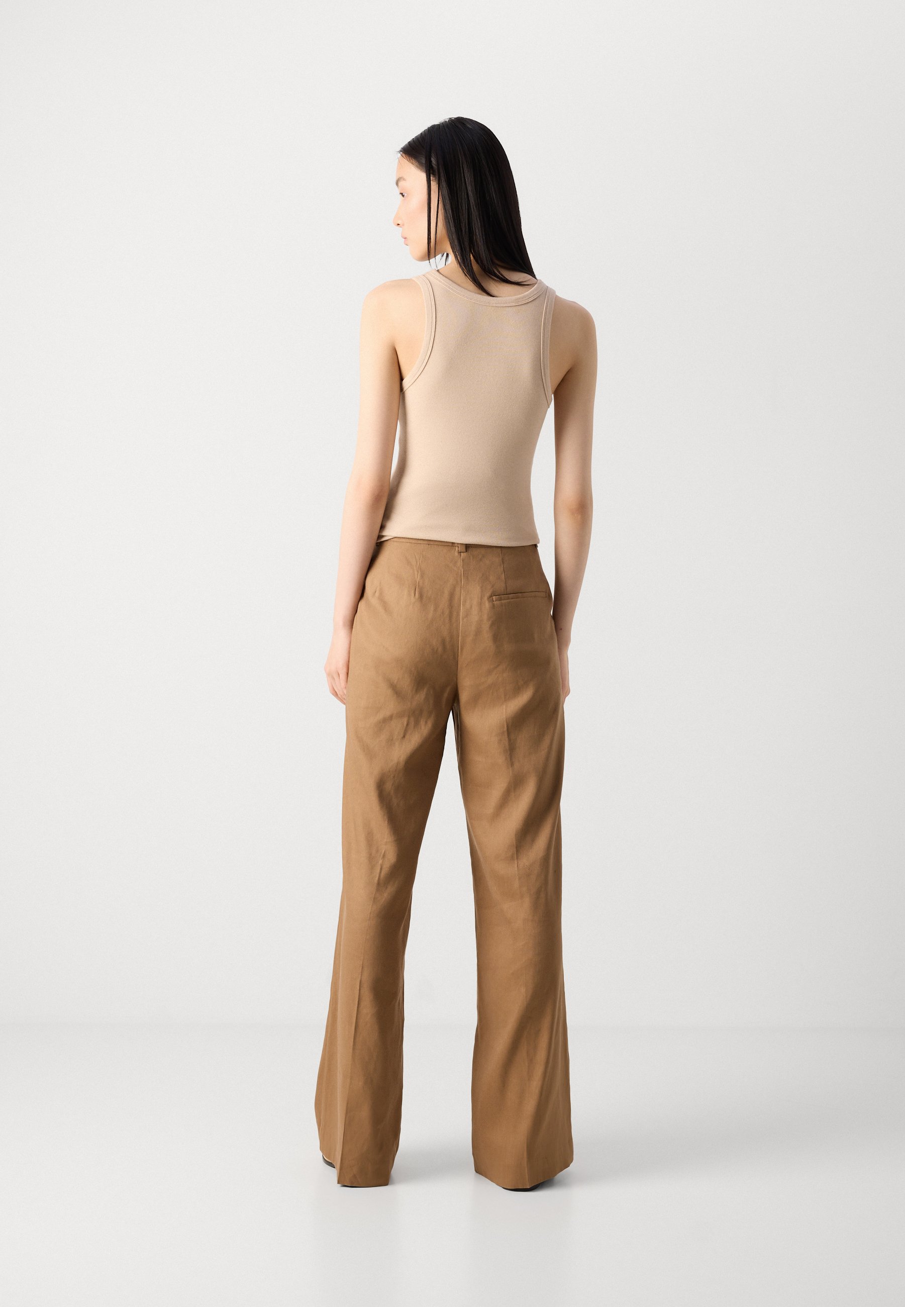 PANTS LONG LEG FIT AND FLARE SHAPE TAILORED LOOK WELT POCKET AT BACK – Trousers – dusty brown
