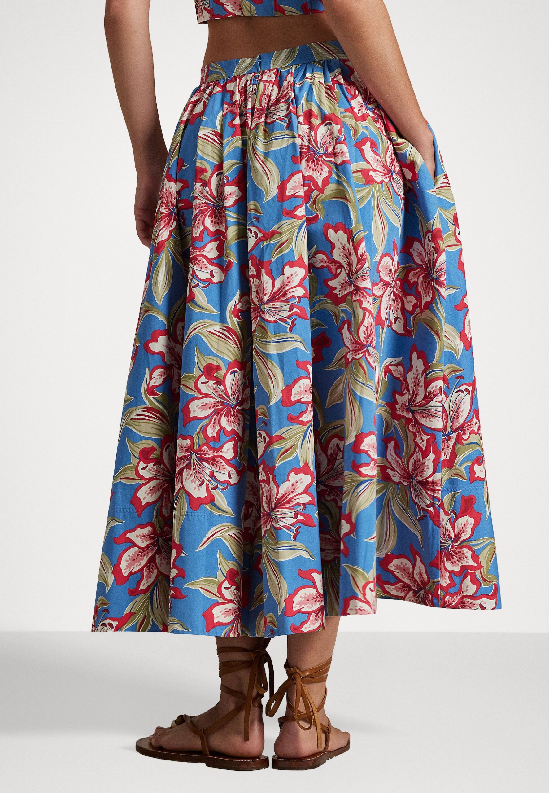 PARTED COTTON POPLIN KNEE FULL – A-line skirt – royal