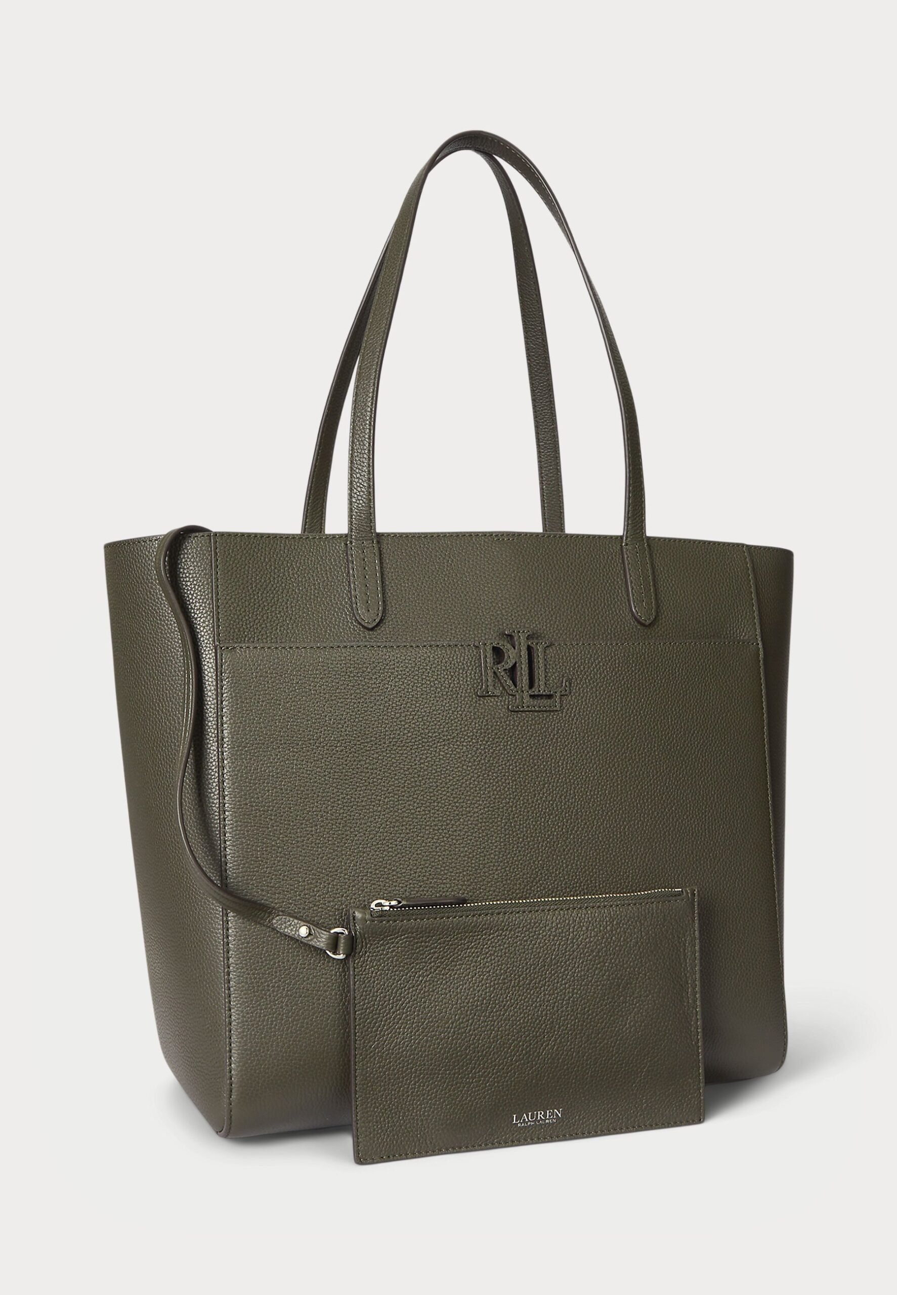 PEBBLED LEATHER LARGE CAMERYN TOTE BAG – Tote bag – dark olive