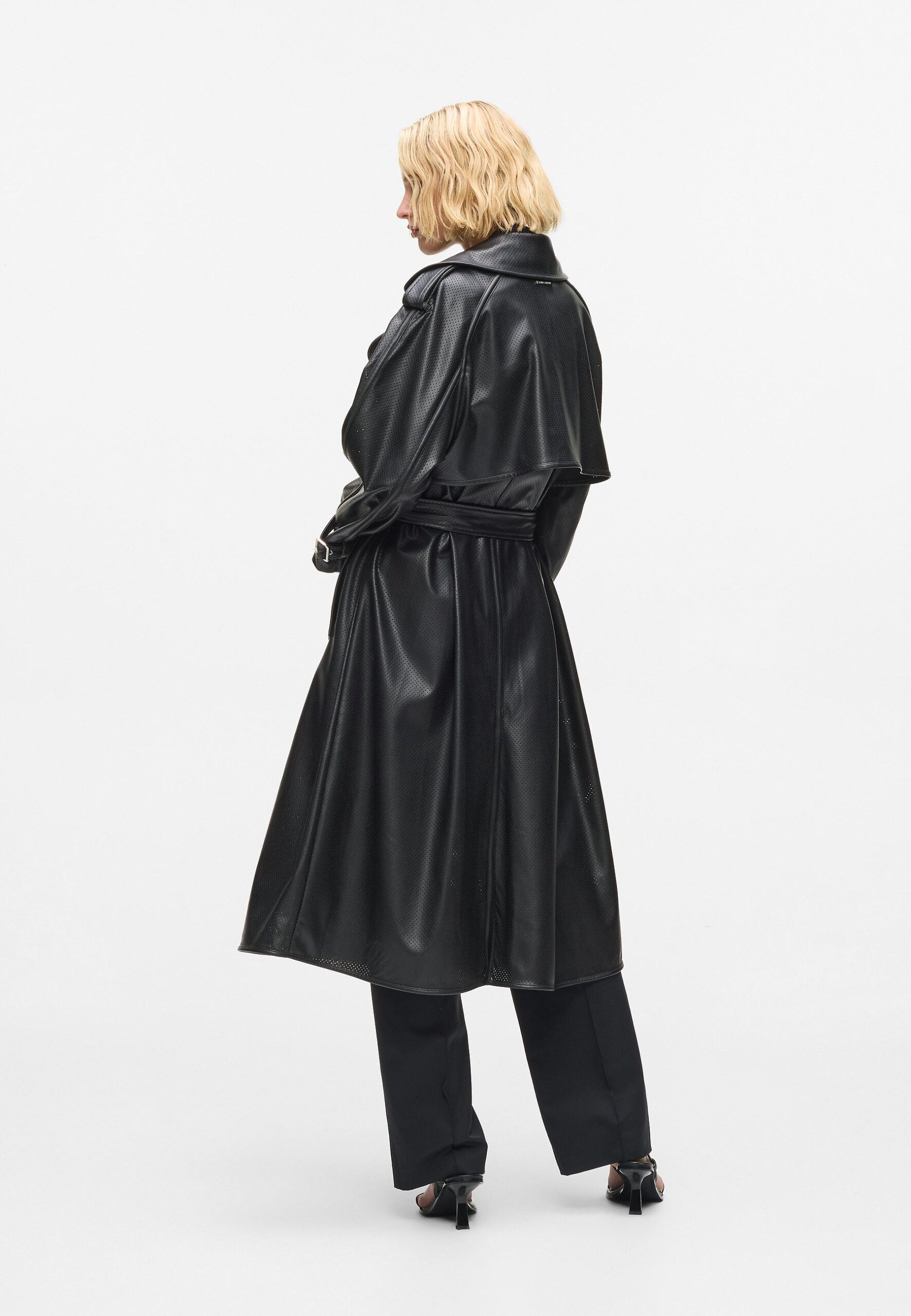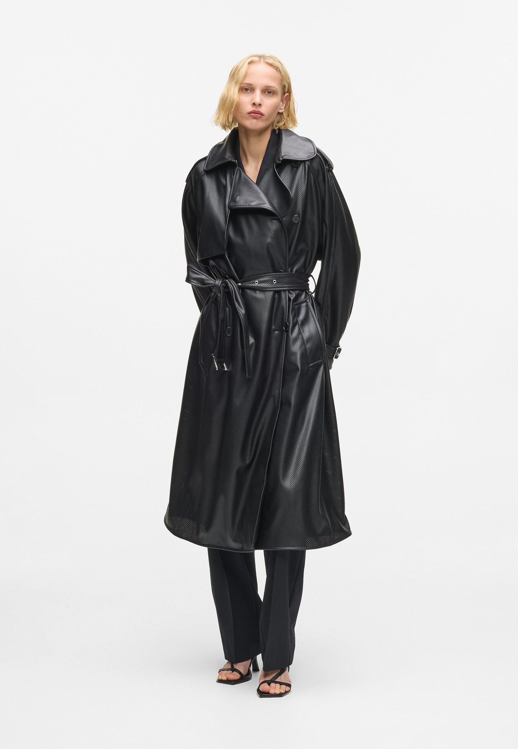 PERFORATED TRENCH – Trenchcoat – black