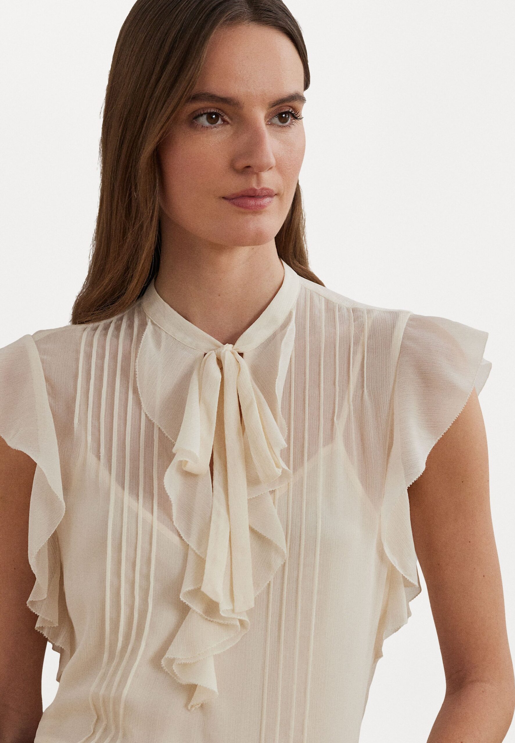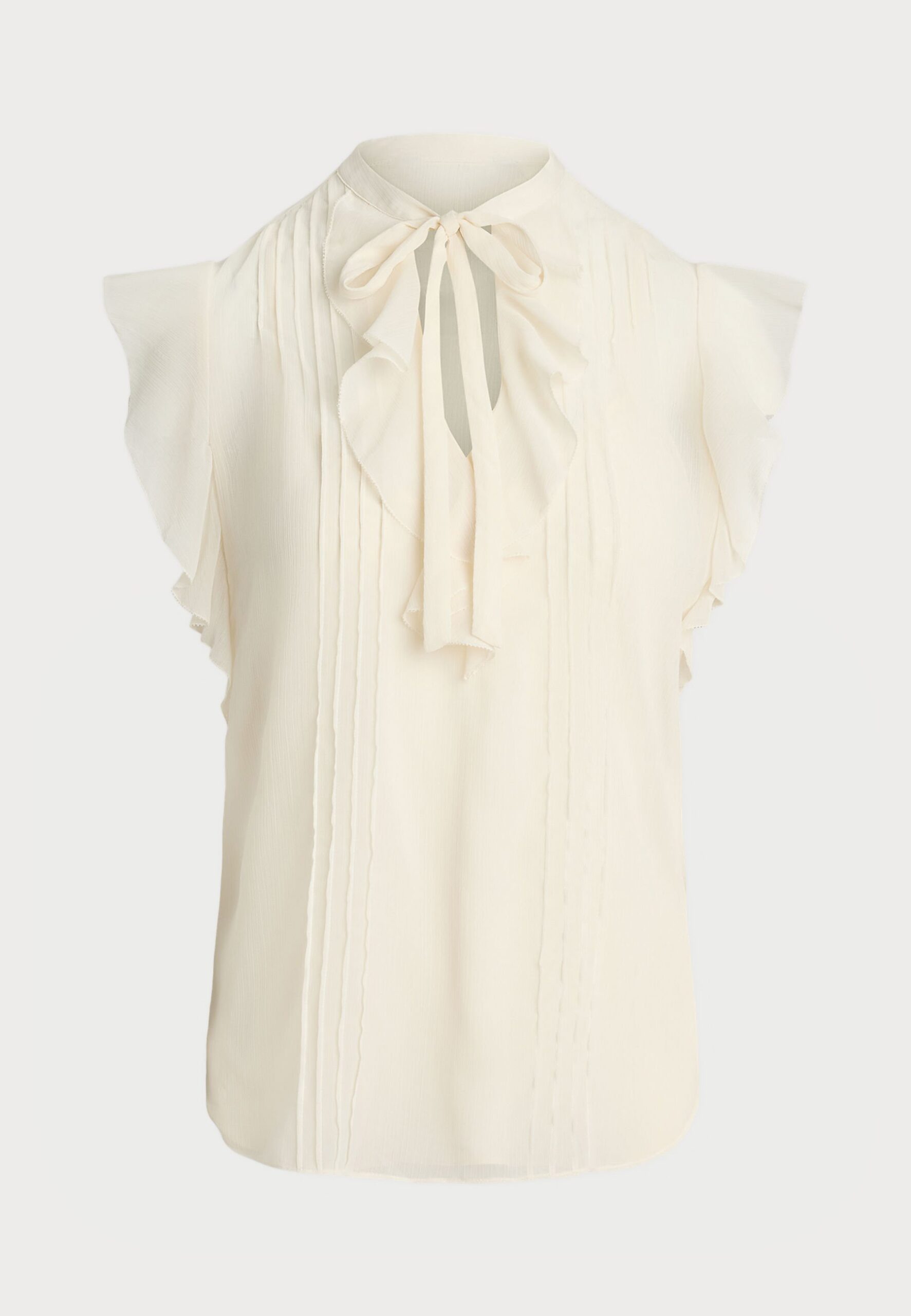 PINTUCKED GEORGETTE TIE NECK BLOUSE – Blouse – mascarpone cream
