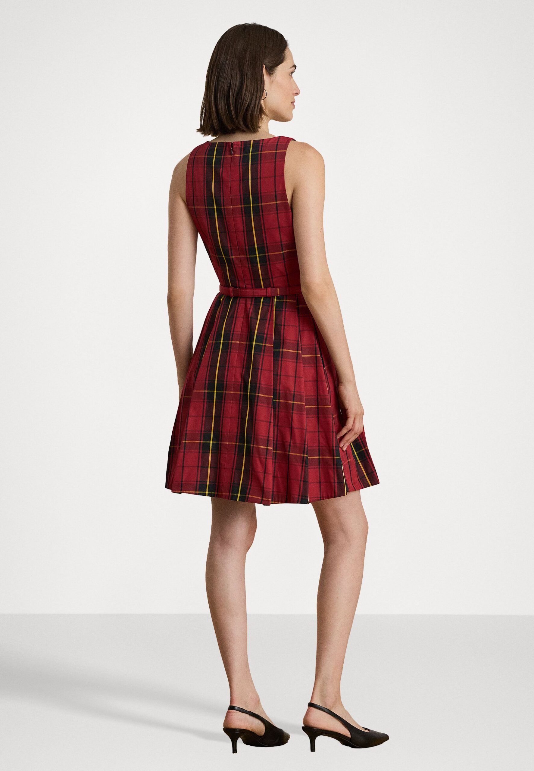 PLAID BELTED TAFFETA COCKTAIL DRESS – Day dress – black/red