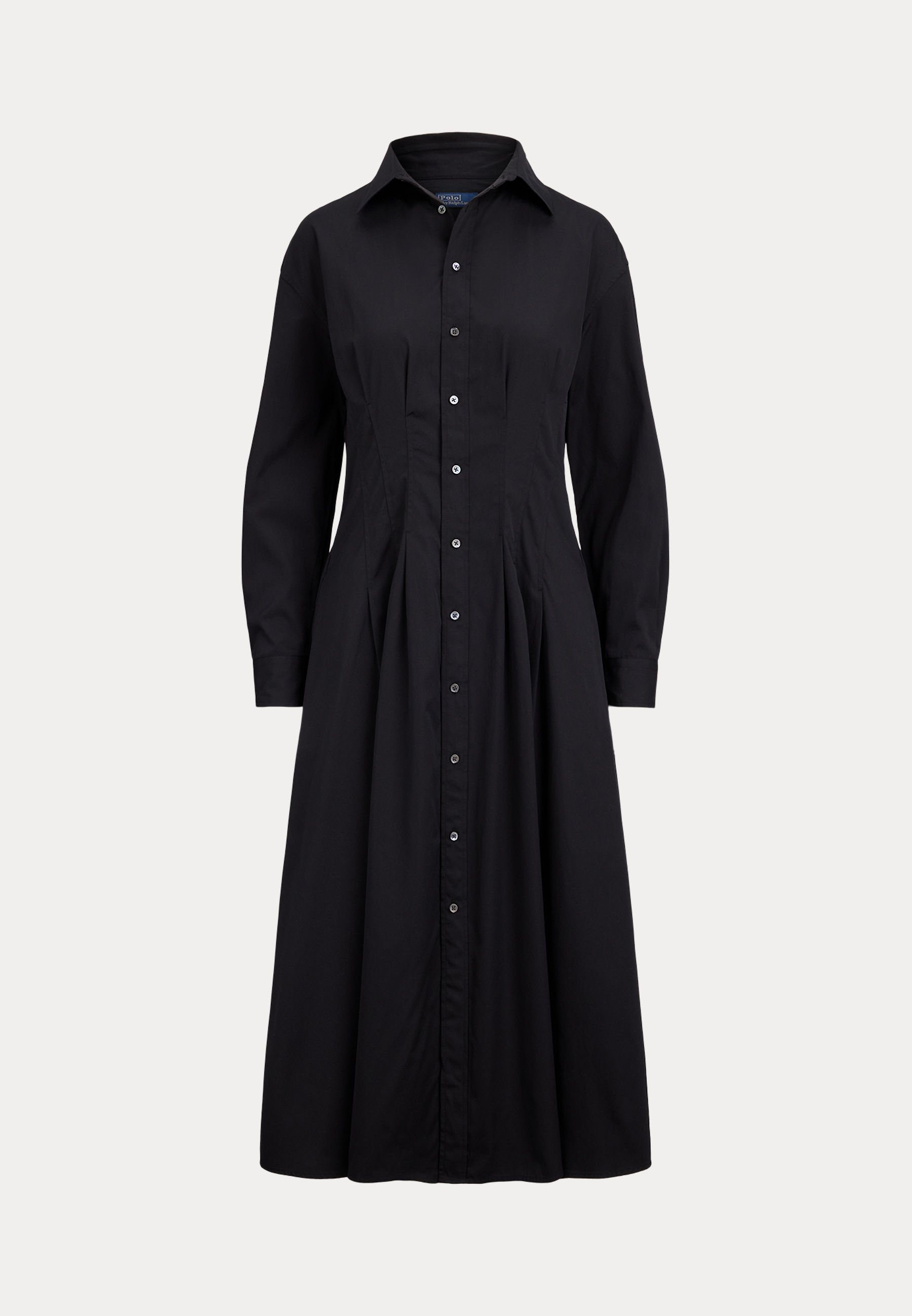 PLEATED COTTON SHIRTDRESS – Shirt dress – polo black
