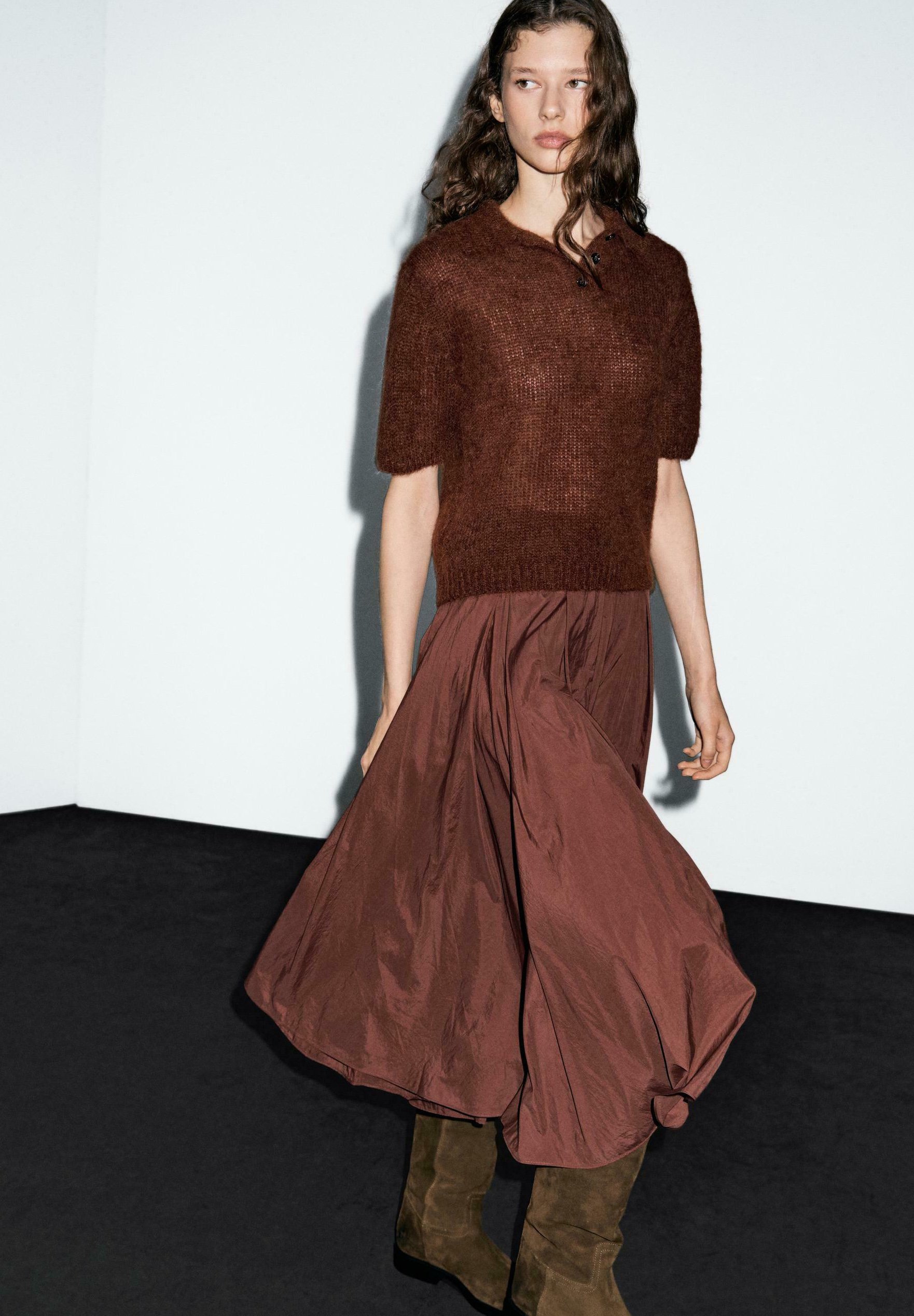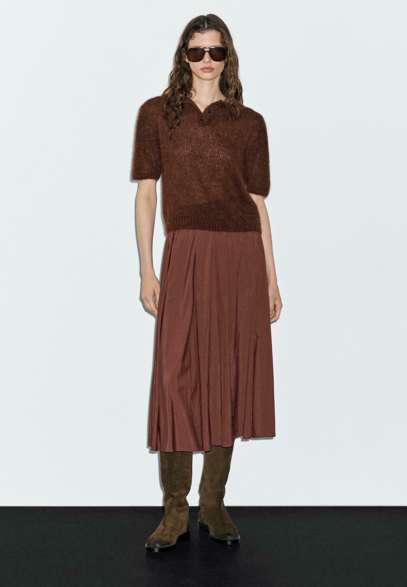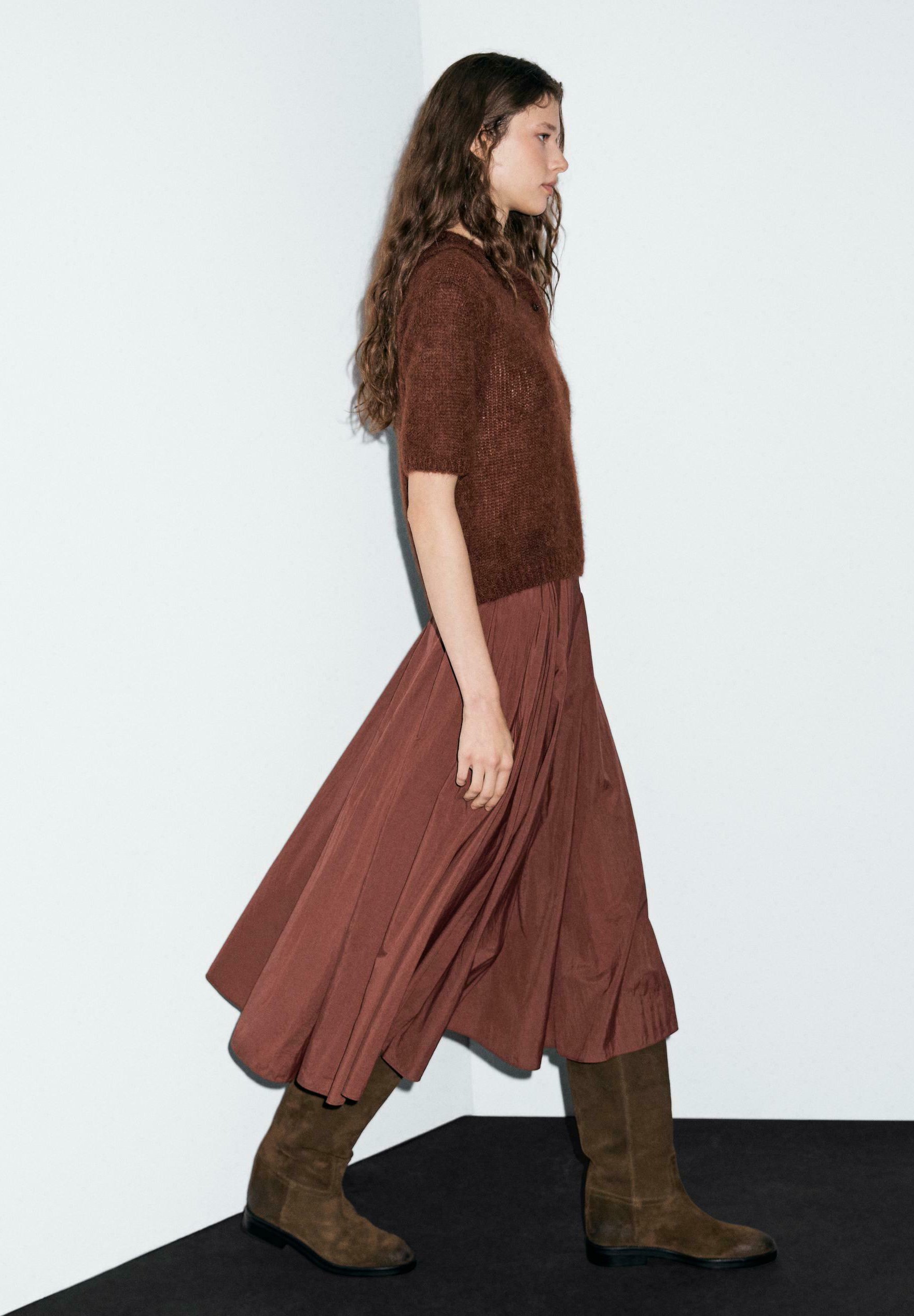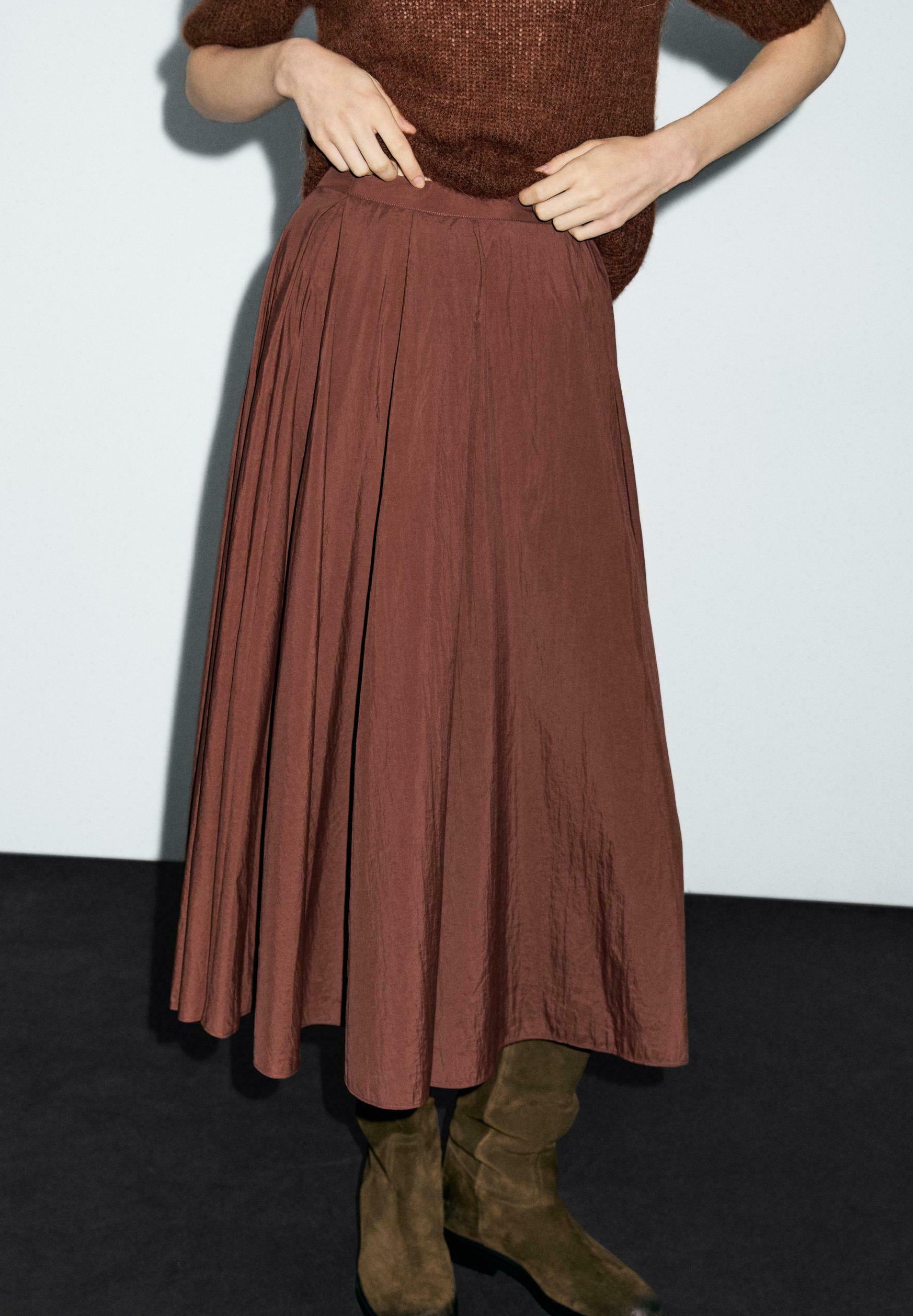 PLEATED TECHNICAL MIDI – A-line skirt – bordeaux