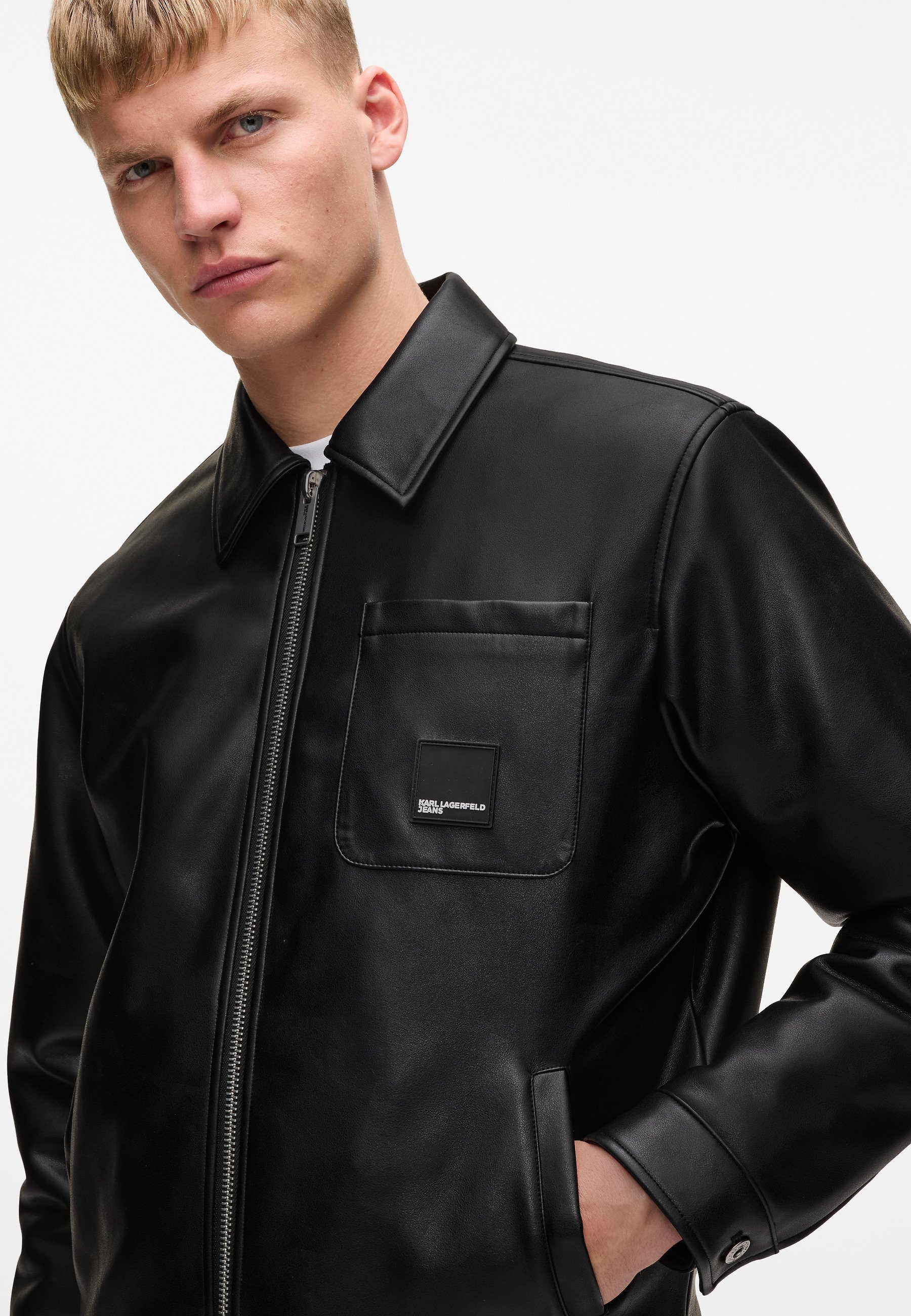 POCKET LOGO – Faux leather jacket – black