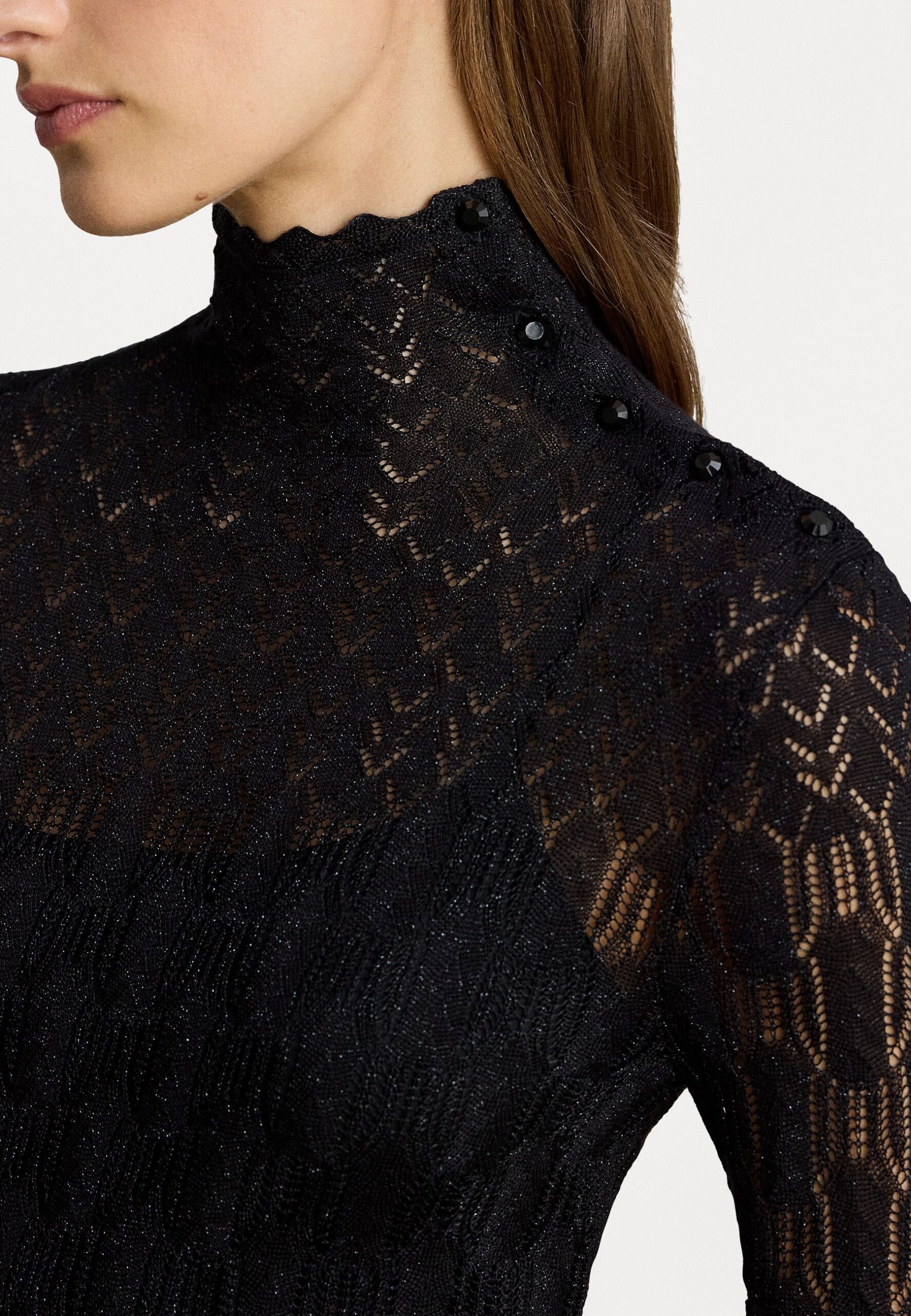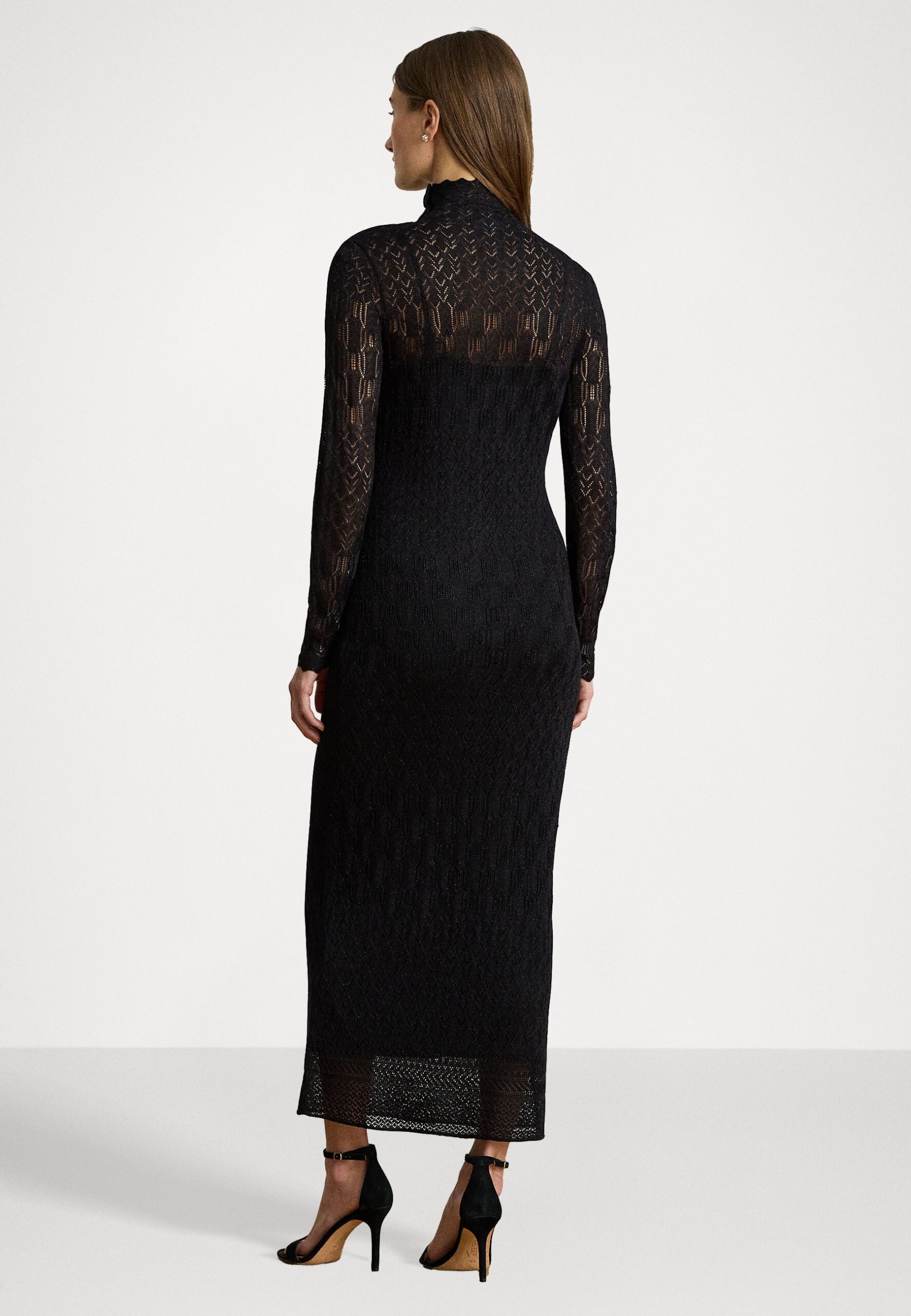 POINTELLE-KNIT TURTLENECK SWEATER DRESS – Day dress – black