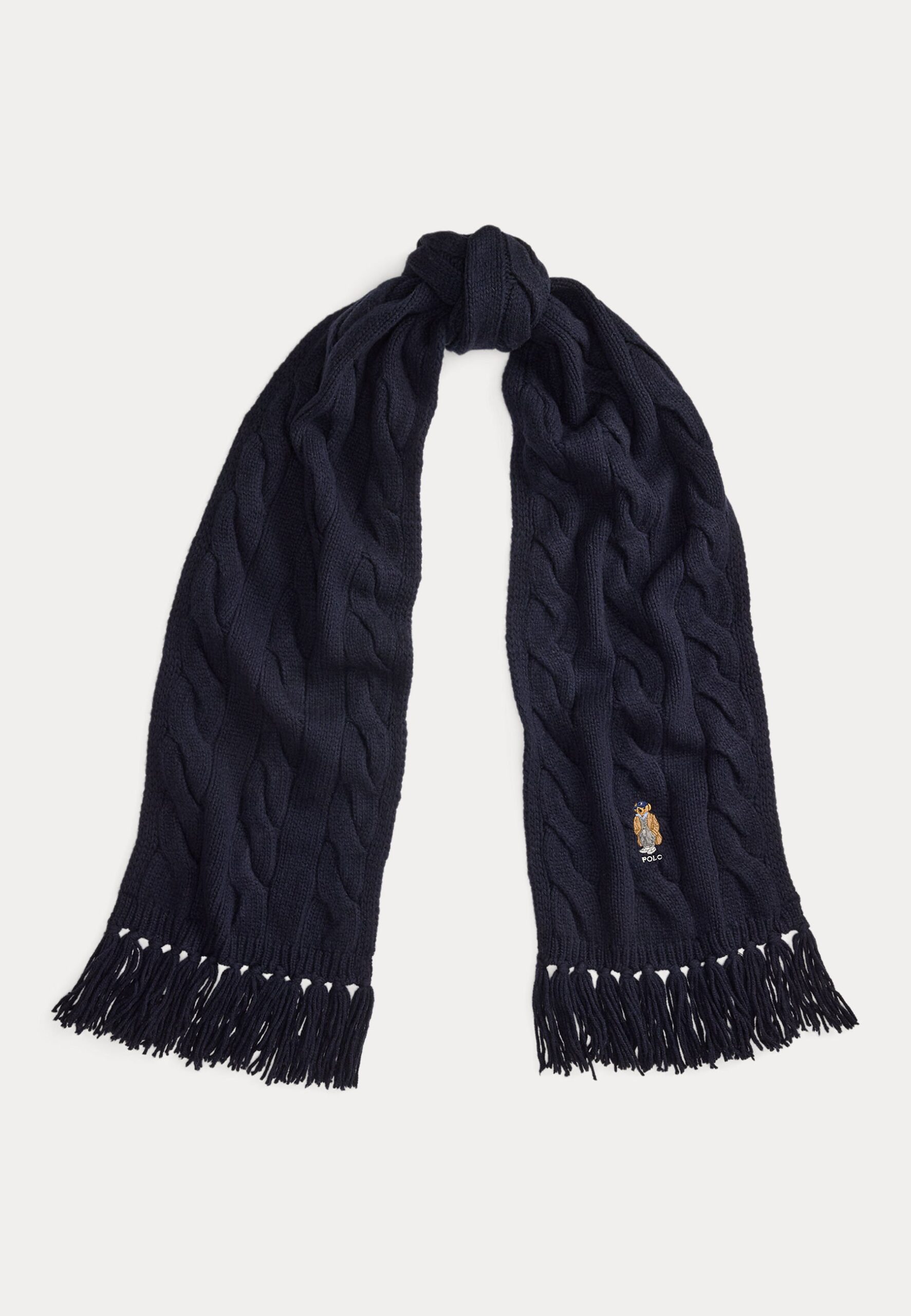 POLO BEAR CABLE KNIT WOOL BLEND SCARF – Scarf – navy