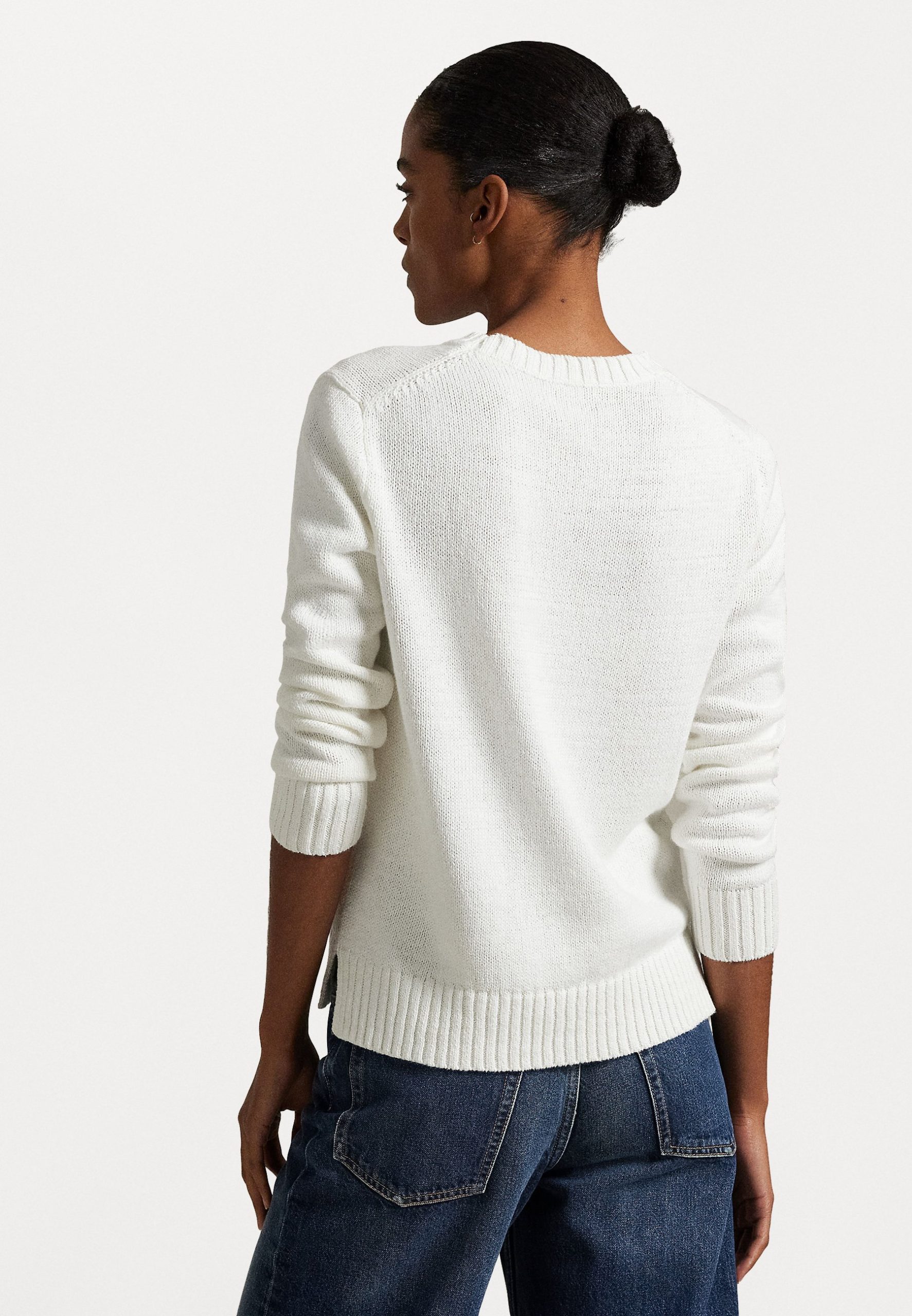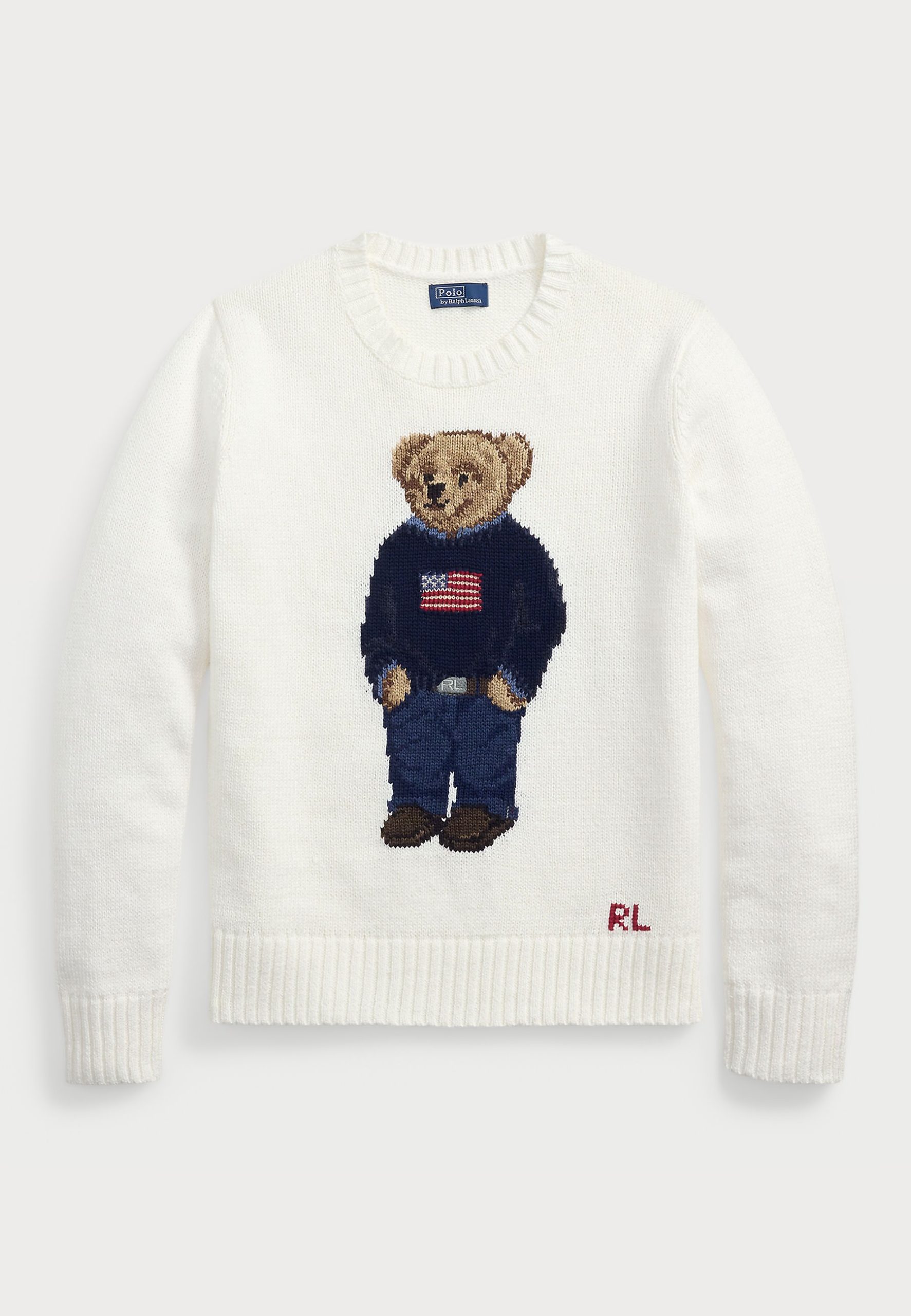 POLO BEAR LINEN-COTTON CREWNECK SWEATER – Jumper – deckwash white