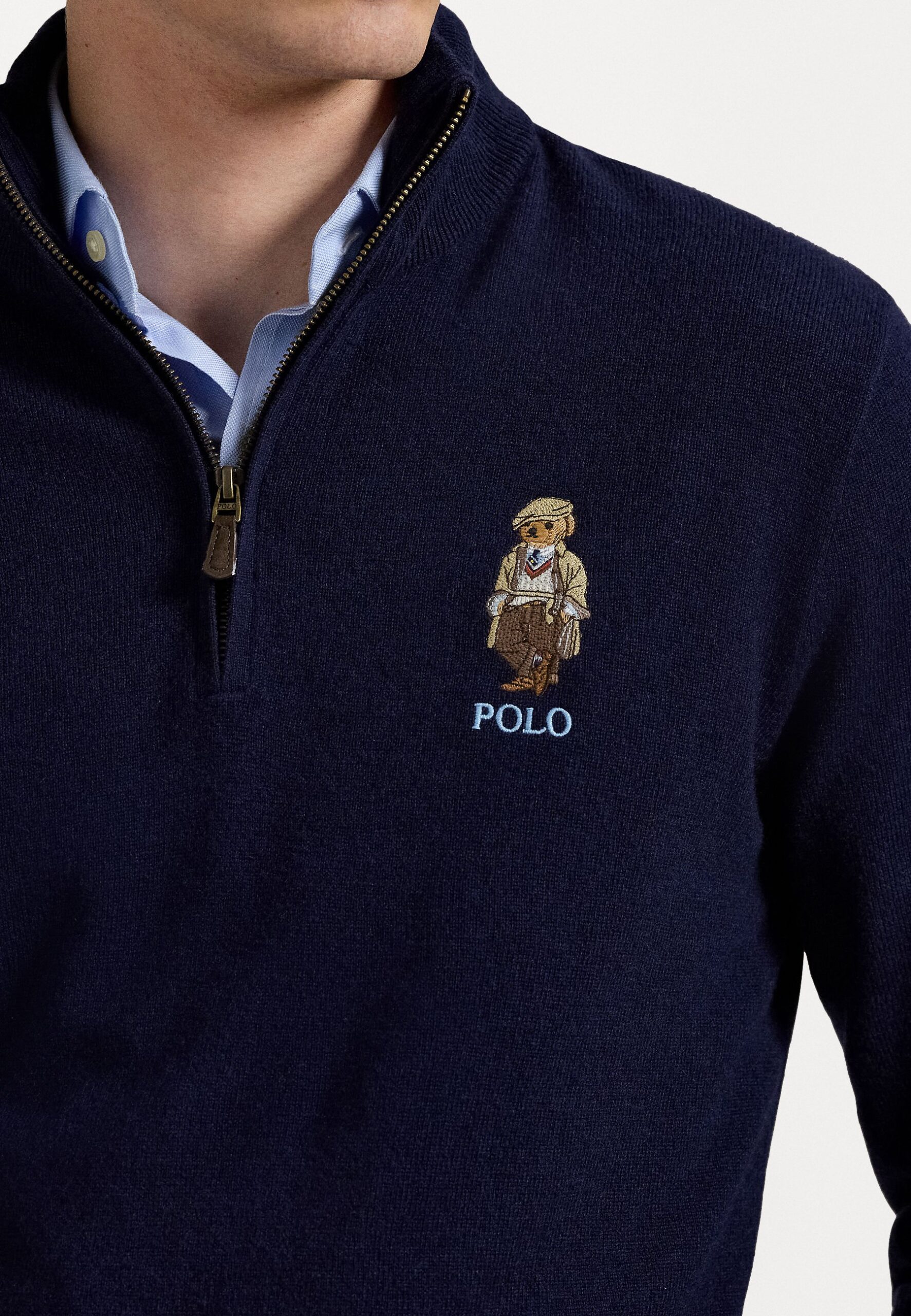 POLO BEAR WOOL QUARTER ZIP SWEATER – Jumper – hunter navy