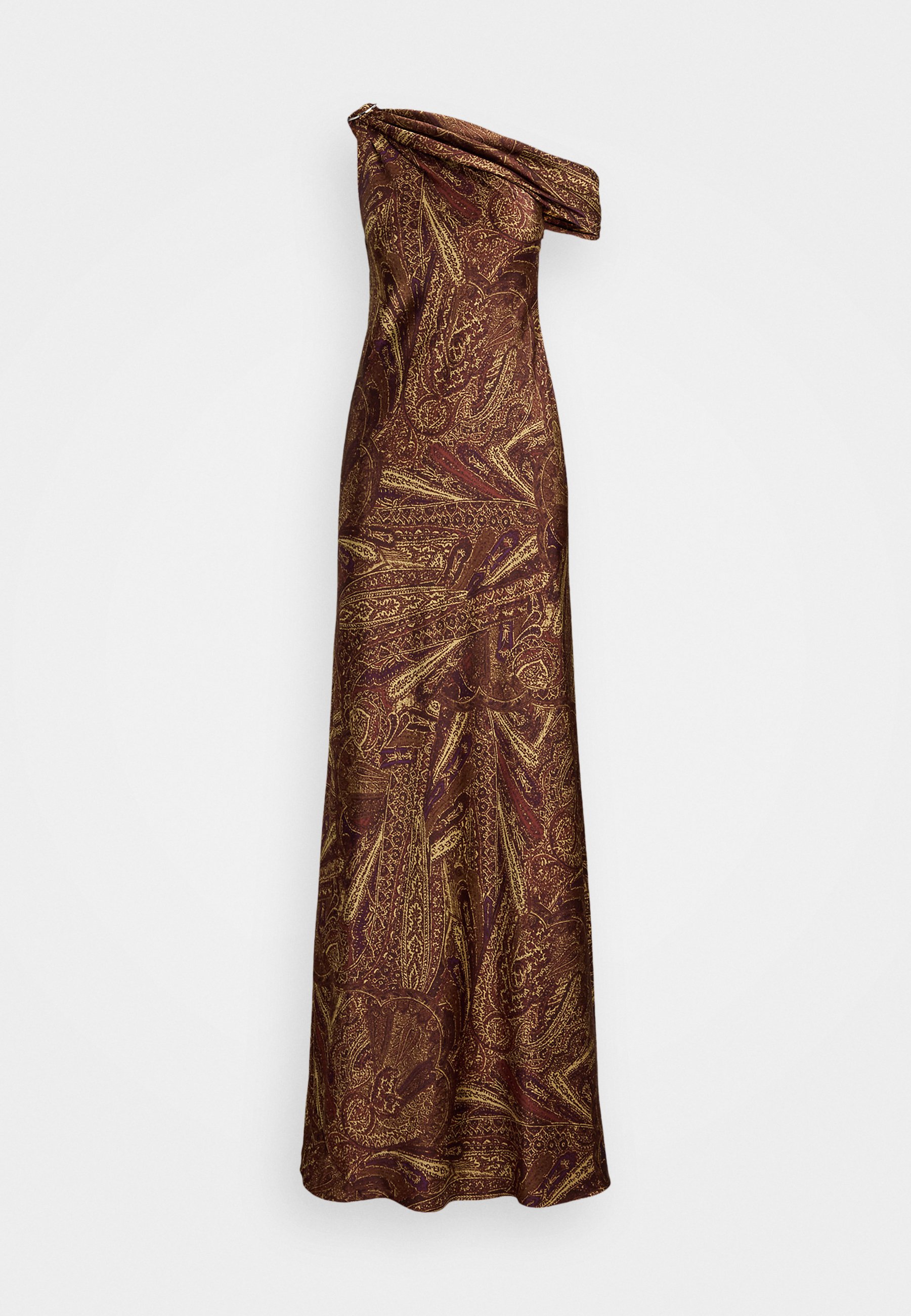 PRINT BUCKLE TRIM OFF THE SHOULDER GOWN – Cocktail dress / Party dress – cinnamon