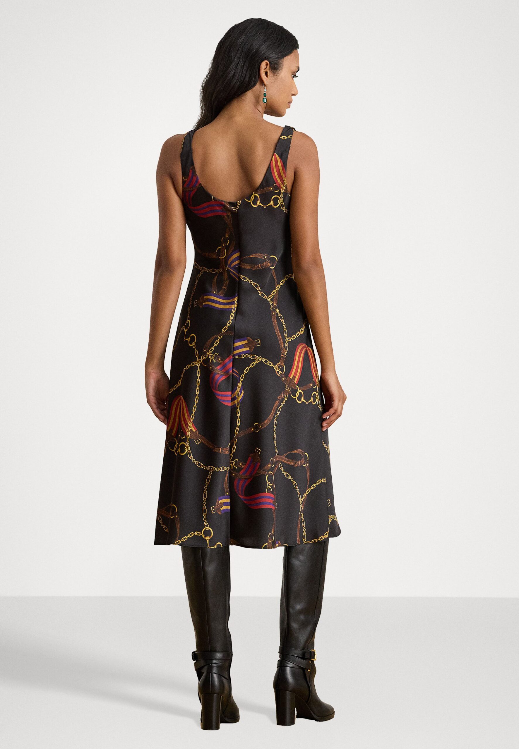 PRINT SATIN SLEEVELESS COCKTAIL DRESS – Cocktail dress / Party dress – black/gold-coloured