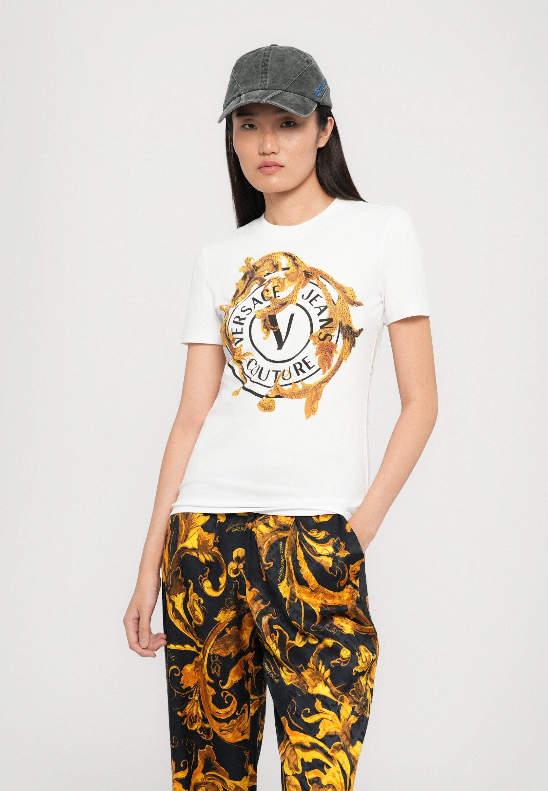 Print T-shirt – white/gold coloured