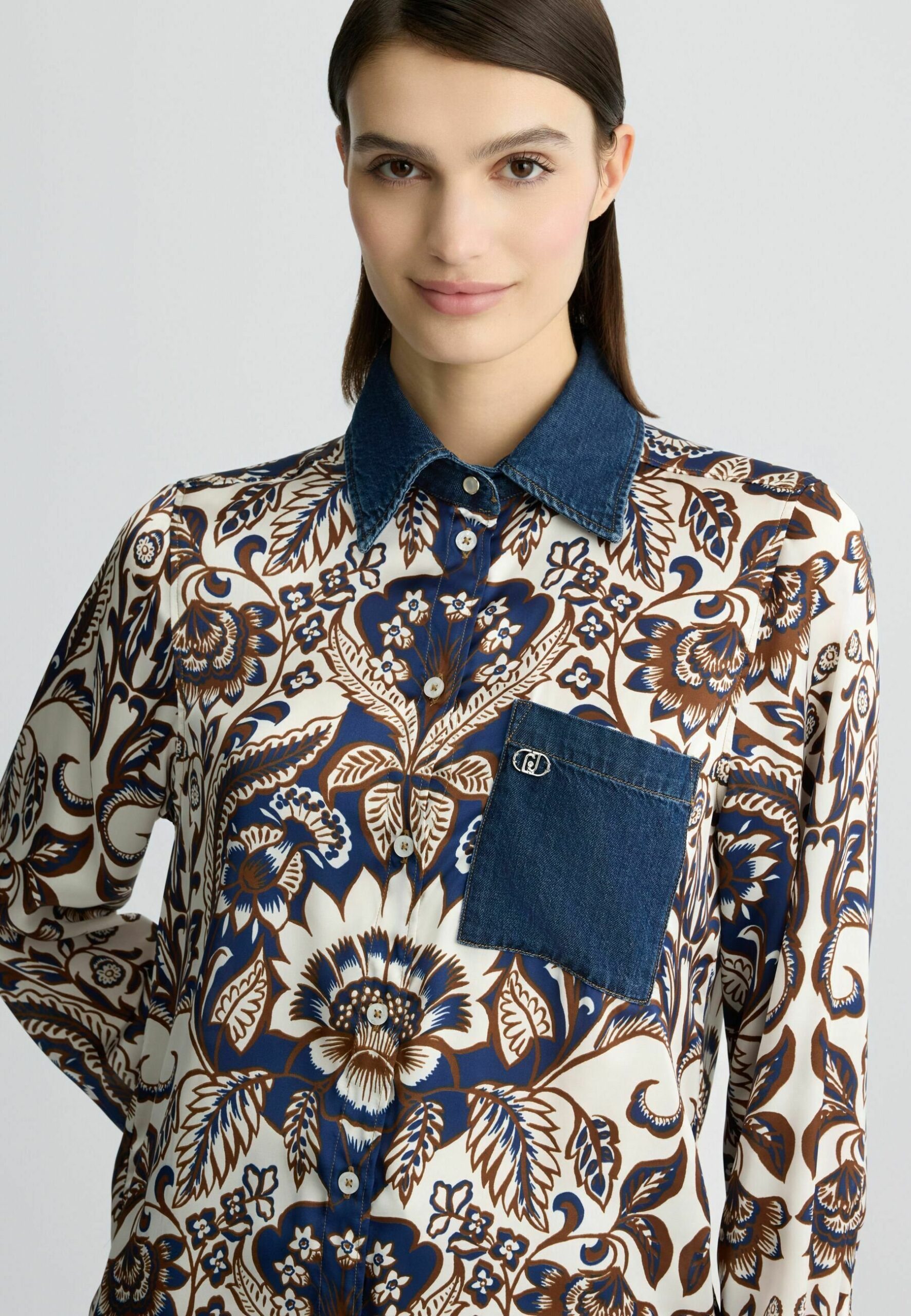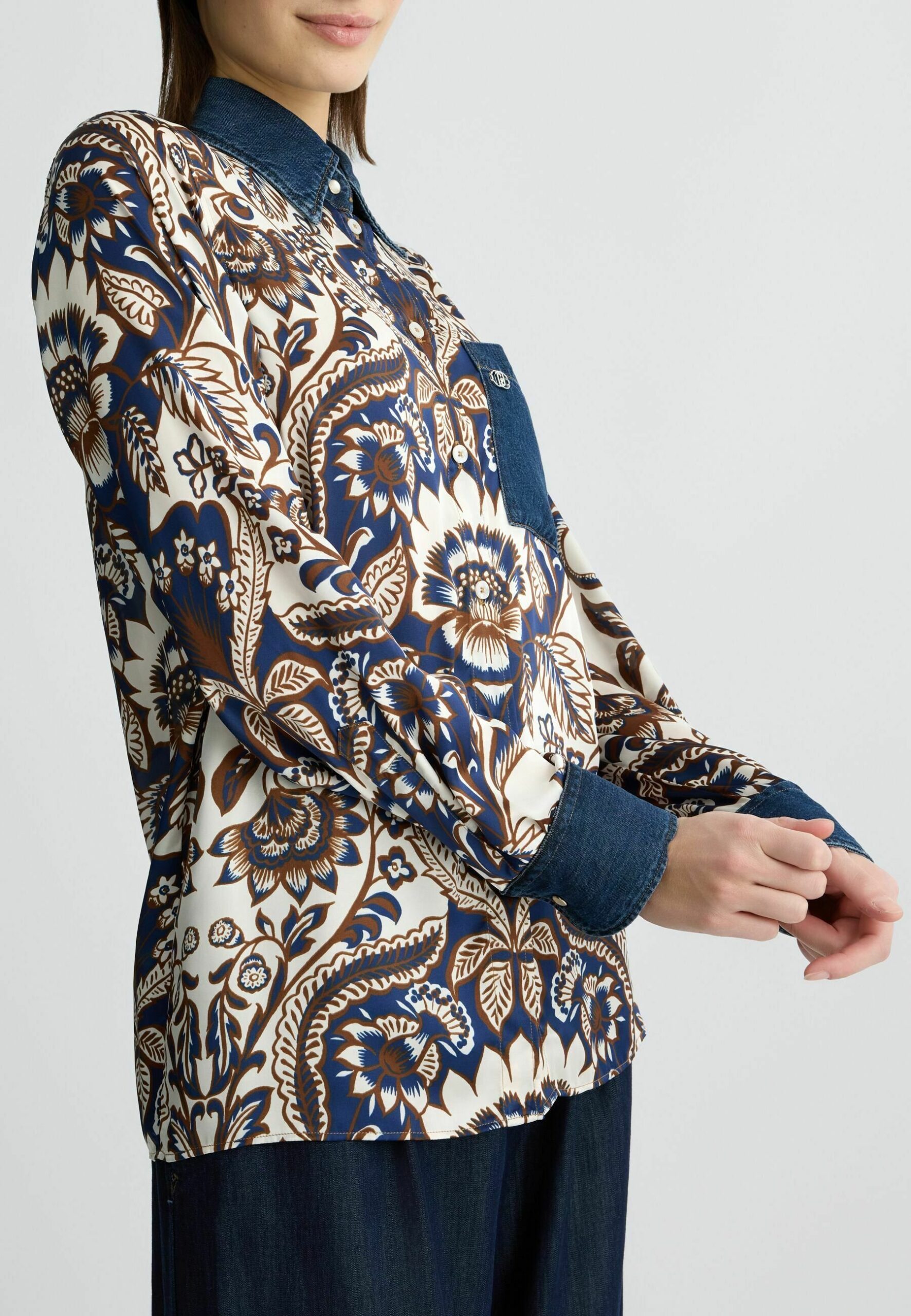 PRINTED – Button-down blouse – beige