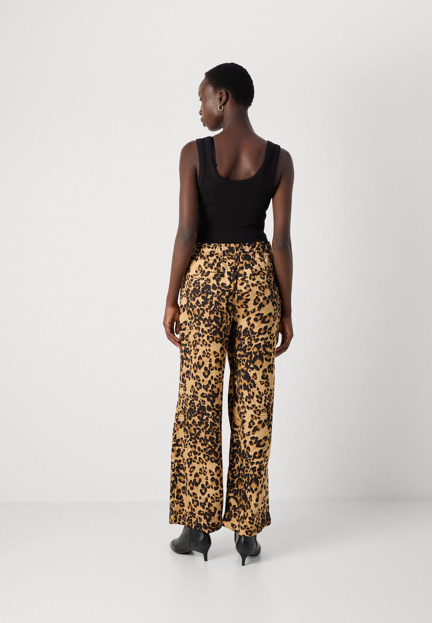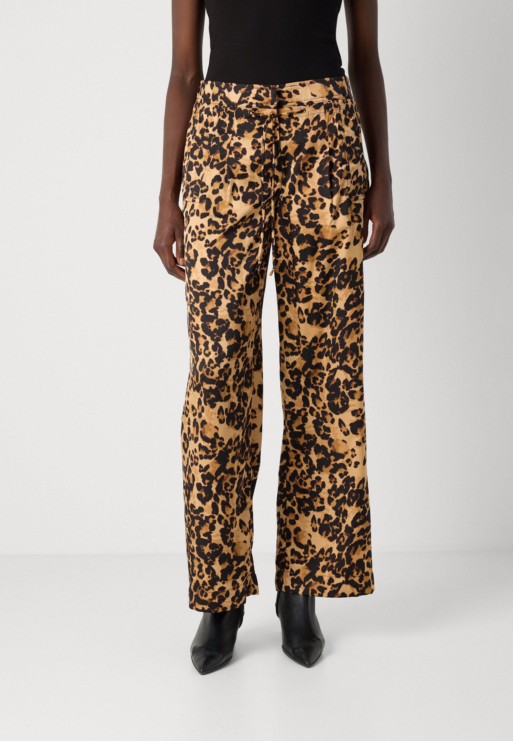 PRINTED WIDE LEG PLEAT FRONT – Trousers – brown/black