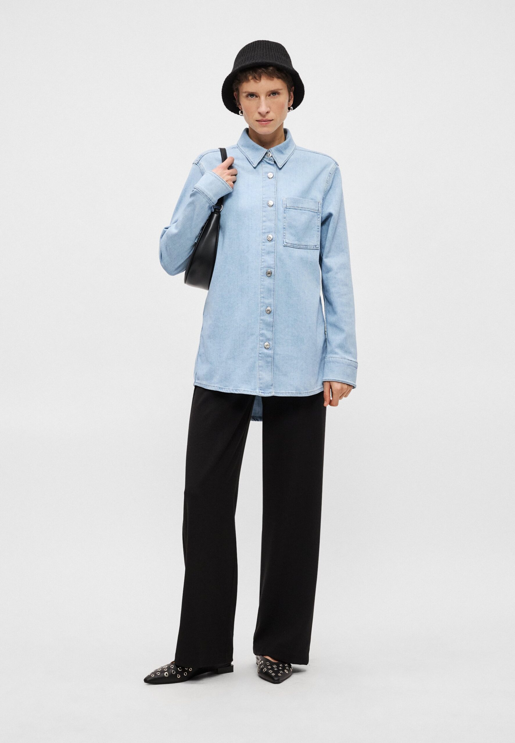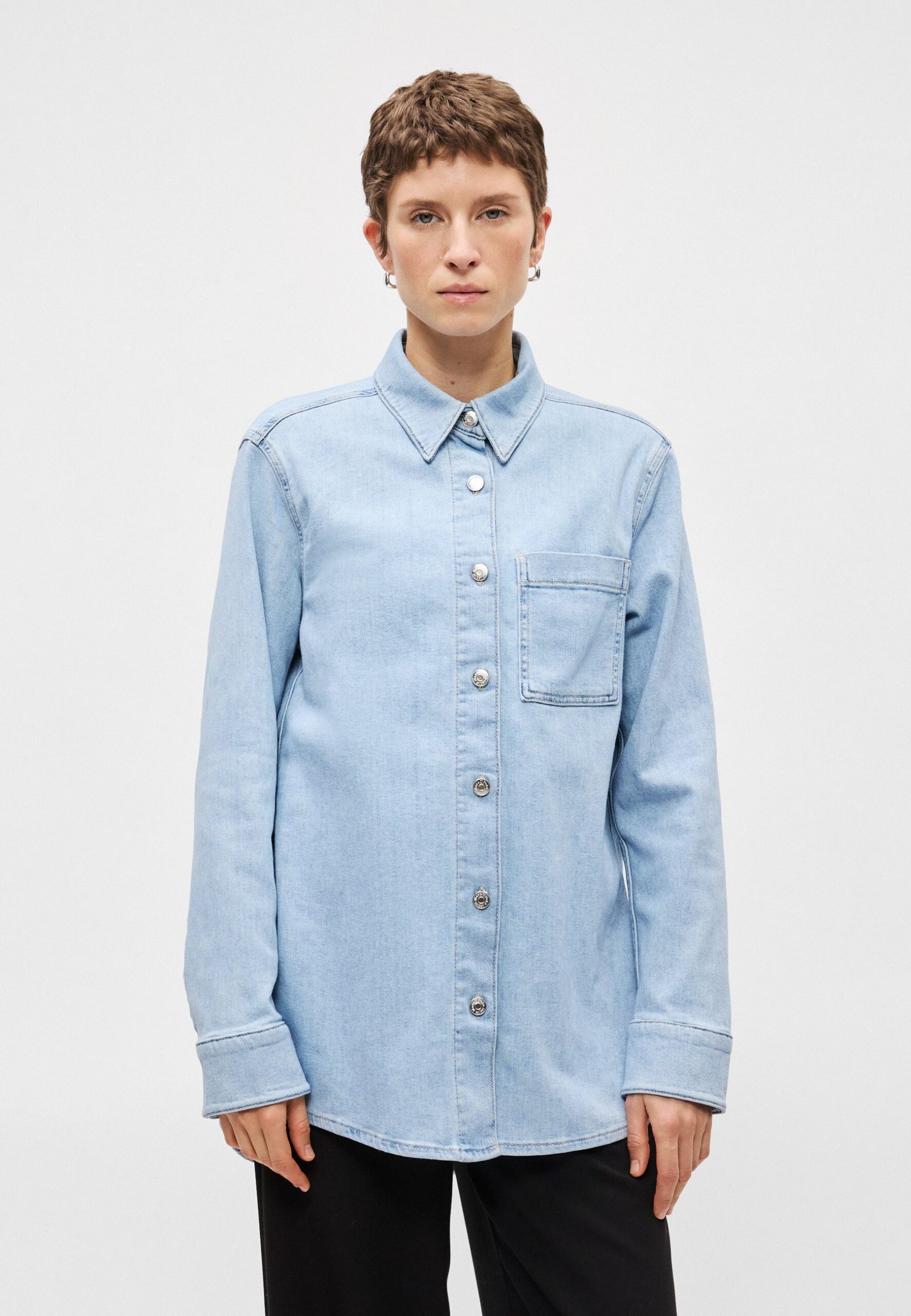 REGULAR FIT LONG LENGTH CHEST POCKET – Button-down blouse – soft light blue wash