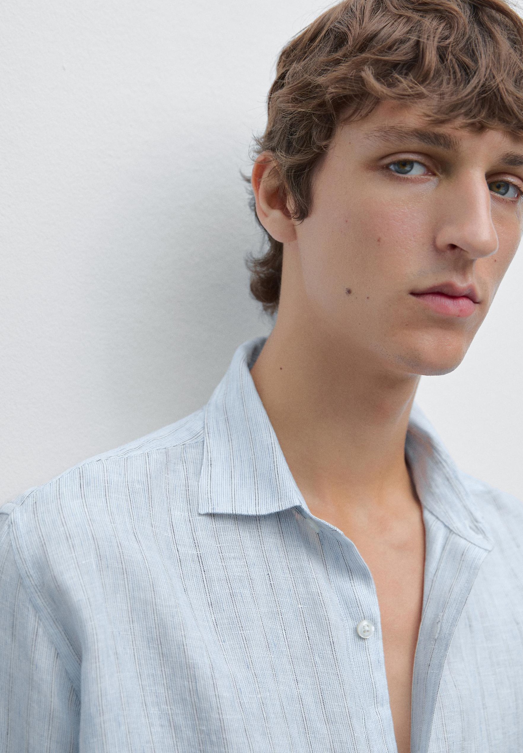 REGULAR FIT STRIPED GARMENT – Shirt – light blue