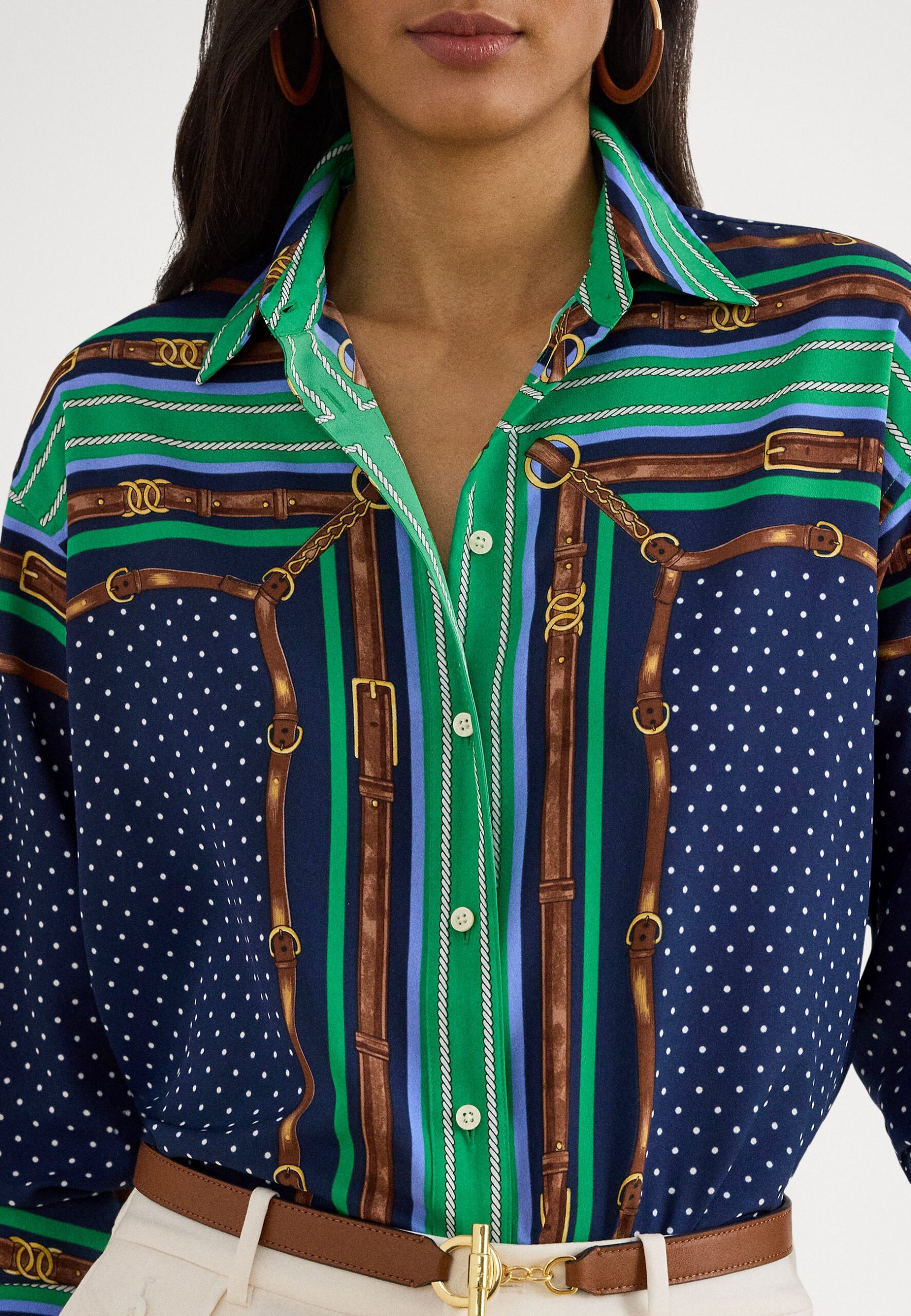 RELAXED FIT BELTING & POLKA-DOT SHIRT – Shirt – blue multi