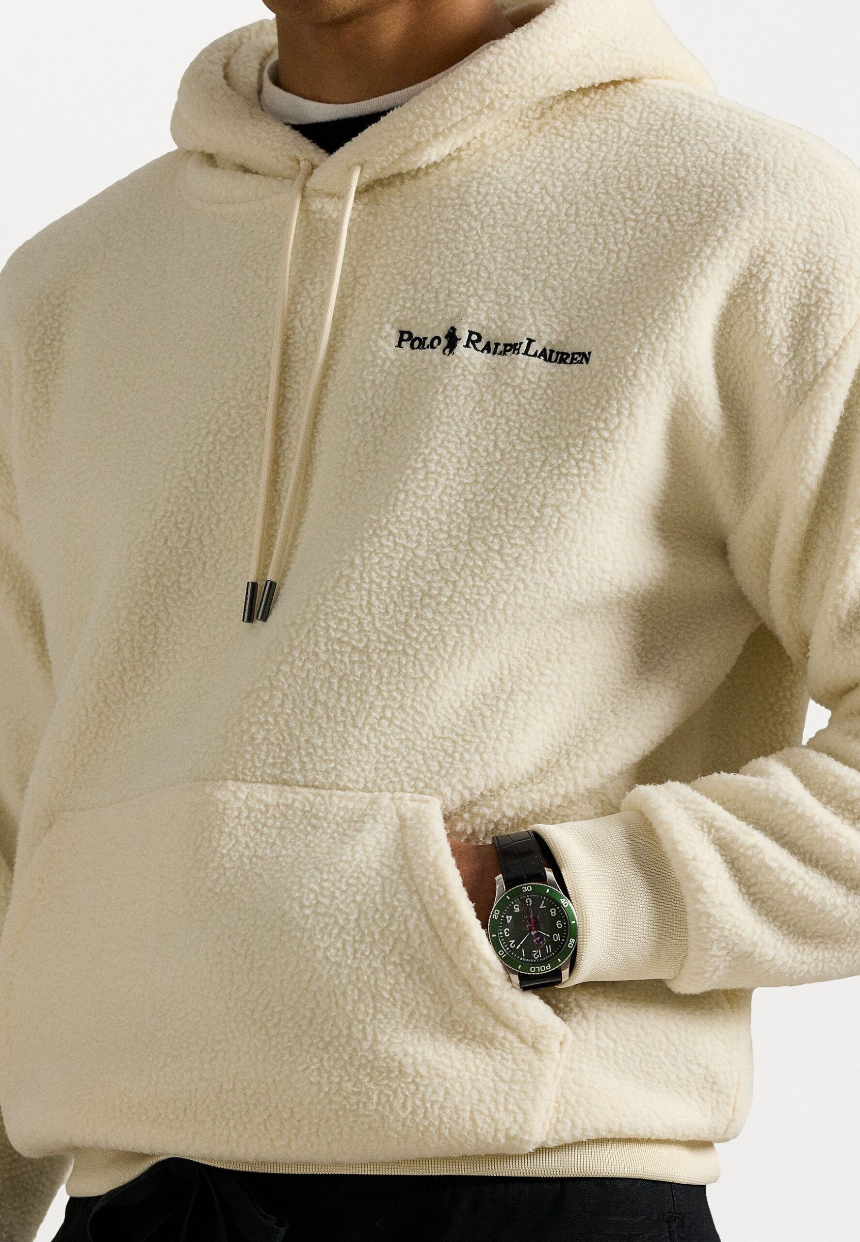 RELAXED FIT LOGO PILE FLEECE HOODIE – Fleece jumper – andover cream
