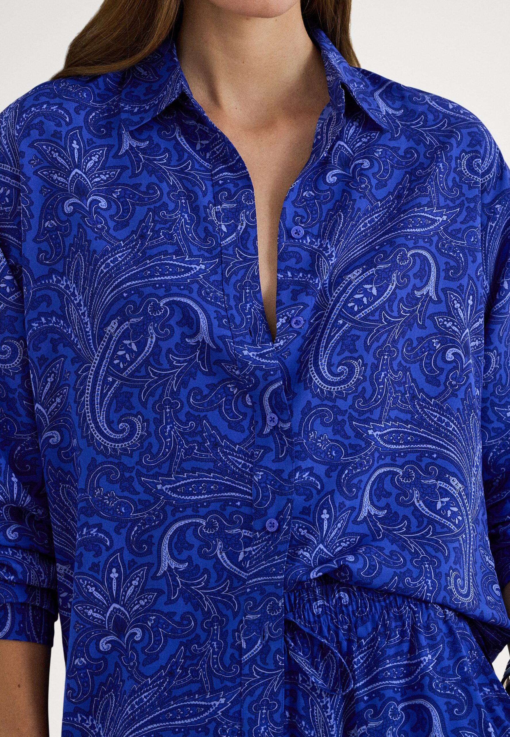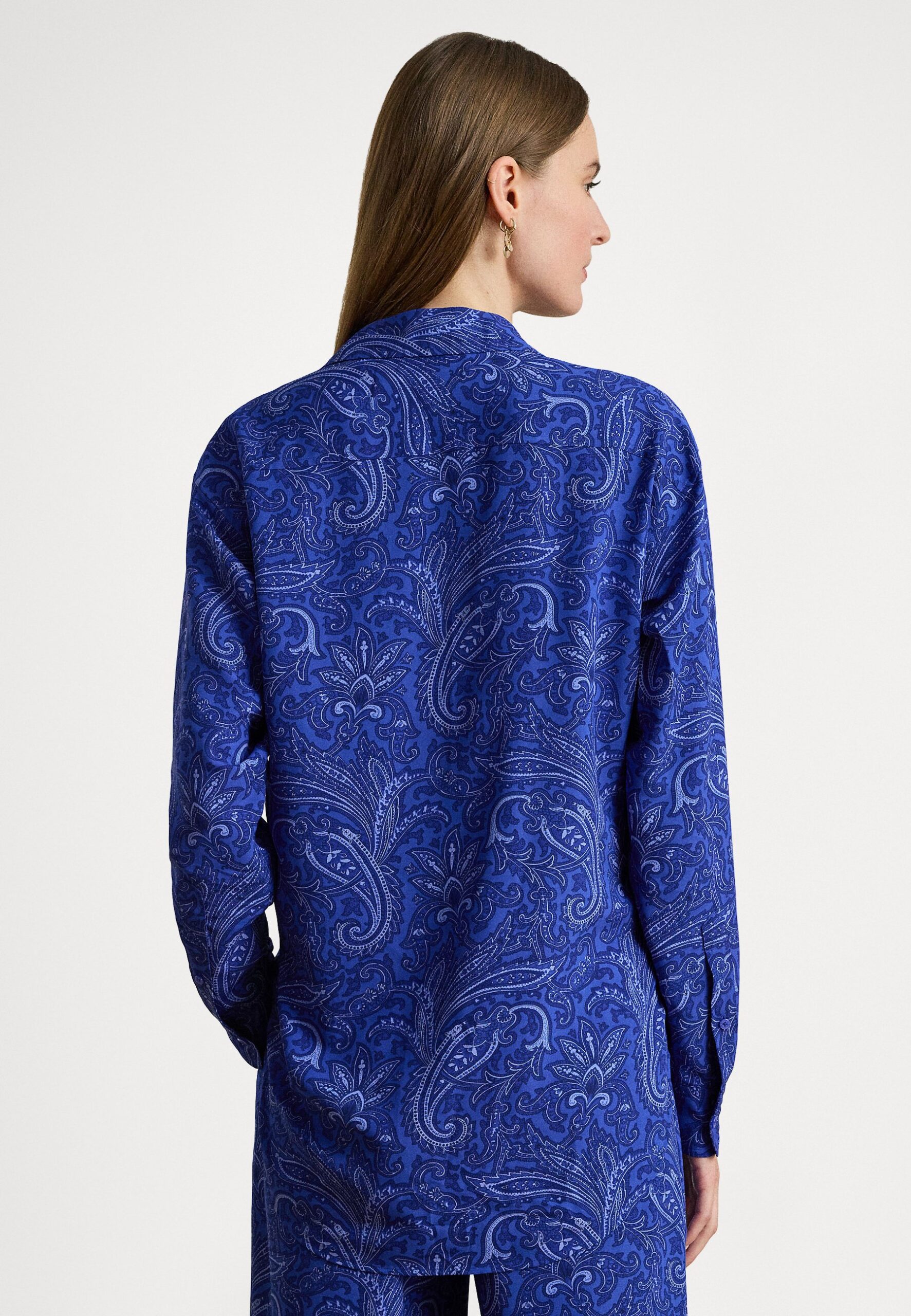 RELAXED FIT PAISLEY CREPE SHIRT – Button-down blouse – blue